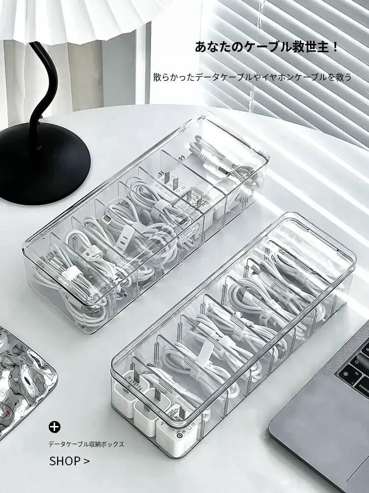 ホコリ防止データケーブル収納ボックス デスクトップ仕切り付き スマホ充電器・電源ケーブル整理グッズ 蓋付きでスッキリ整頓!あなたのデスクを美しく保つ必需品!