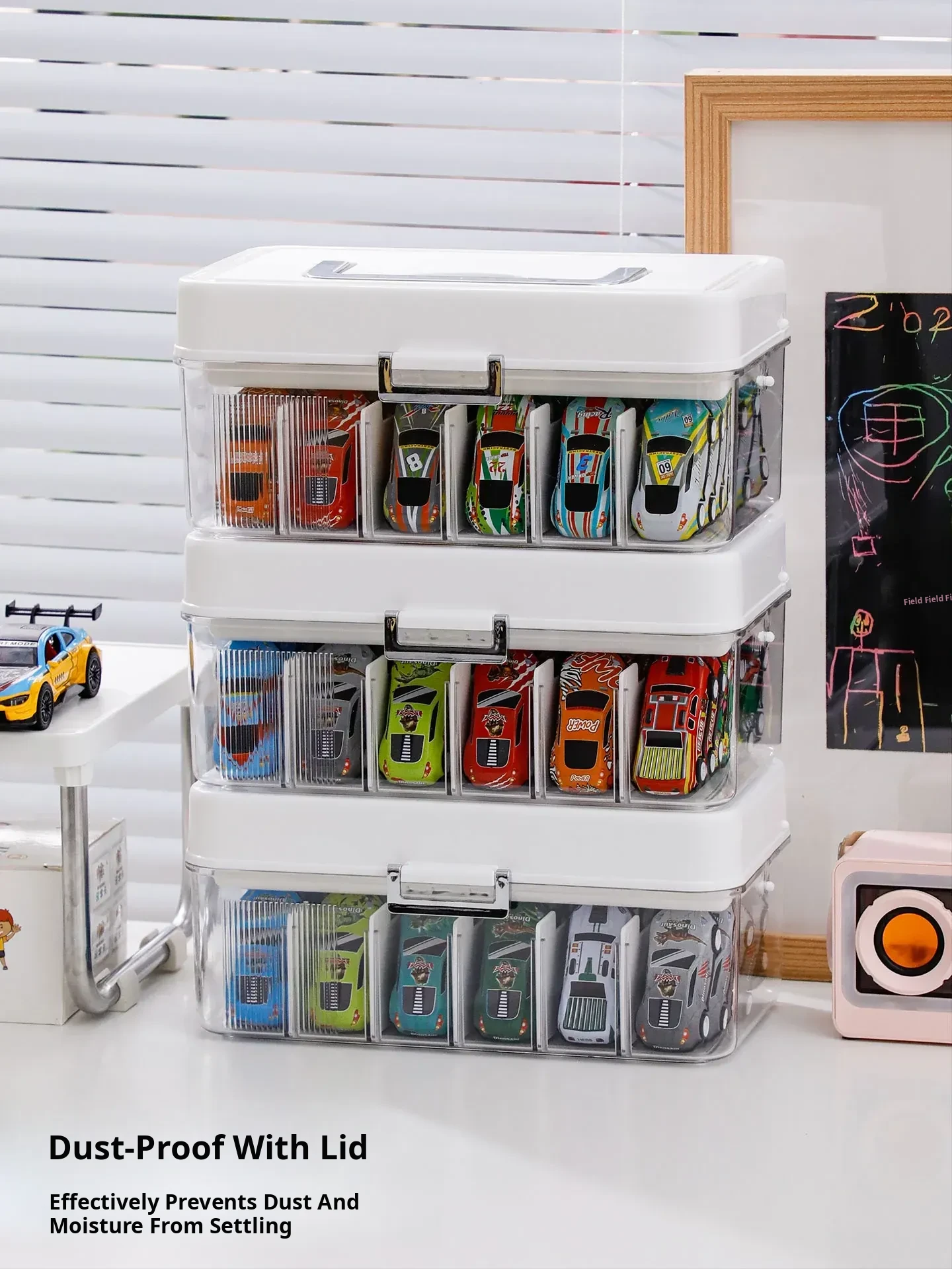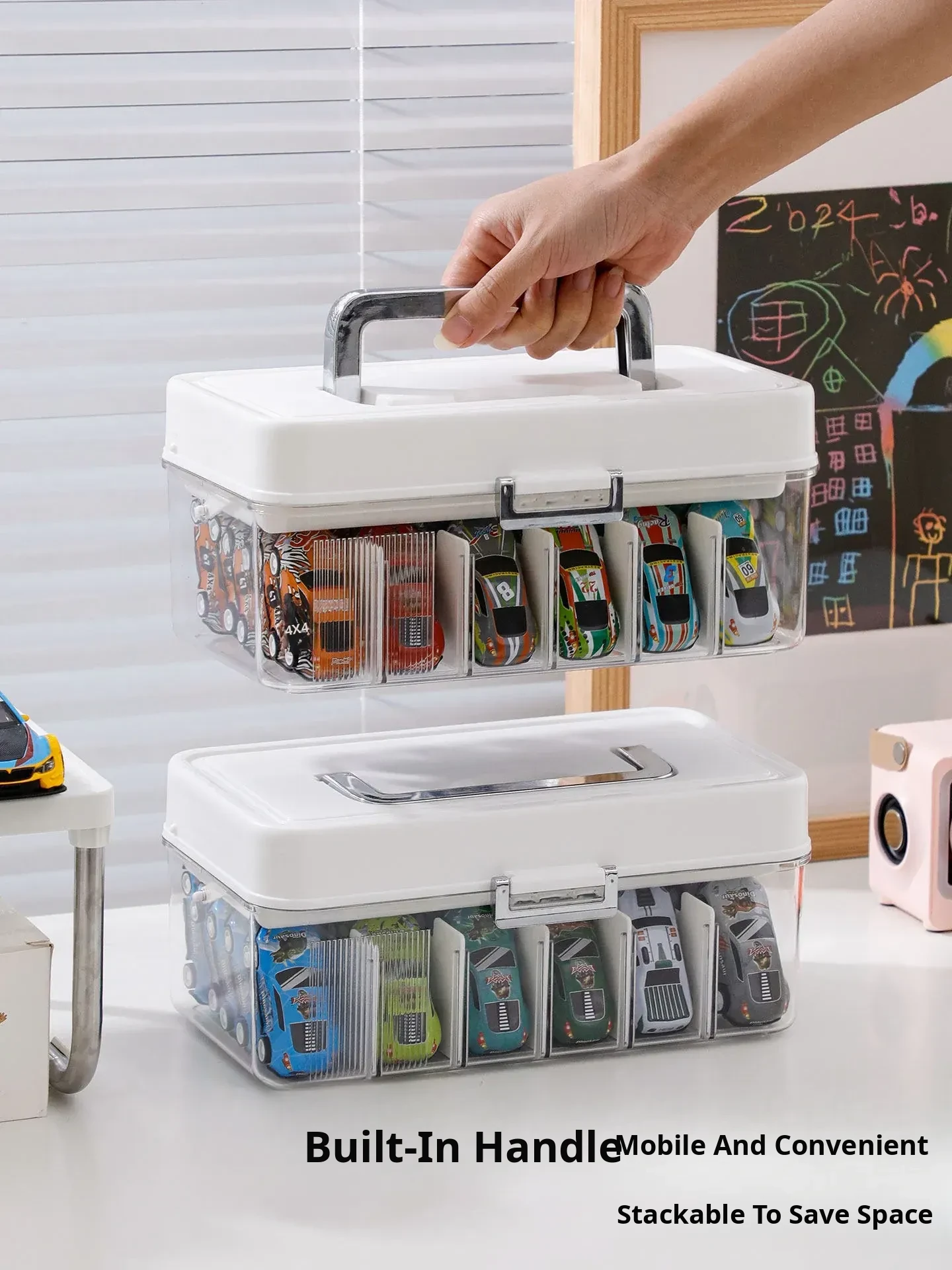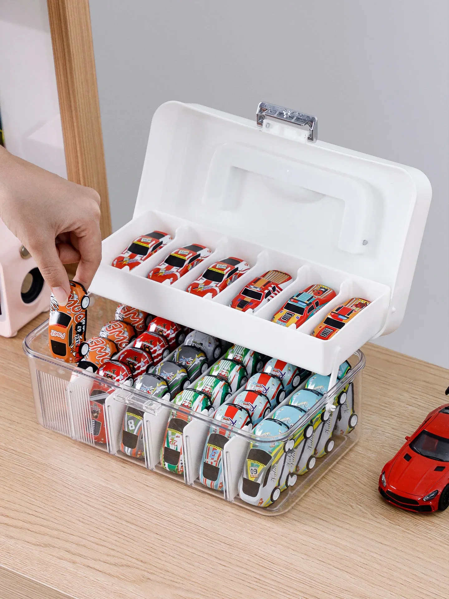 1:64 Scale Alloy Car Storage Box - Hot Wheels & Tomica Display Case with Multiple Compartments for Kids' Toy Car Organization