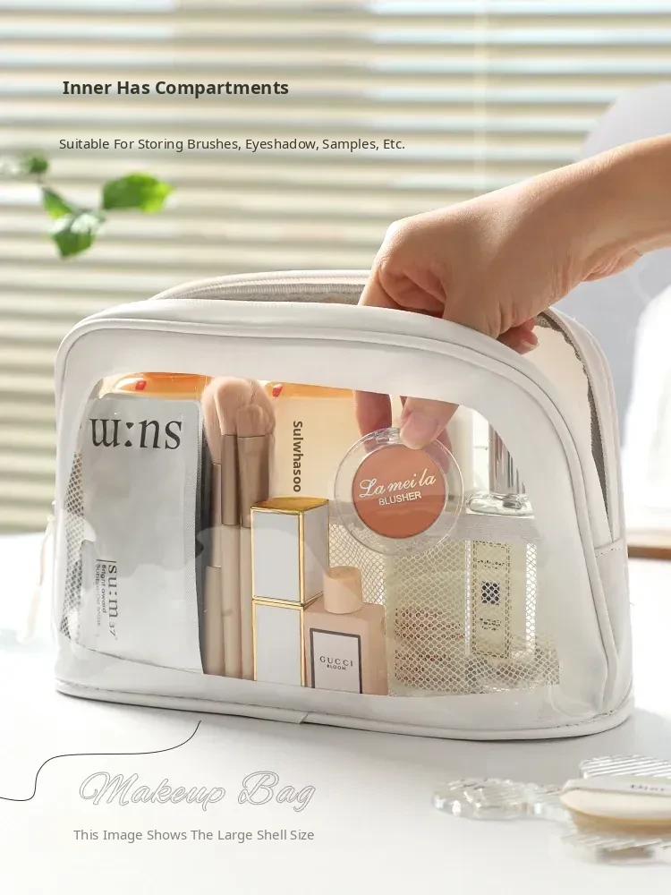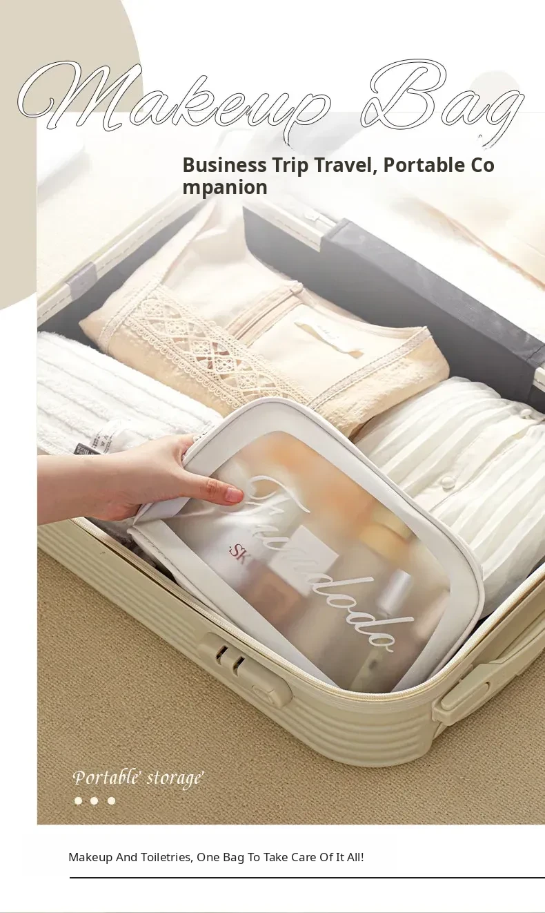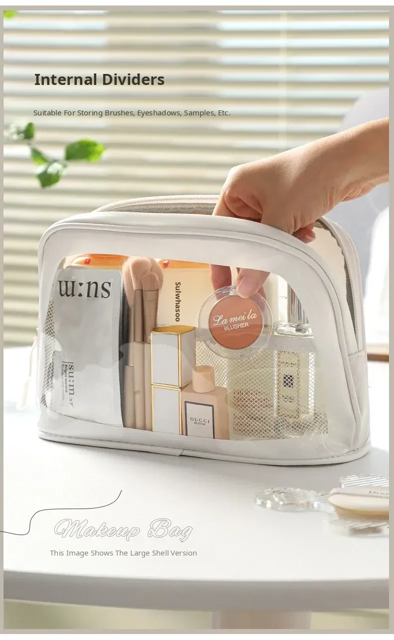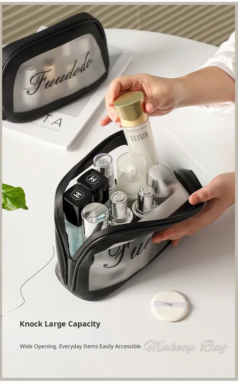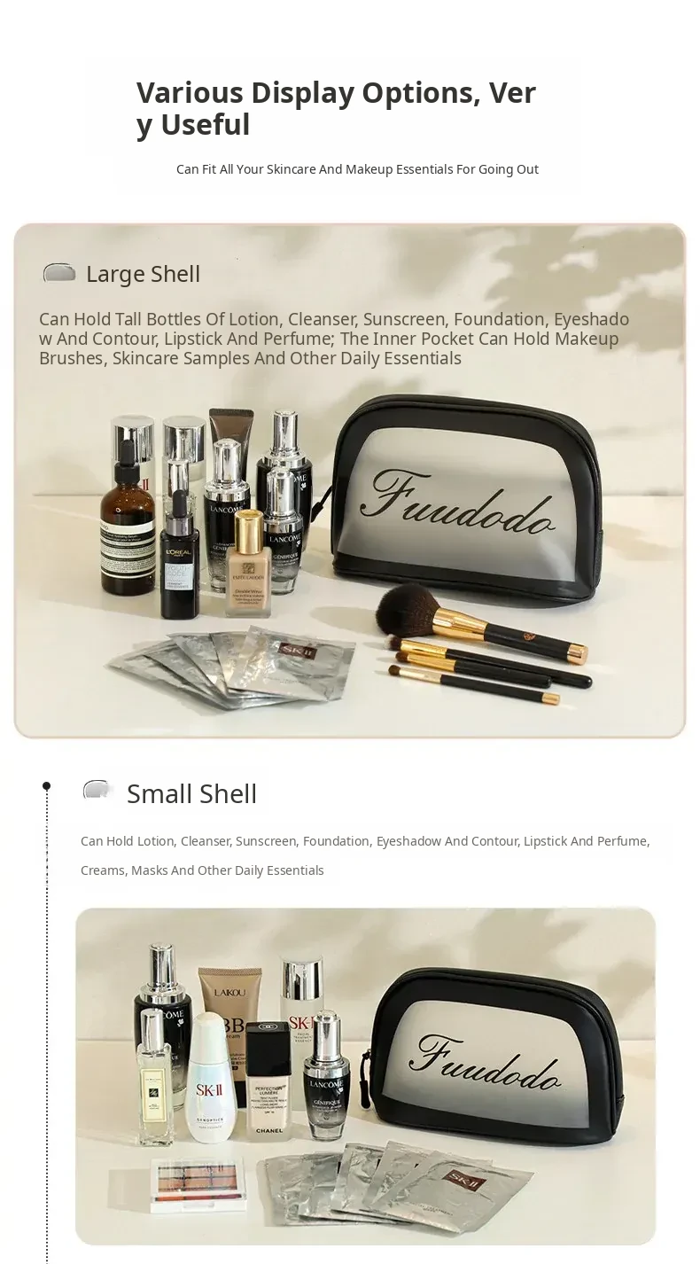 2025 New Stylish Large Capacity PU Waterproof Makeup Bag - Portable Travel Toiletry Shell Organizer for Skincare Essentials