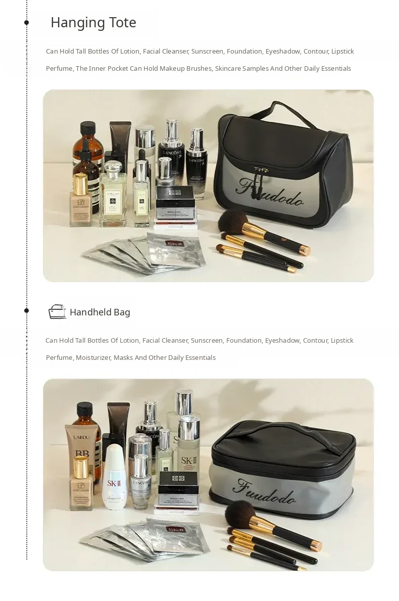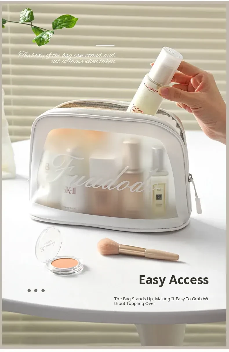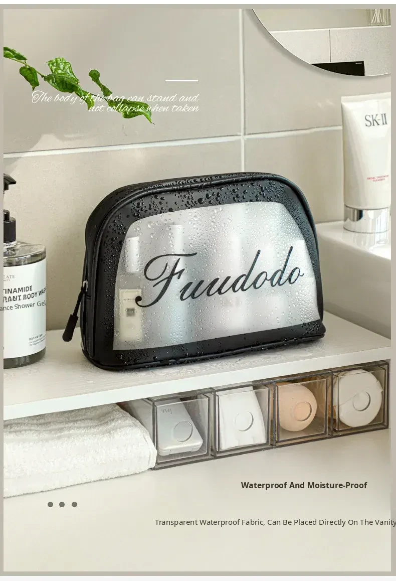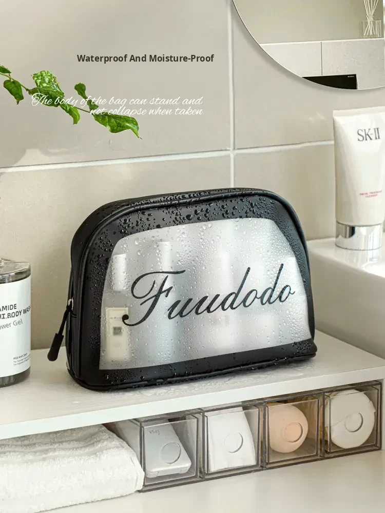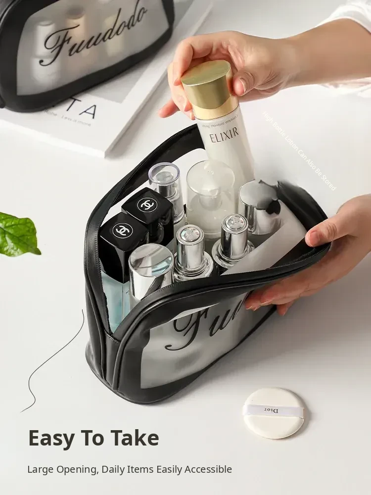 2025 New Stylish Large Capacity PU Waterproof Makeup Bag - Portable Travel Toiletry Shell Organizer for Skincare Essentials