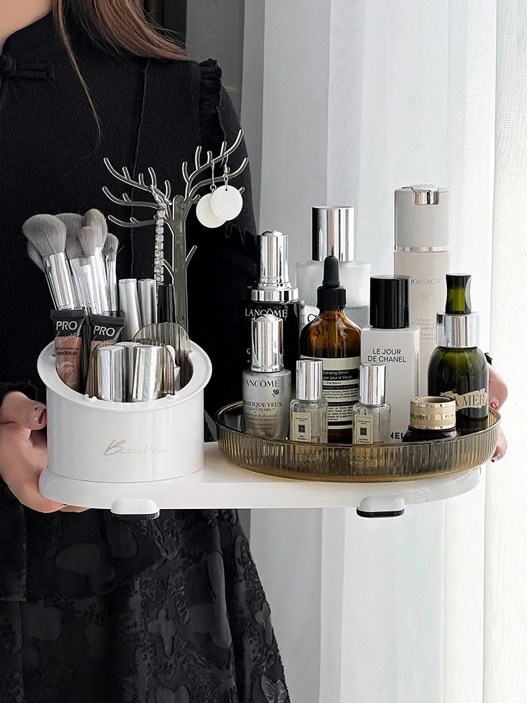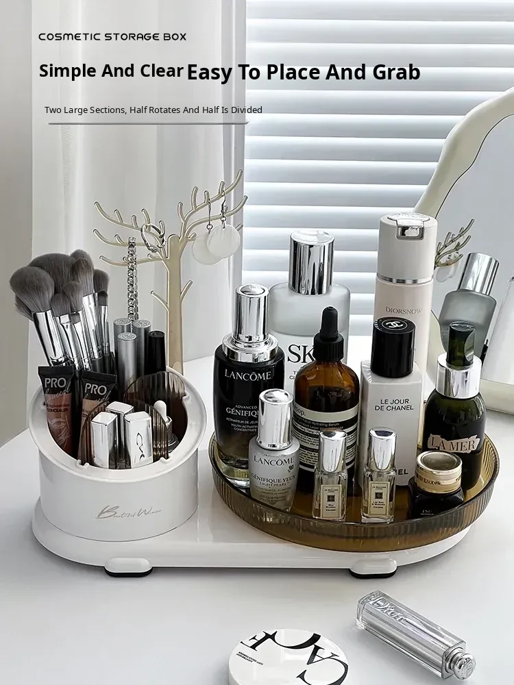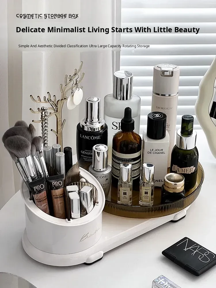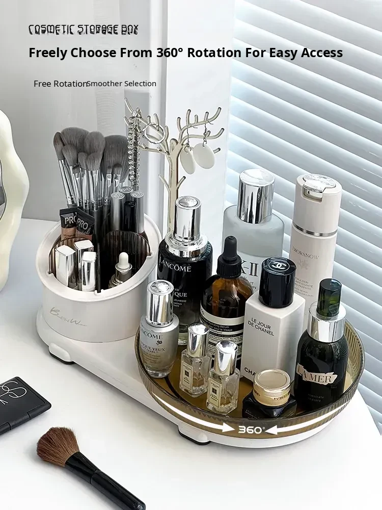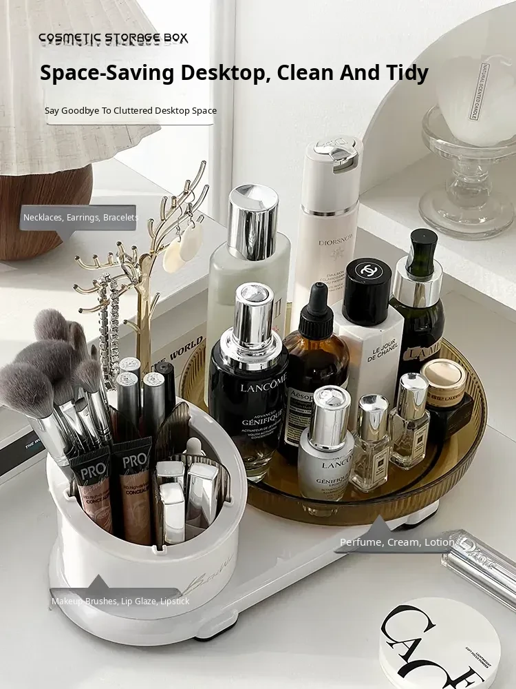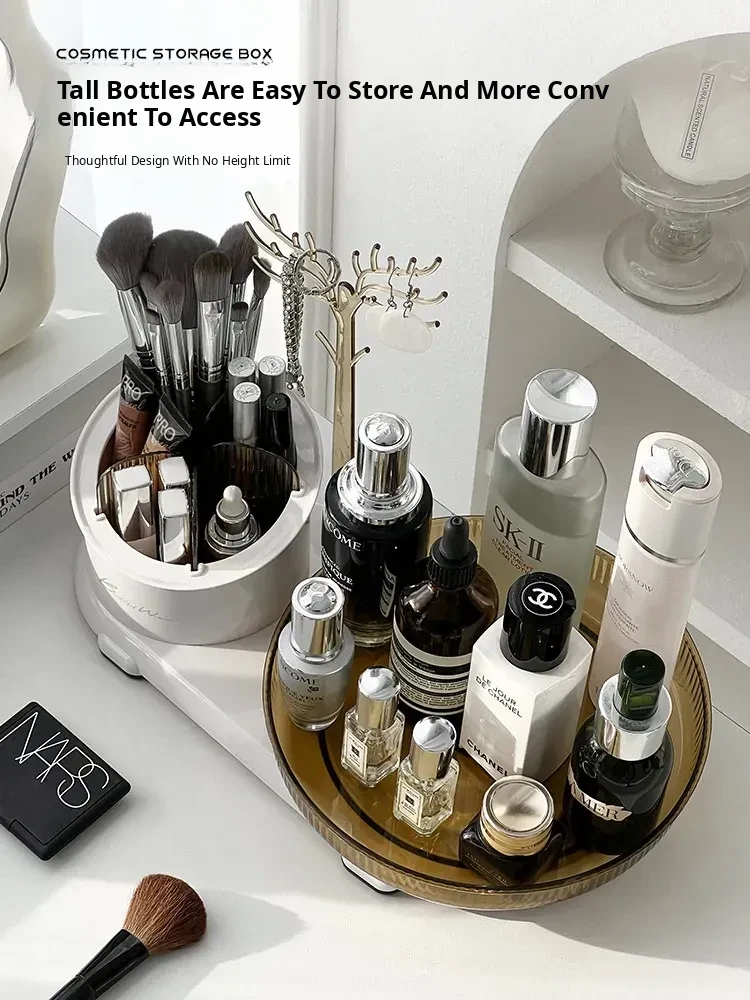 360-Degree Rotating Makeup Organizer - Desktop Brush Holder, Vanity Skincare & Perfume Tray, Jewelry Display Stand - Perfect for a Clutter-Free Beauty Space!