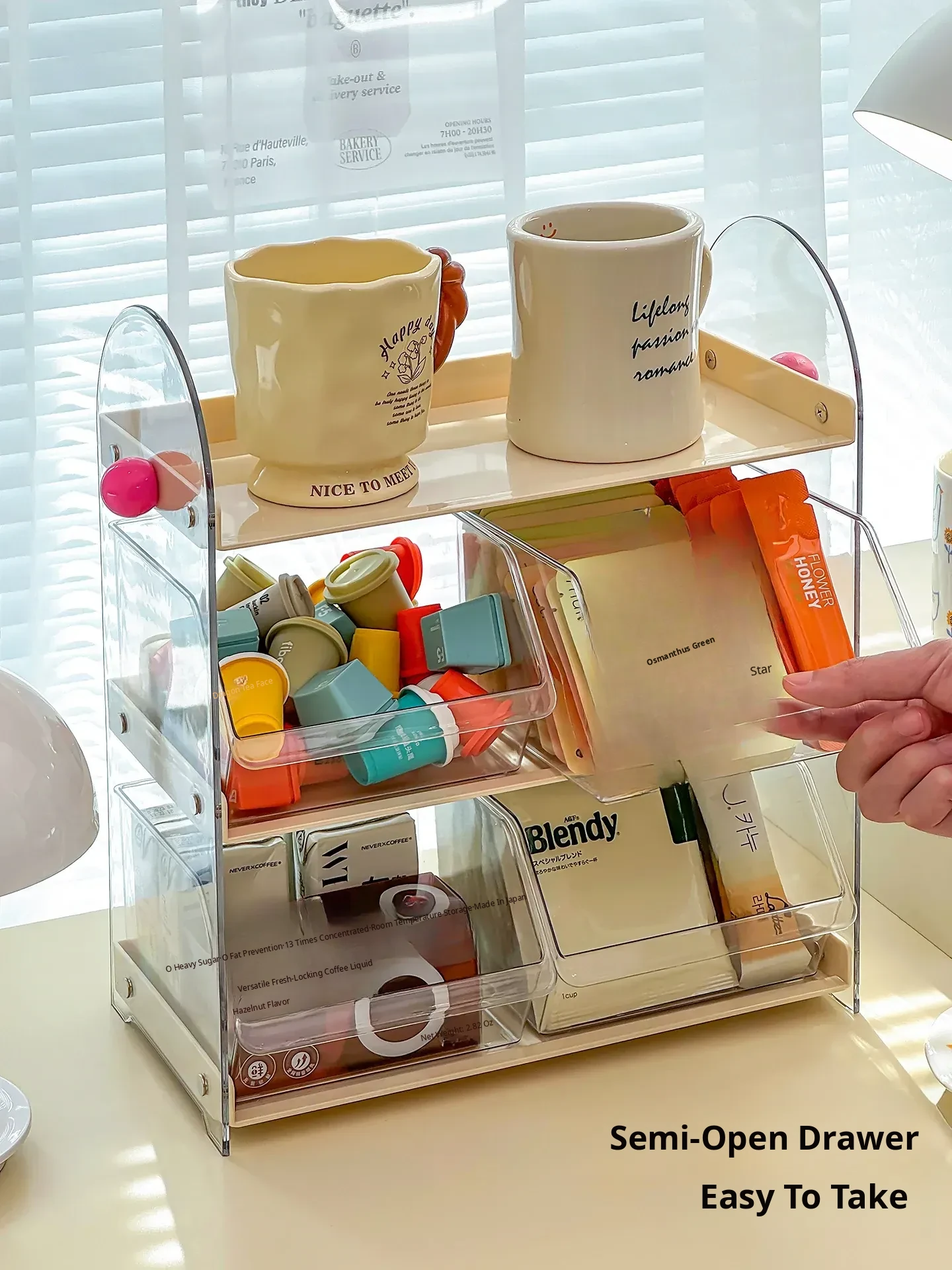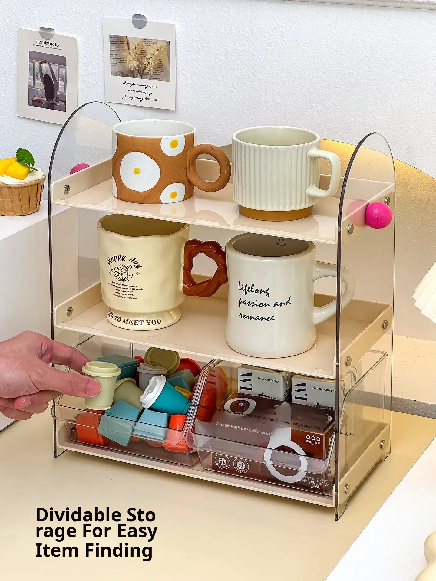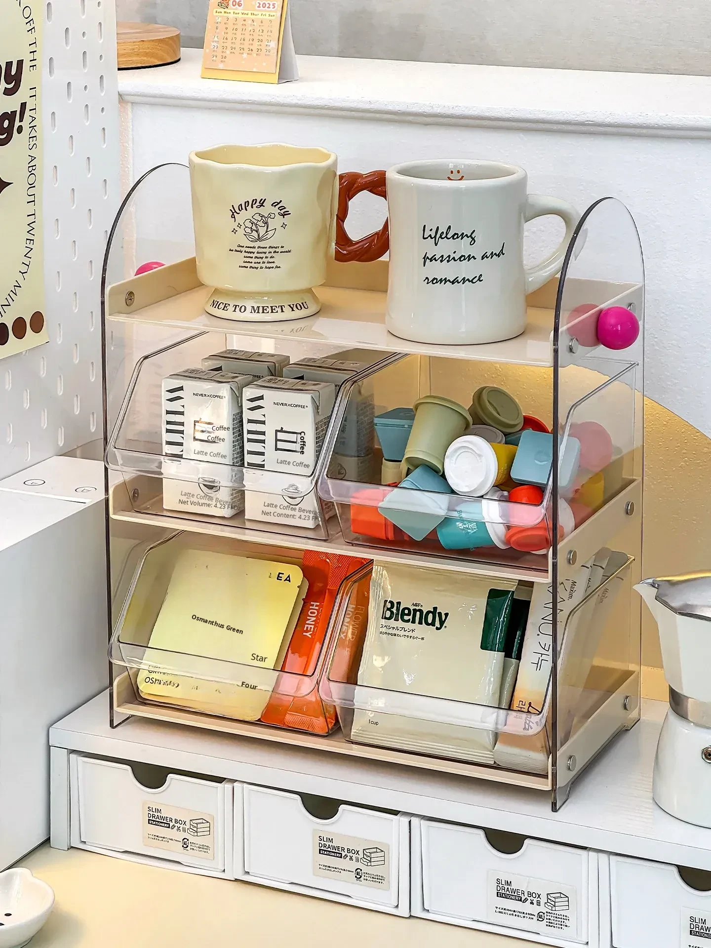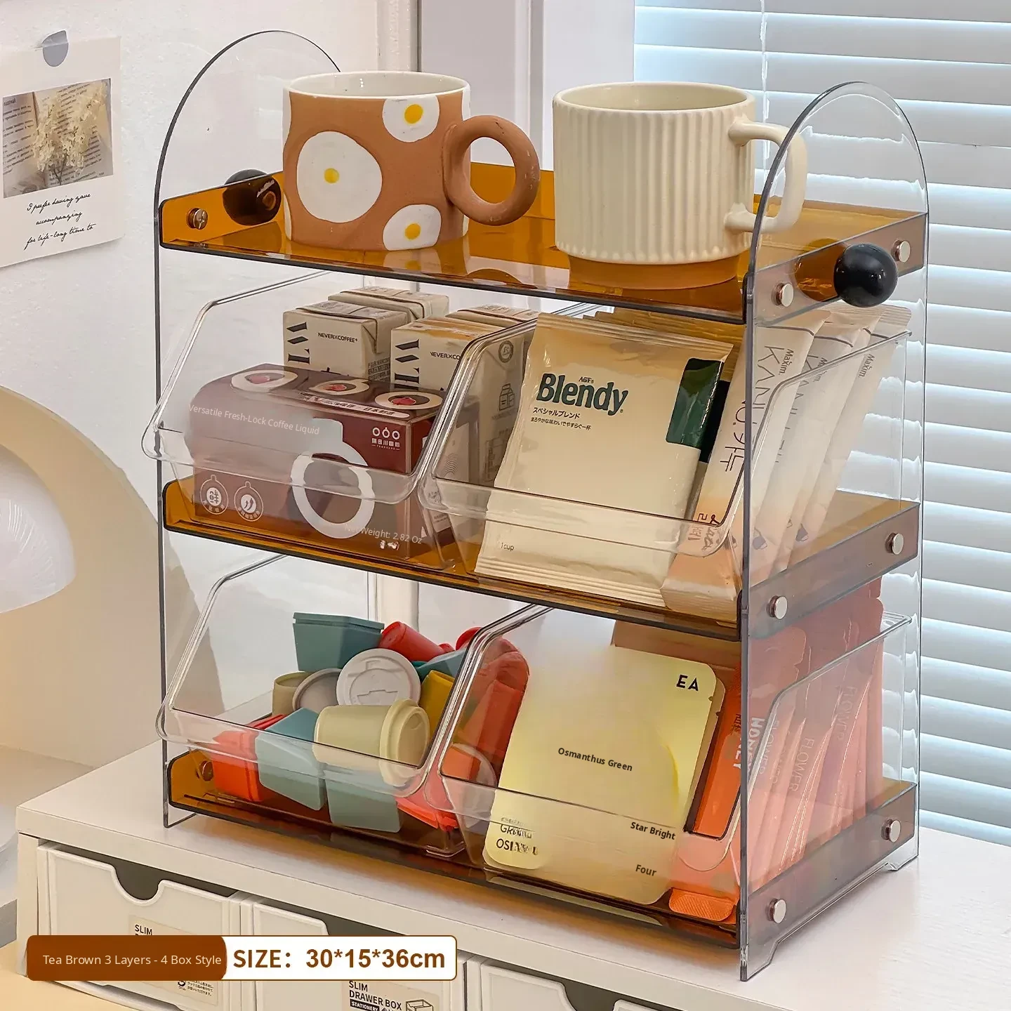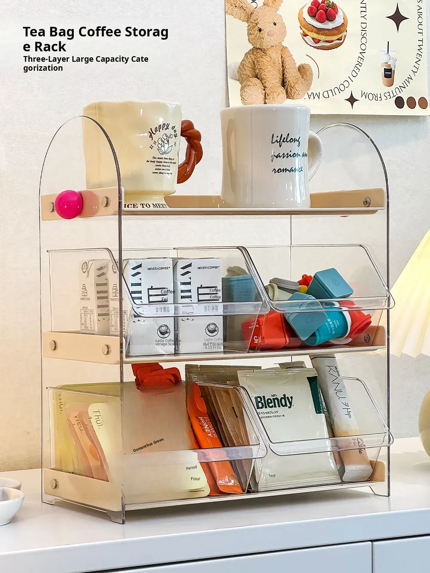 Acrylic Coffee and Tea Bag Organizer Box - Stylish Desktop Storage for Cups and Accessories, Transparent Tabletop Organizer for Tidy Living Spaces and Offices
