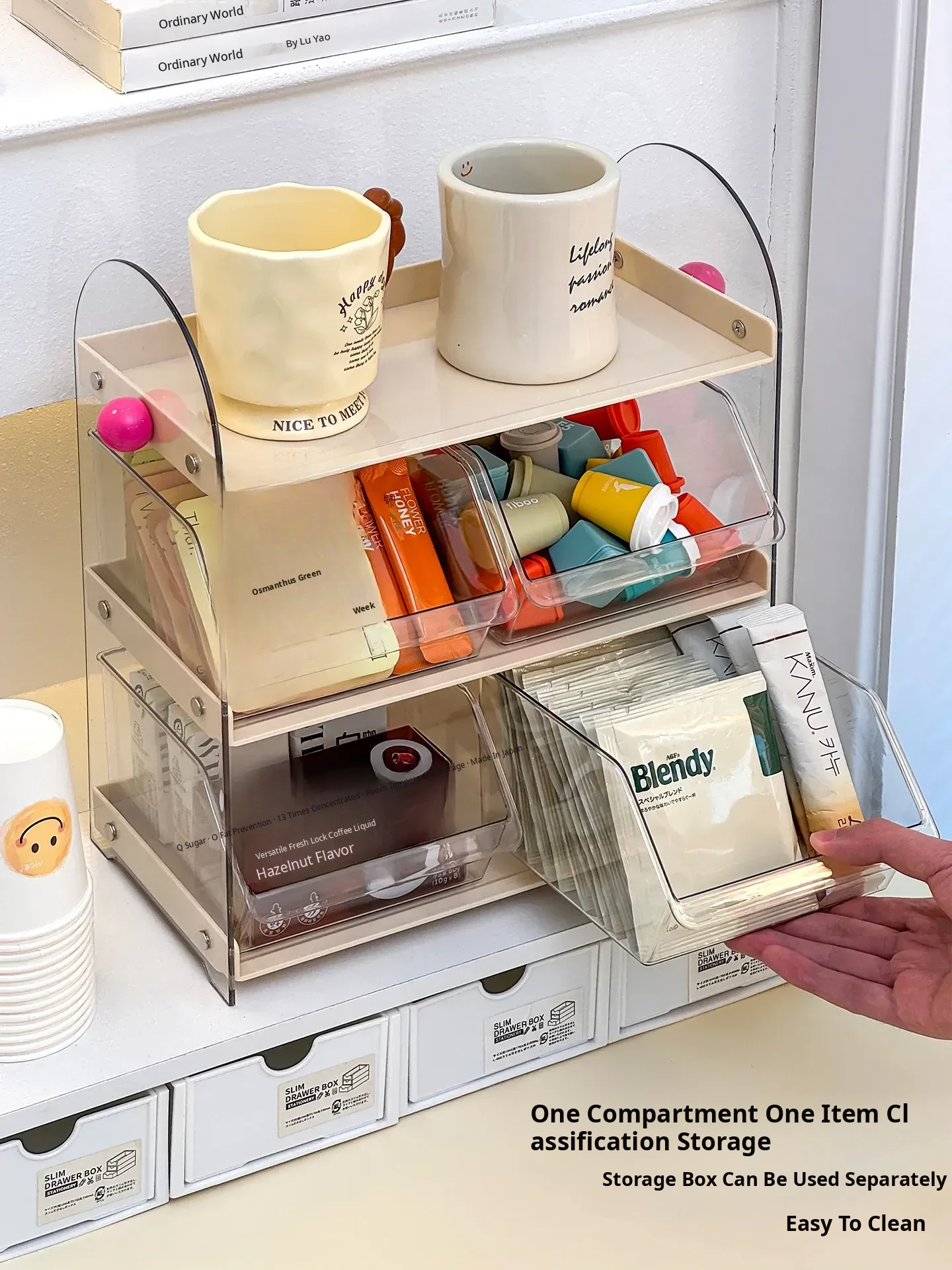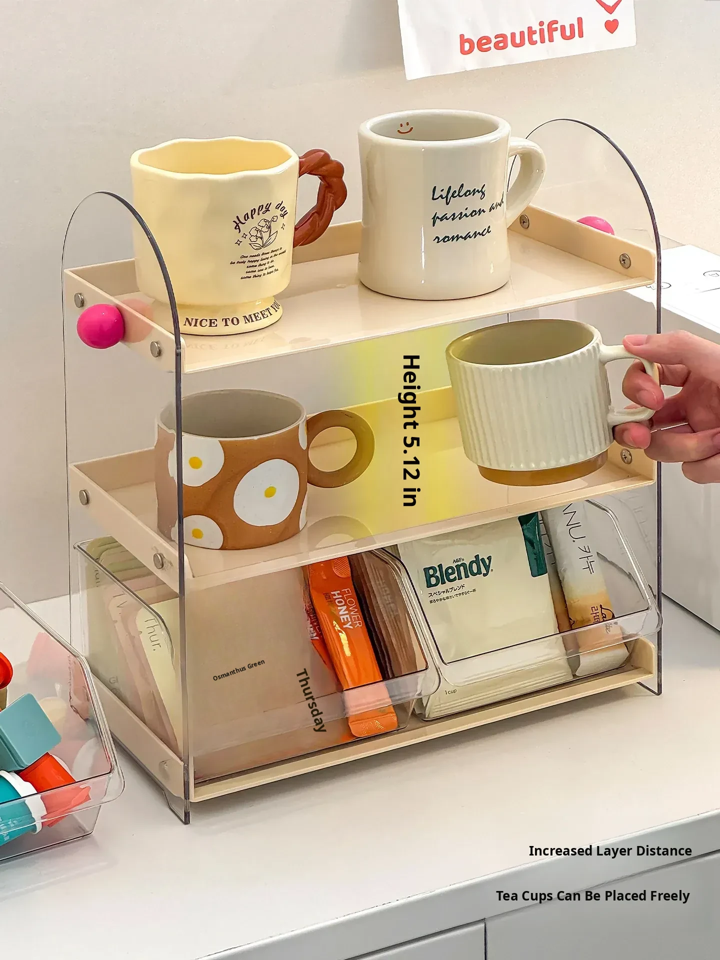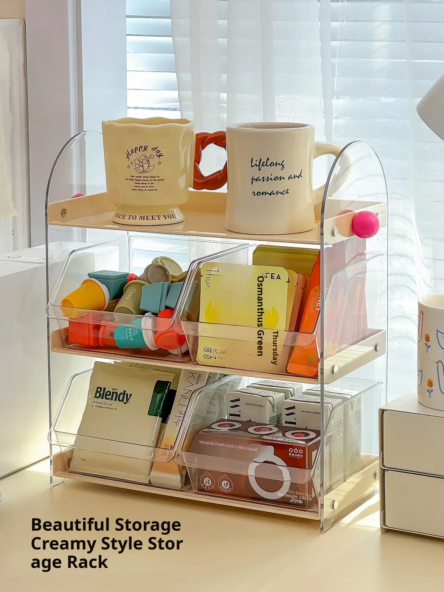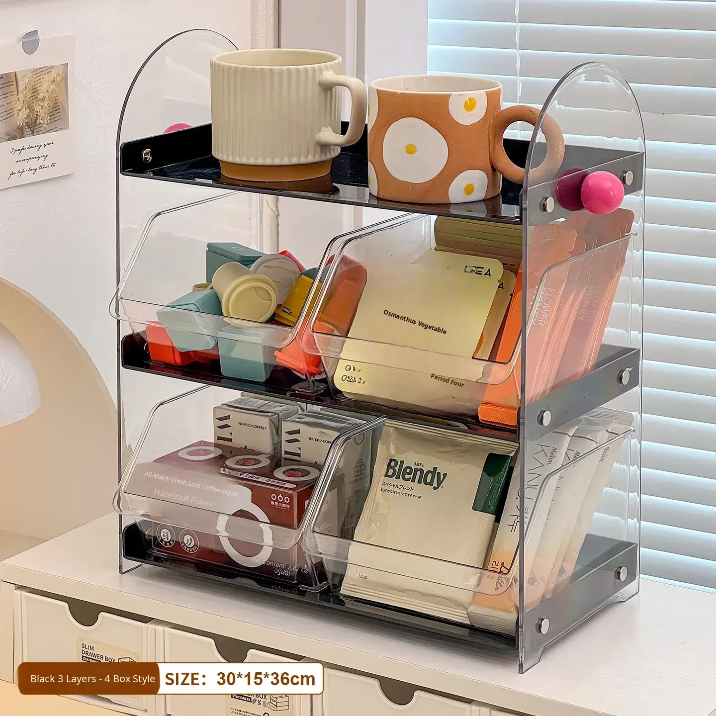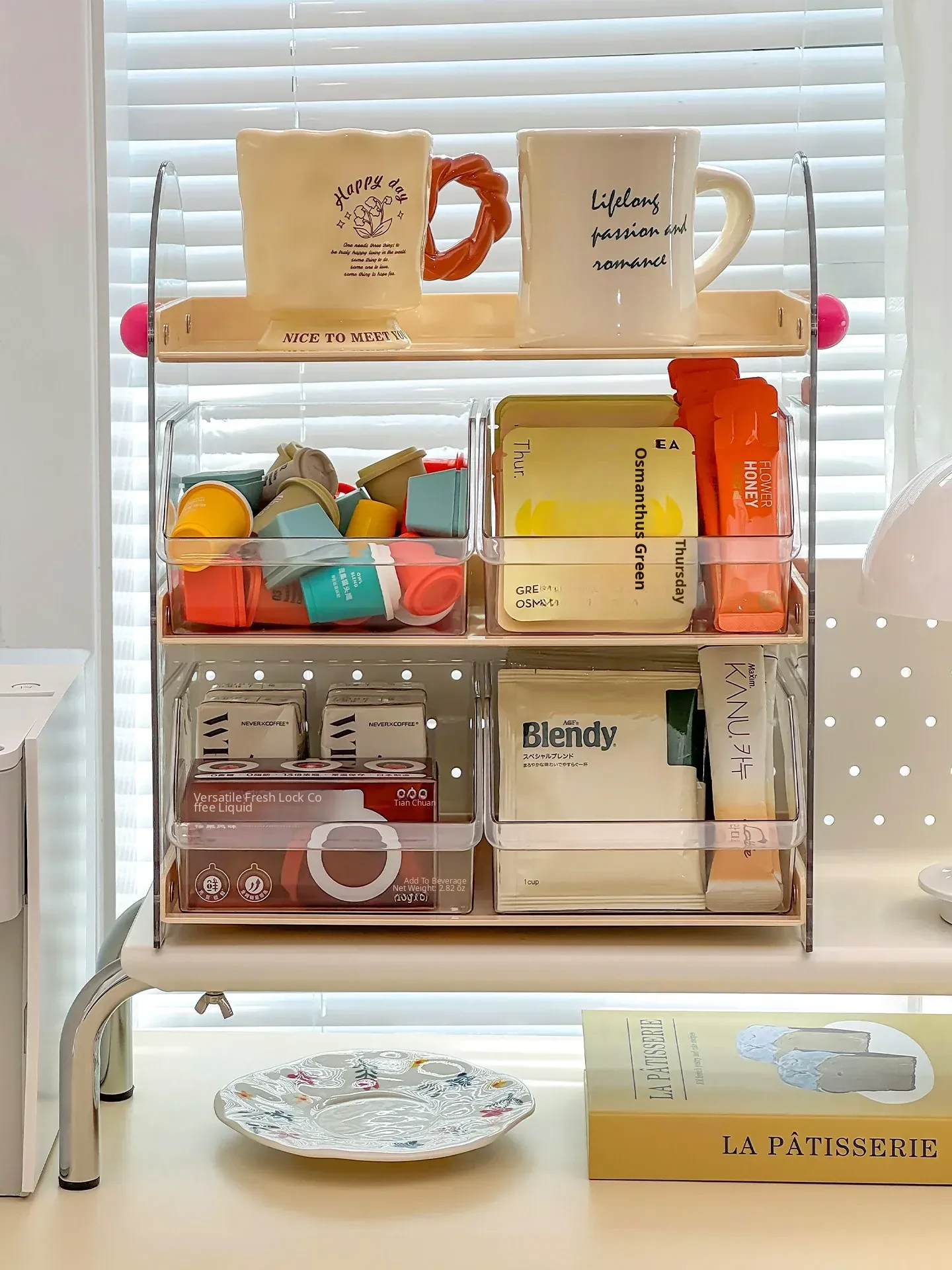 Acrylic Coffee and Tea Bag Organizer Box - Stylish Desktop Storage for Cups and Accessories, Transparent Tabletop Organizer for Tidy Living Spaces and Offices