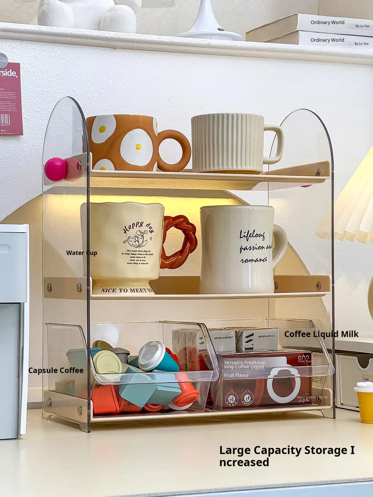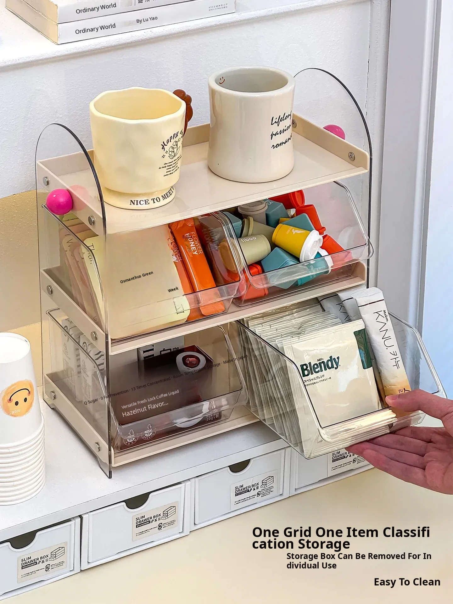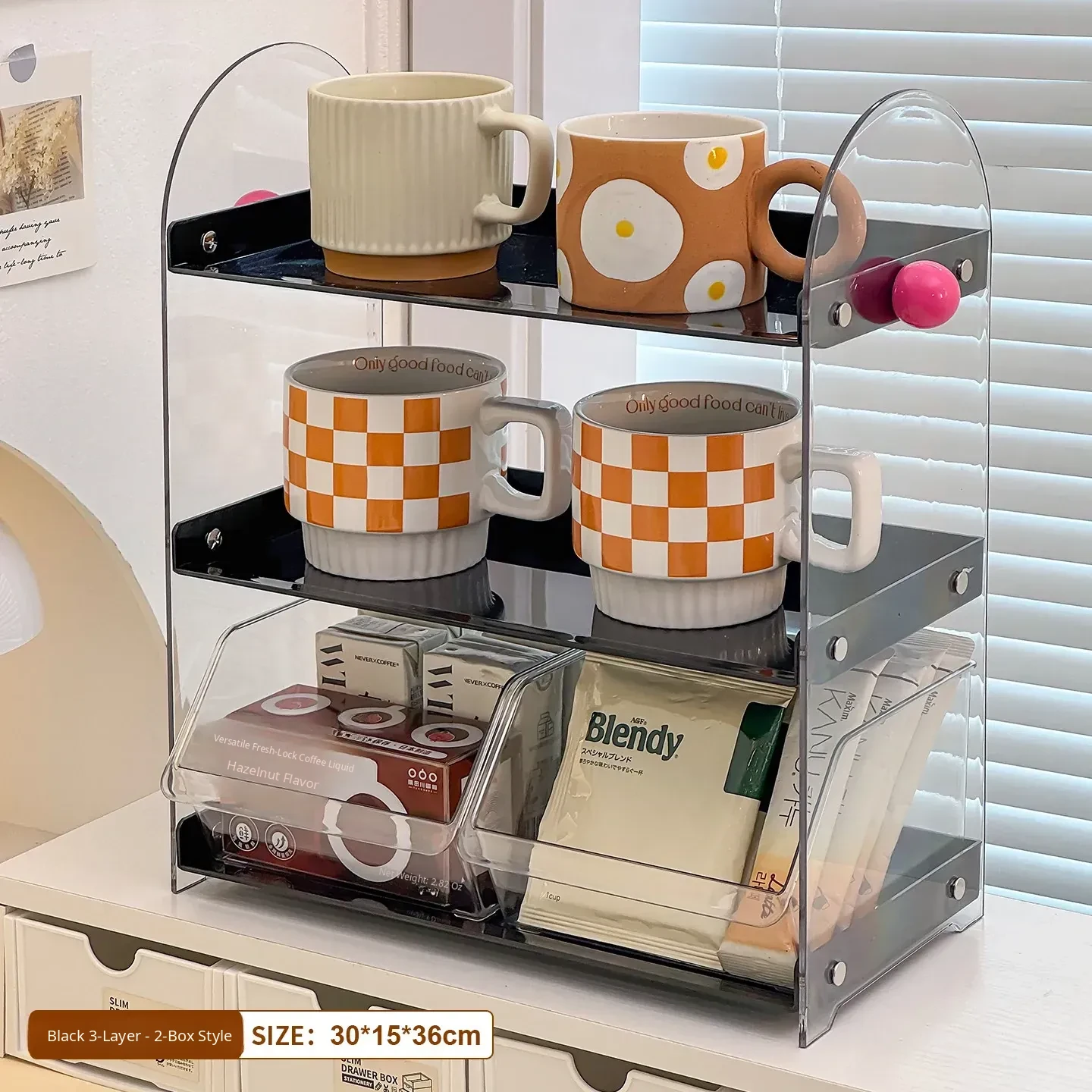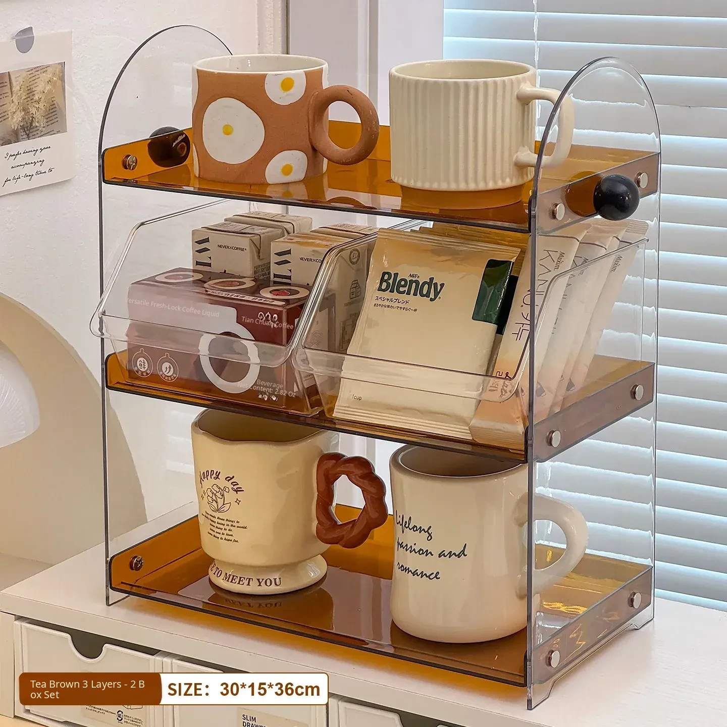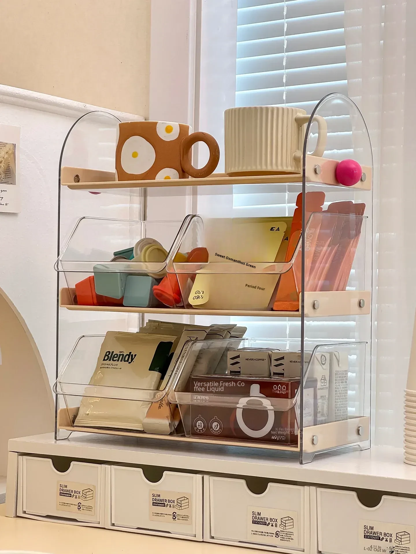 Acrylic Coffee and Tea Bag Organizer Box - Stylish Desktop Storage for Cups and Accessories, Transparent Tabletop Organizer for Tidy Living Spaces and Offices