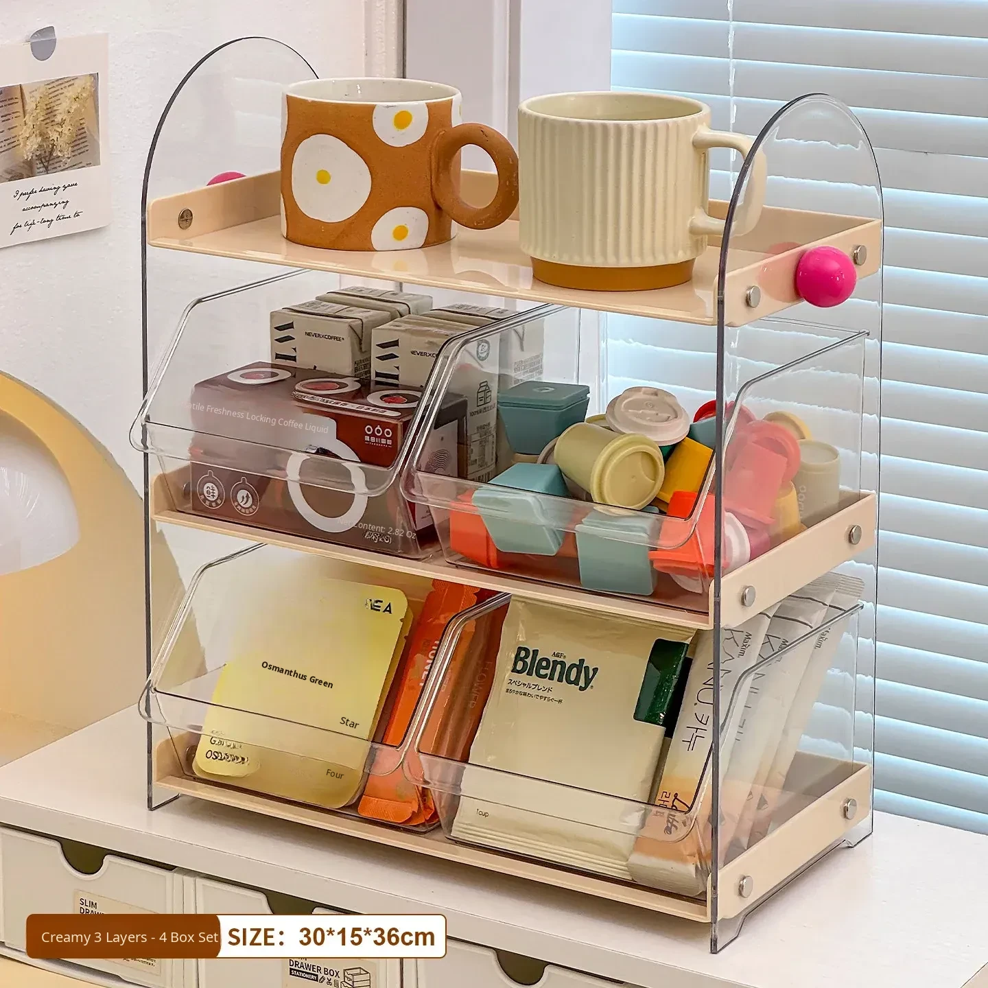 [4 Boxes] Cream 3-Layer Storage Rack(Wg–6452)