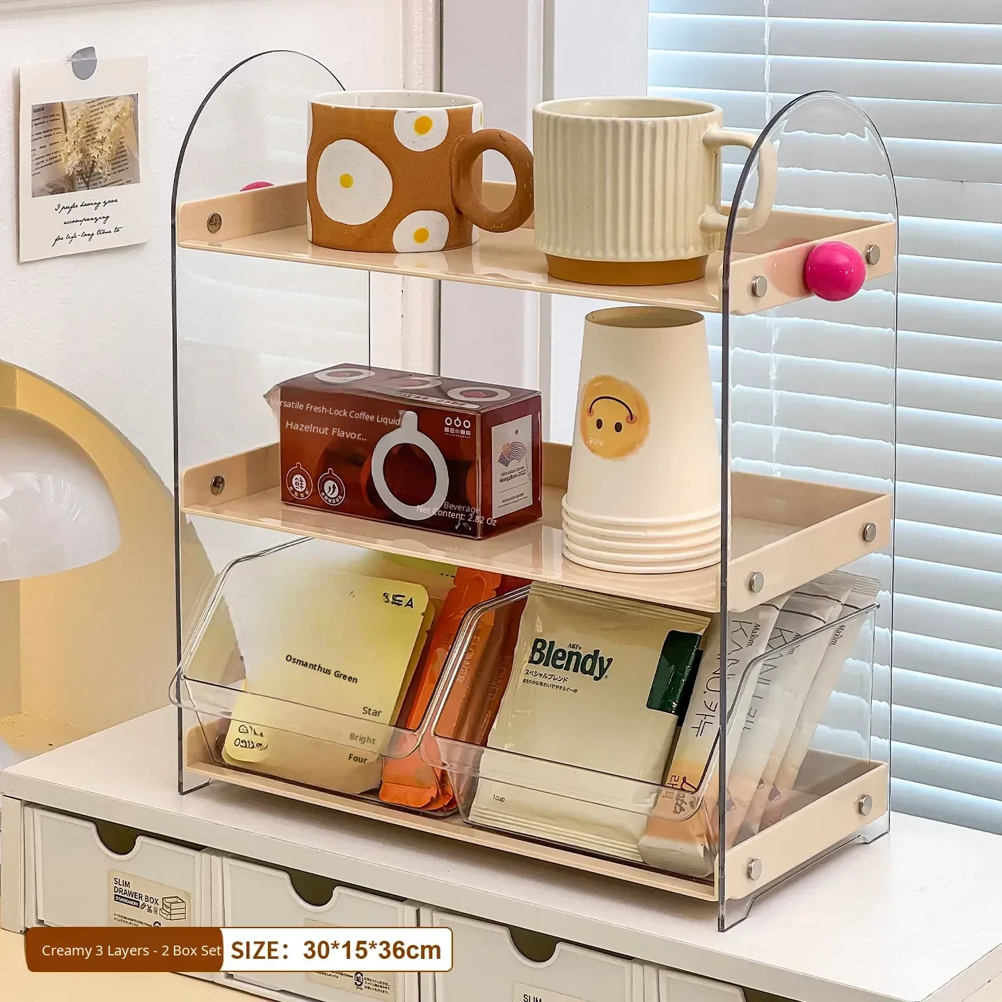[2 Boxes] Cream 3-Layer Storage Rack(Wg–6451)