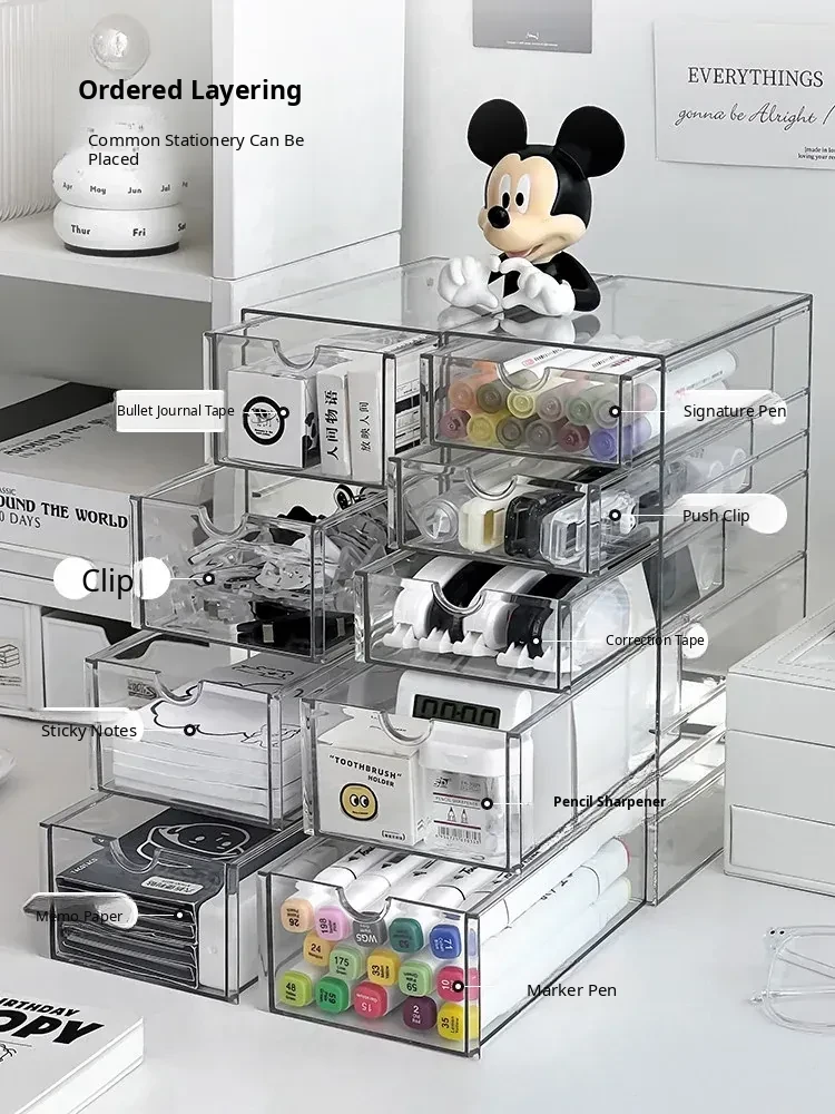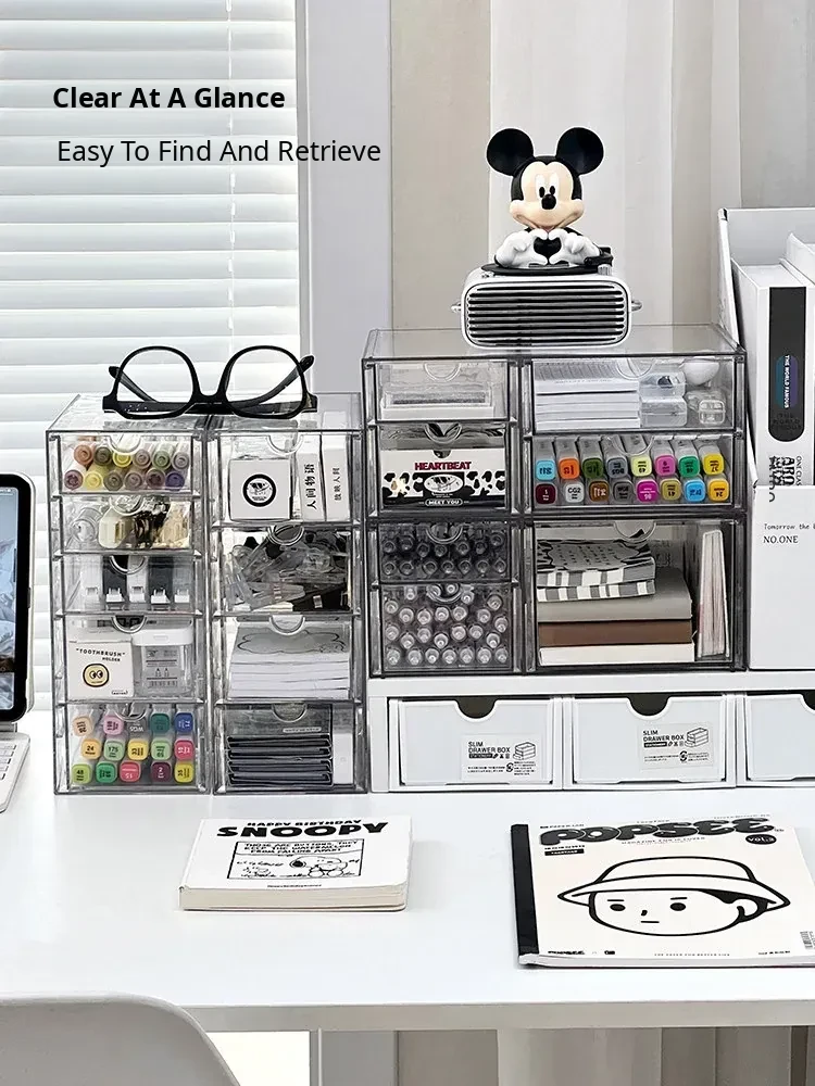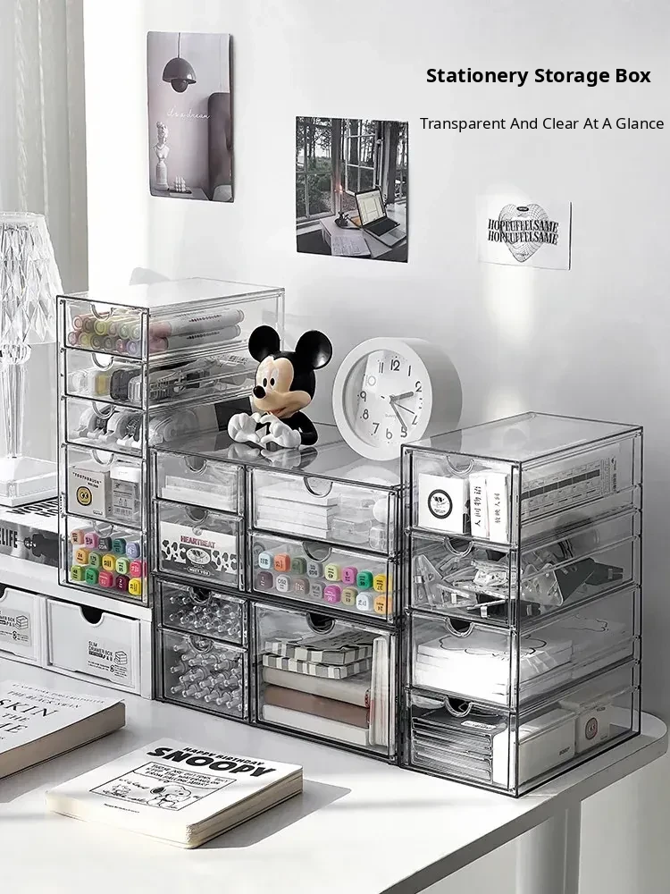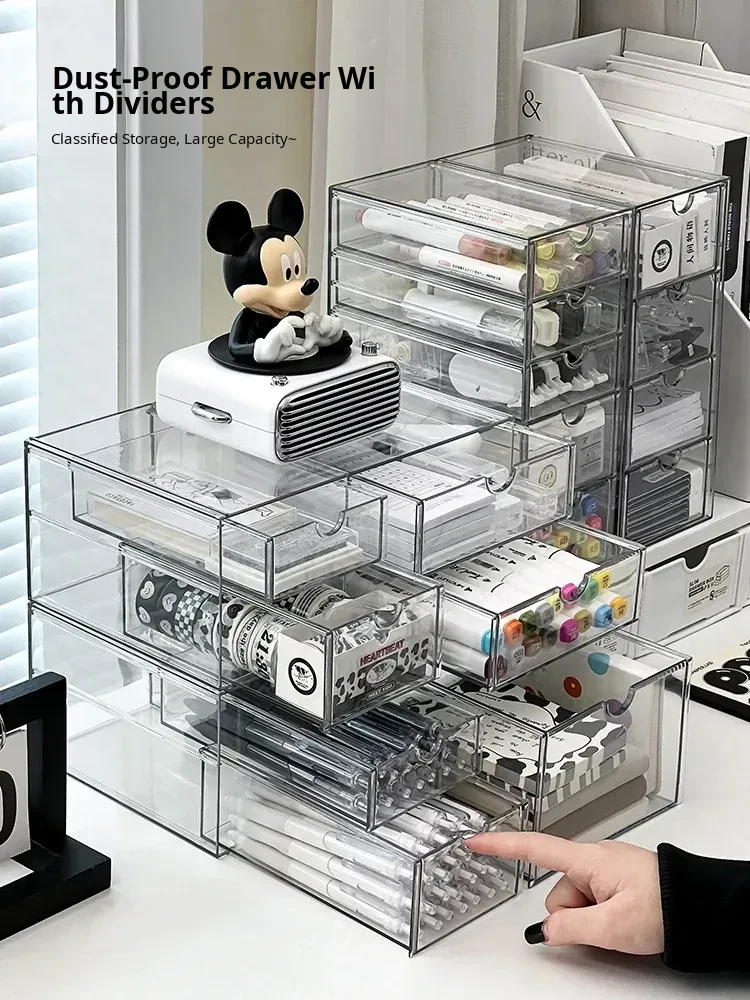 Acrylic Desktop Drawer Organizer - Versatile Large Capacity Stationery Holder and Pen Stand for Efficient Desk Organization and Note Storage