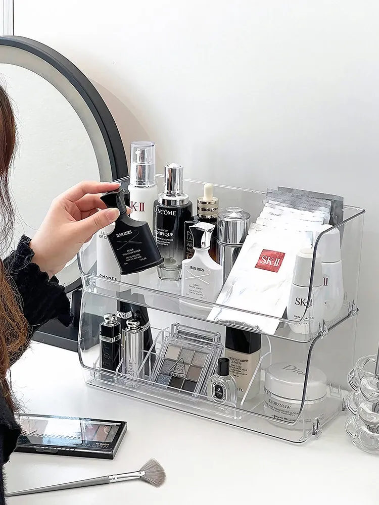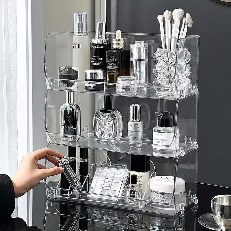 Acrylic Desktop Makeup Organizer - Stylish Vanity Storage for Skincare Products and Bathroom Essentials, Perfect for Keeping Your Space Neat and Tidy!