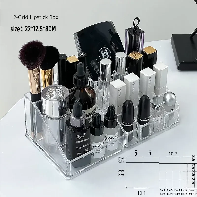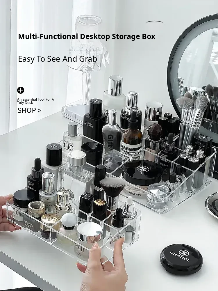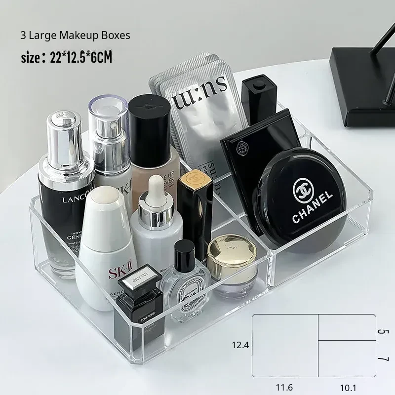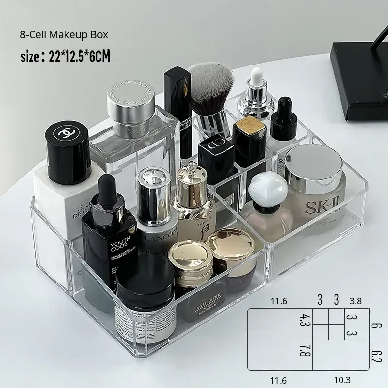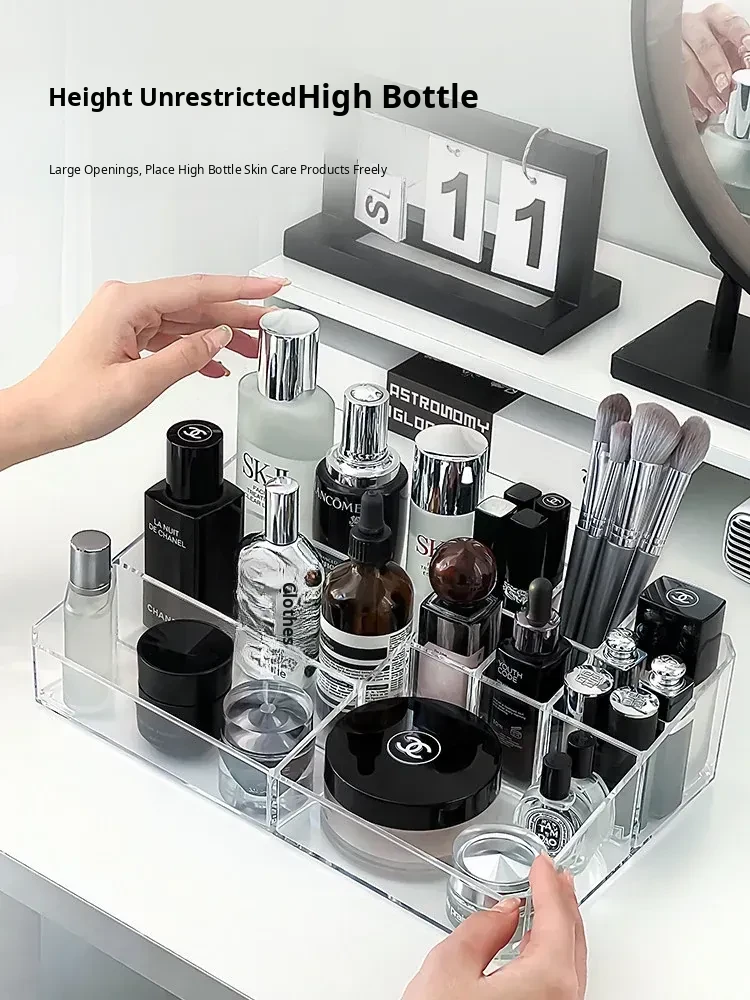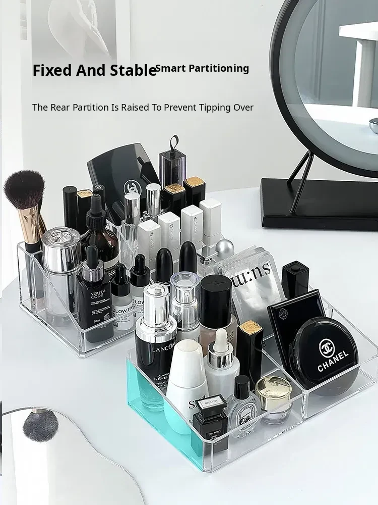 Acrylic Desktop Makeup Organizer - Transparent Cosmetic Storage Box for Vanity, Skincare Products, and Lipstick - Perfect for Dorms with Divided Compartments