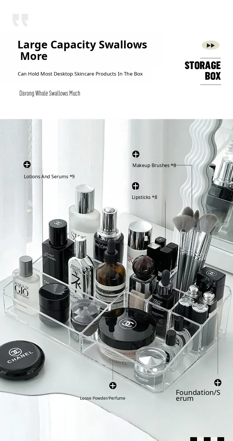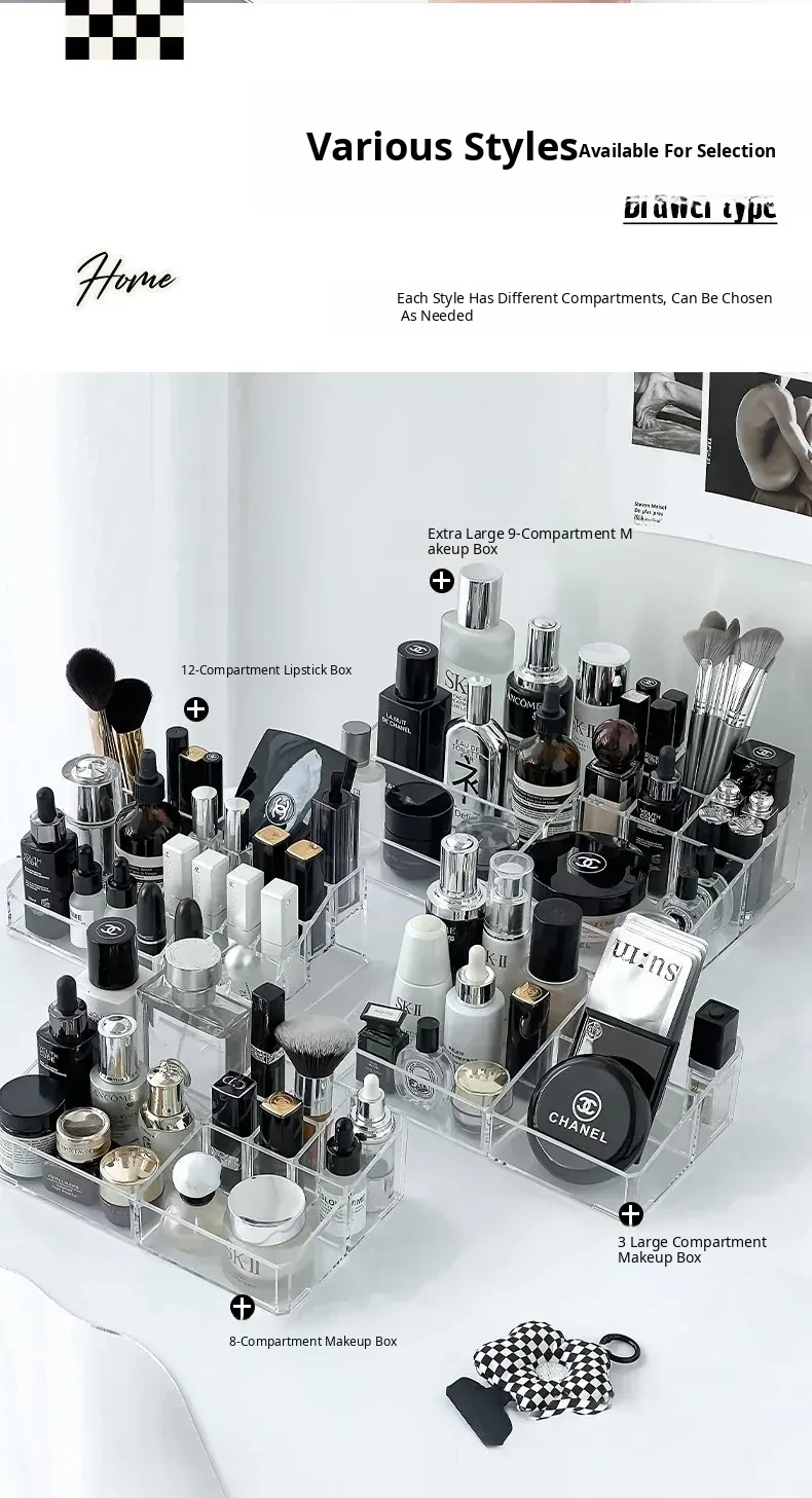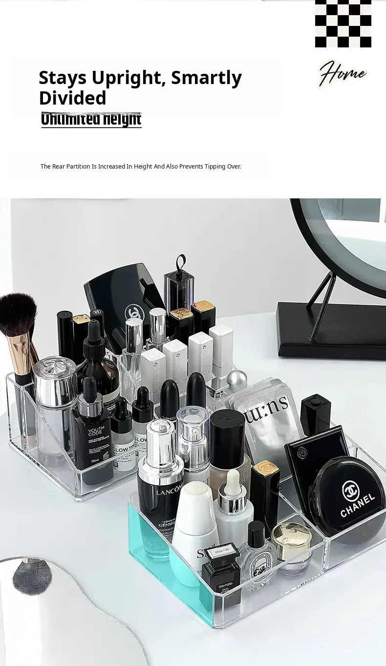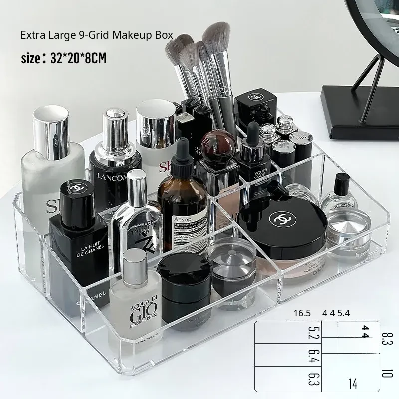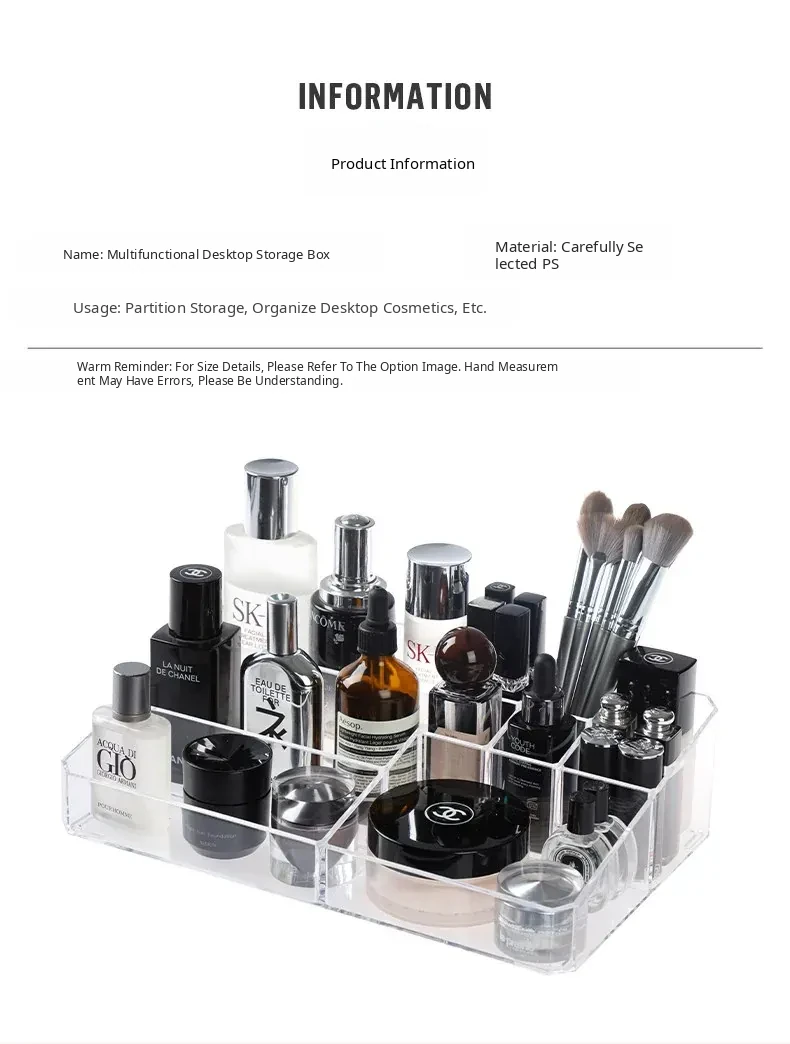 Acrylic Desktop Makeup Organizer - Transparent Cosmetic Storage Box for Vanity, Skincare Products, and Lipstick - Perfect for Dorms with Divided Compartments