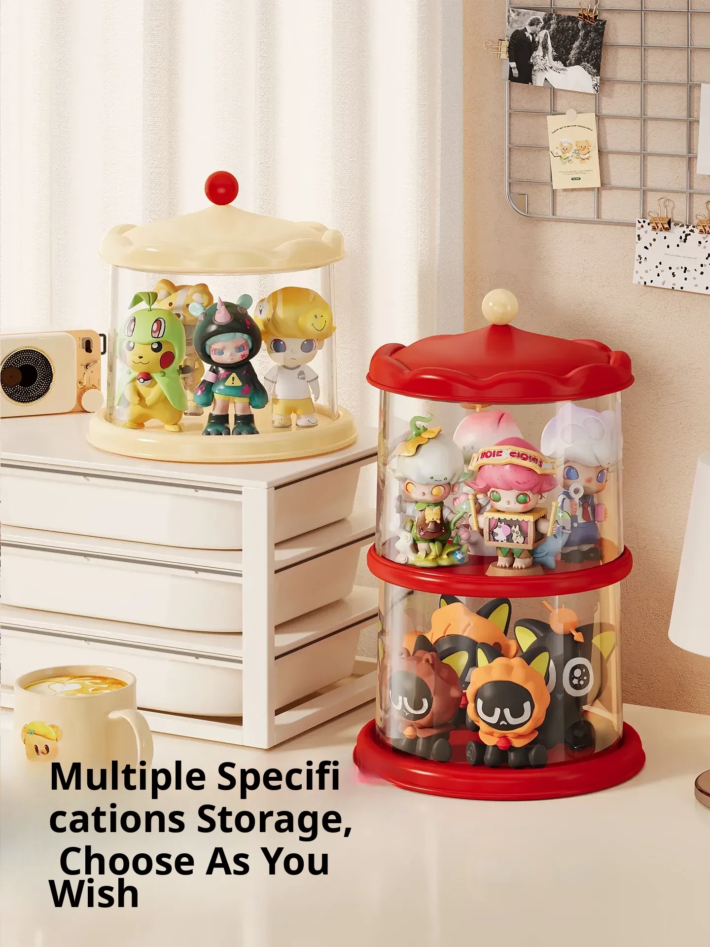 [Double Layer-Cream Red] Rotating Figure Display Box-Df-6331