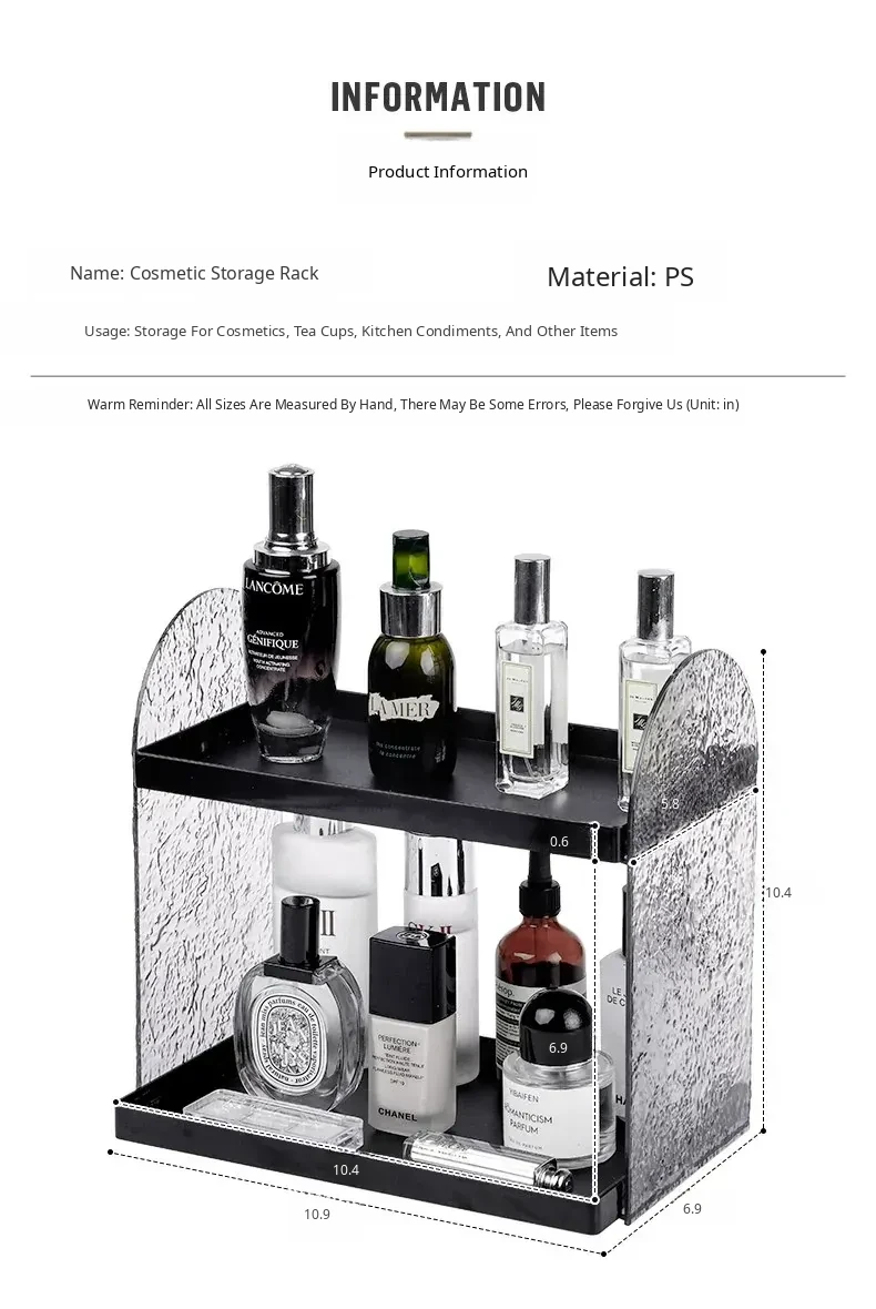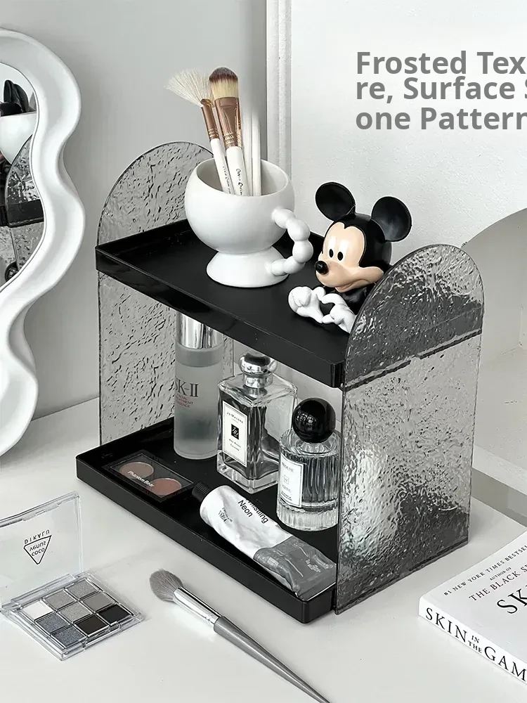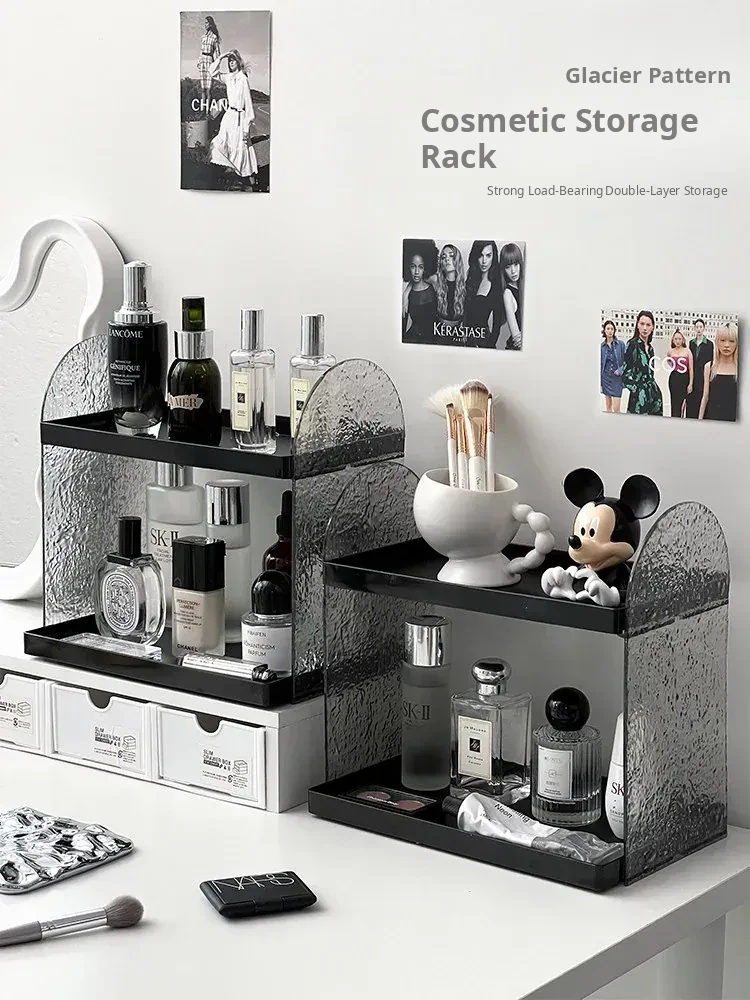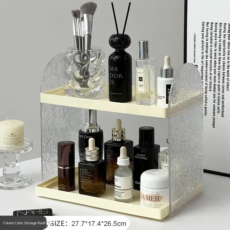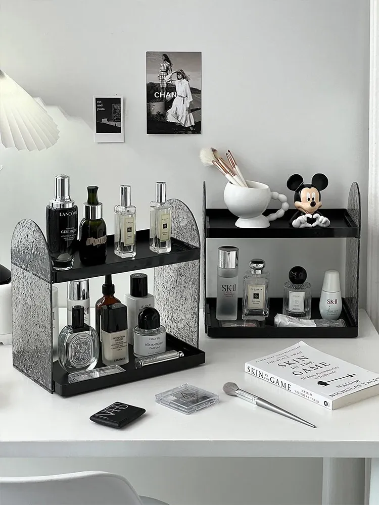 Acrylic Double-Layer Makeup Organizer - Stylish Vanity Storage for Cosmetics, Perfumes, and Skincare Products - Elevated Lipstick Holder for Desktop Use