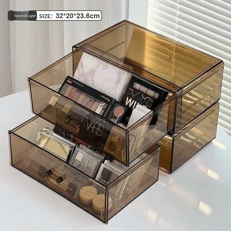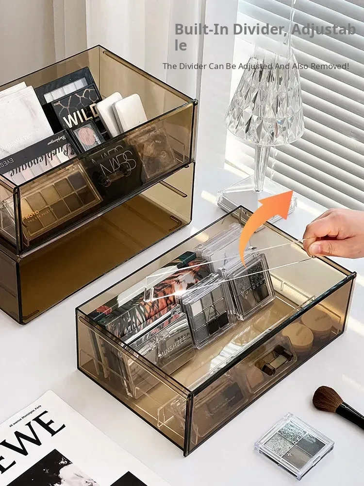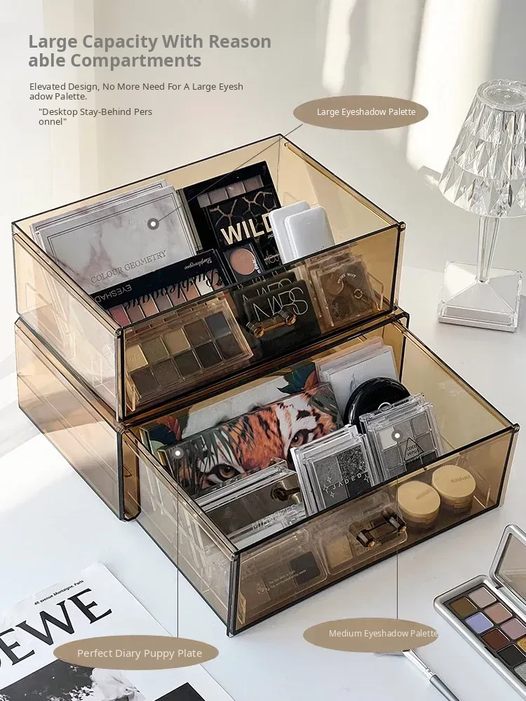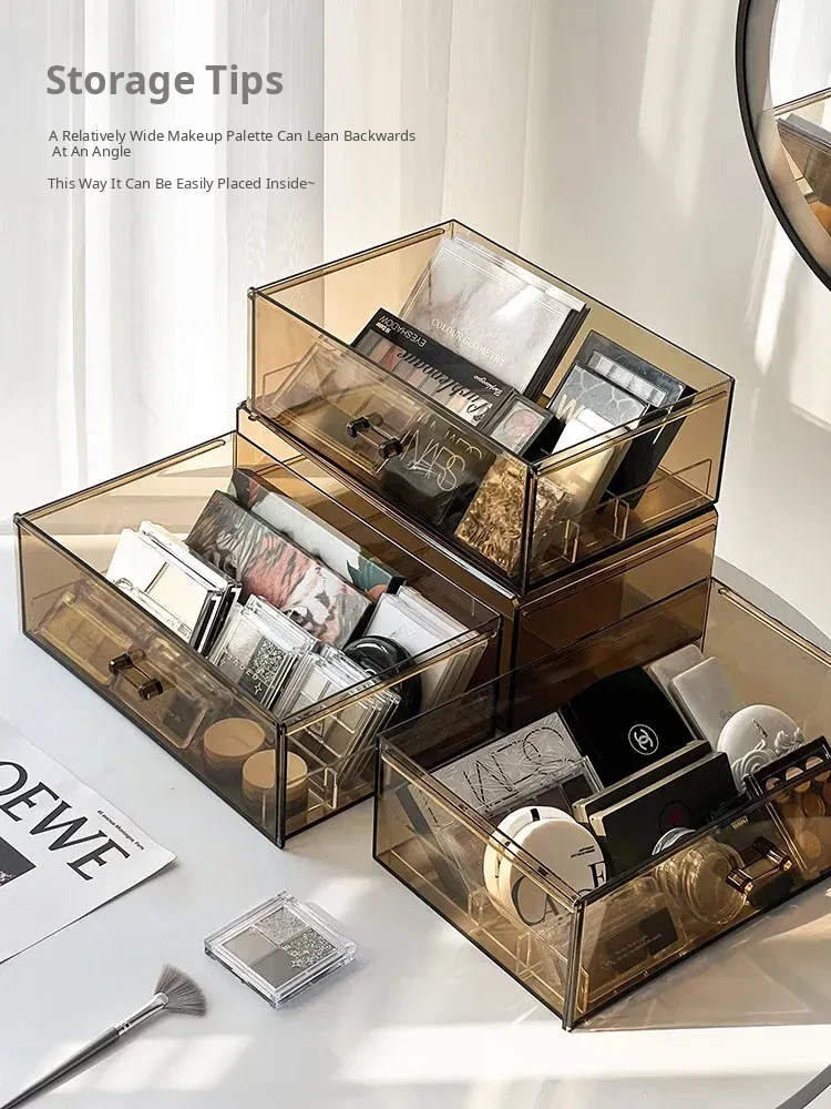 Acrylic Eyeshadow Palette Organizer - Makeup Drawer Storage Box for Cushions, Powders, and Lipsticks - Stylish Vanity Organizer with Dividers for Neat and Easy Access to Cosmetics