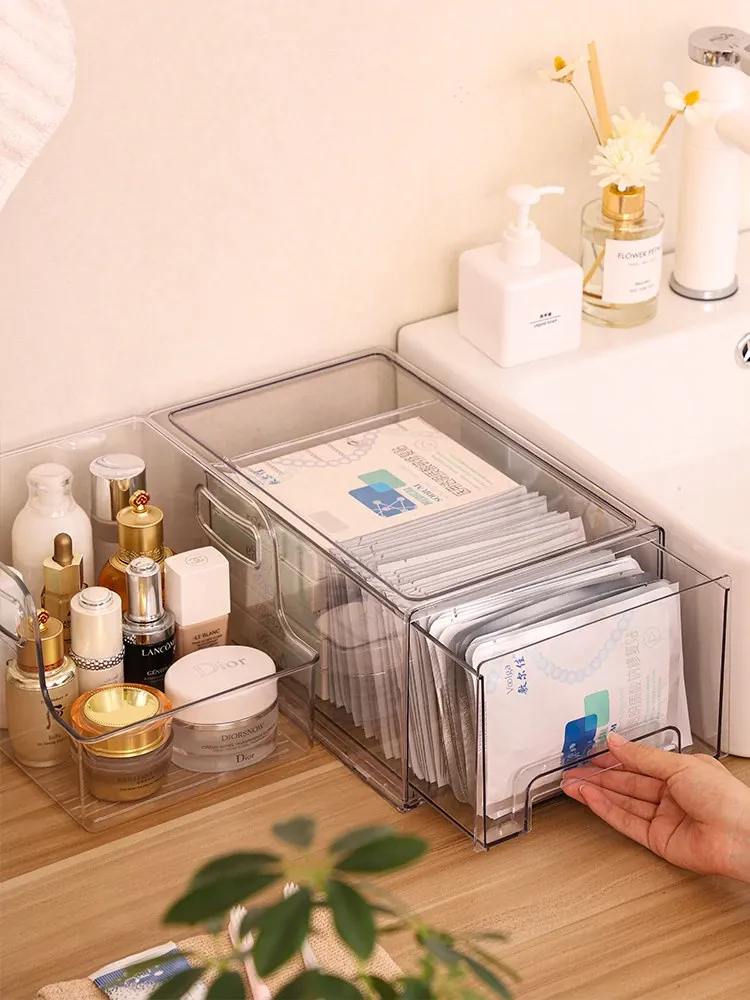 Acrylic Makeup Organizer Box for Desktop - Stylish Japanese Style Drawer Storage for Bathroom and Vanity - Perfect for Students and Beauty Enthusiasts!