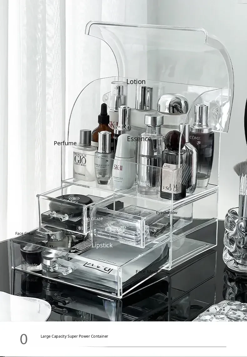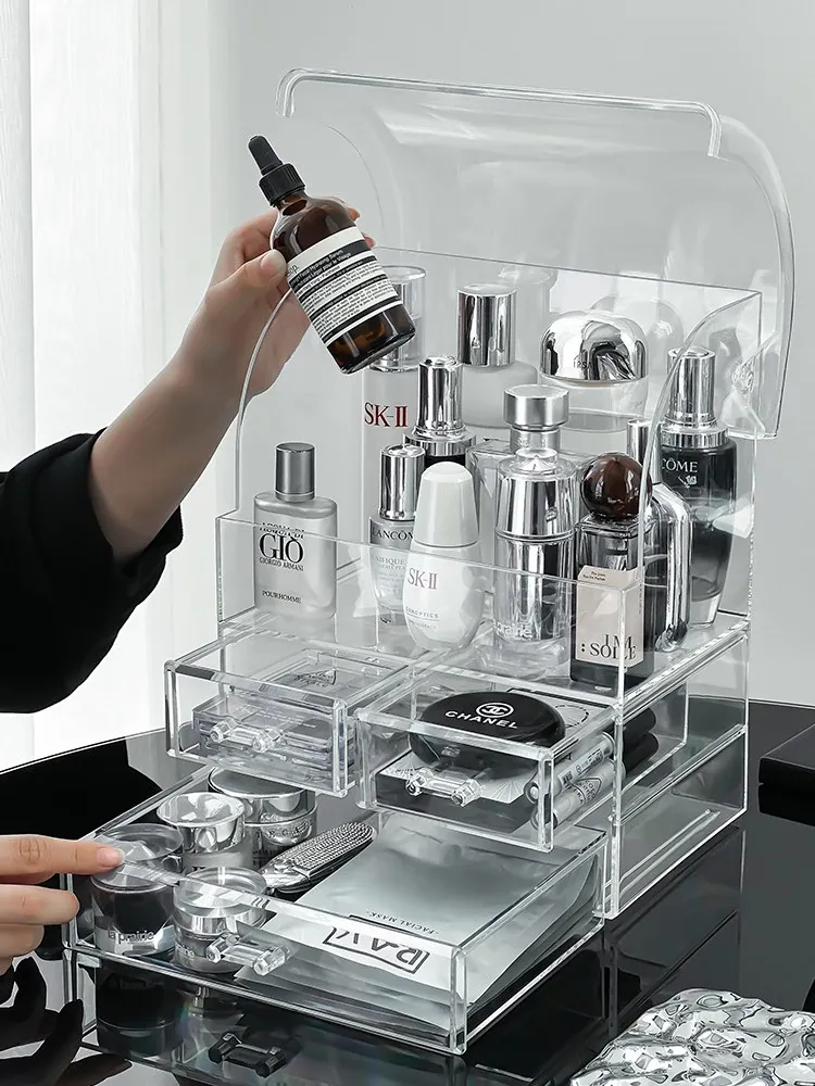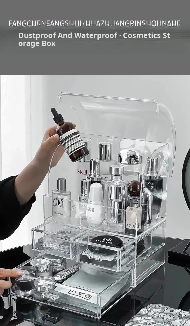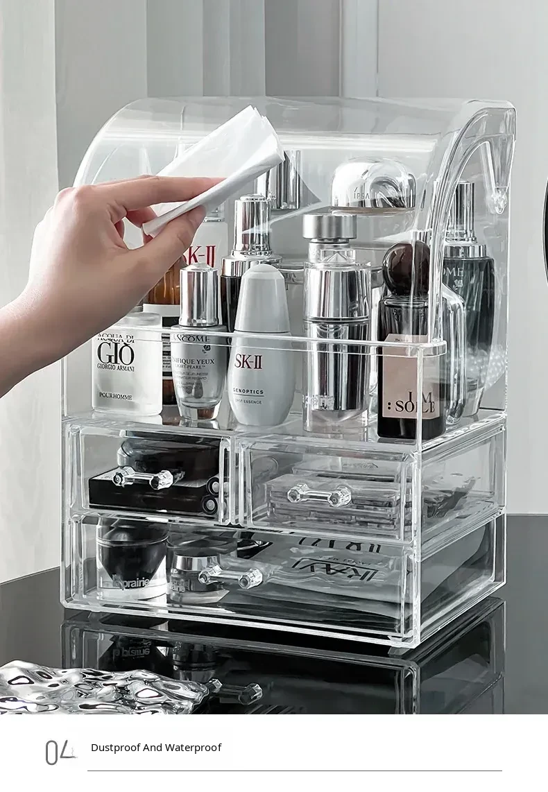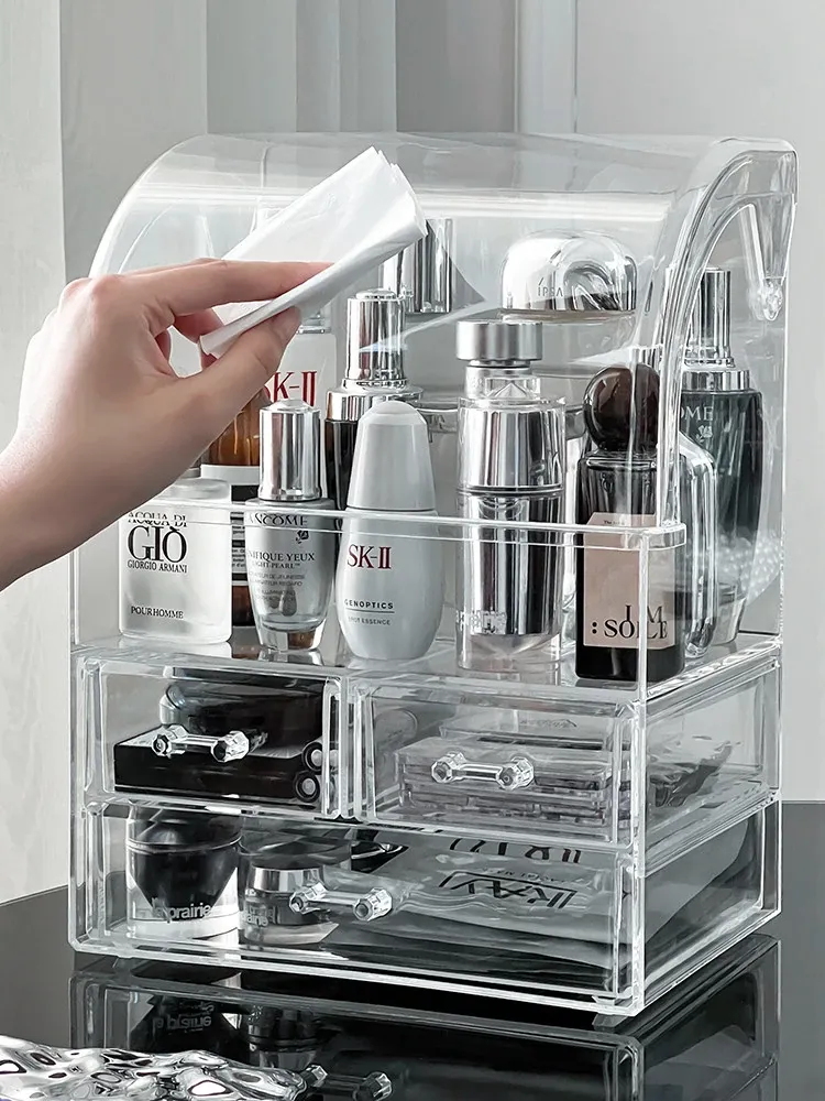 Acrylic Makeup Organizer Box - Transparent Cosmetic Storage with Dustproof Design for Vanity Table, Ideal for Skincare Products and Lipstick Drawer Storage