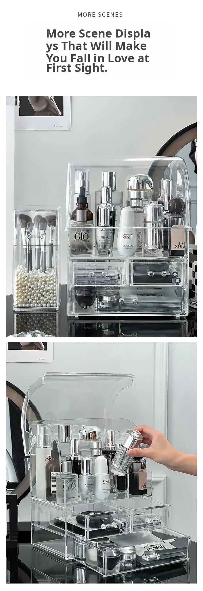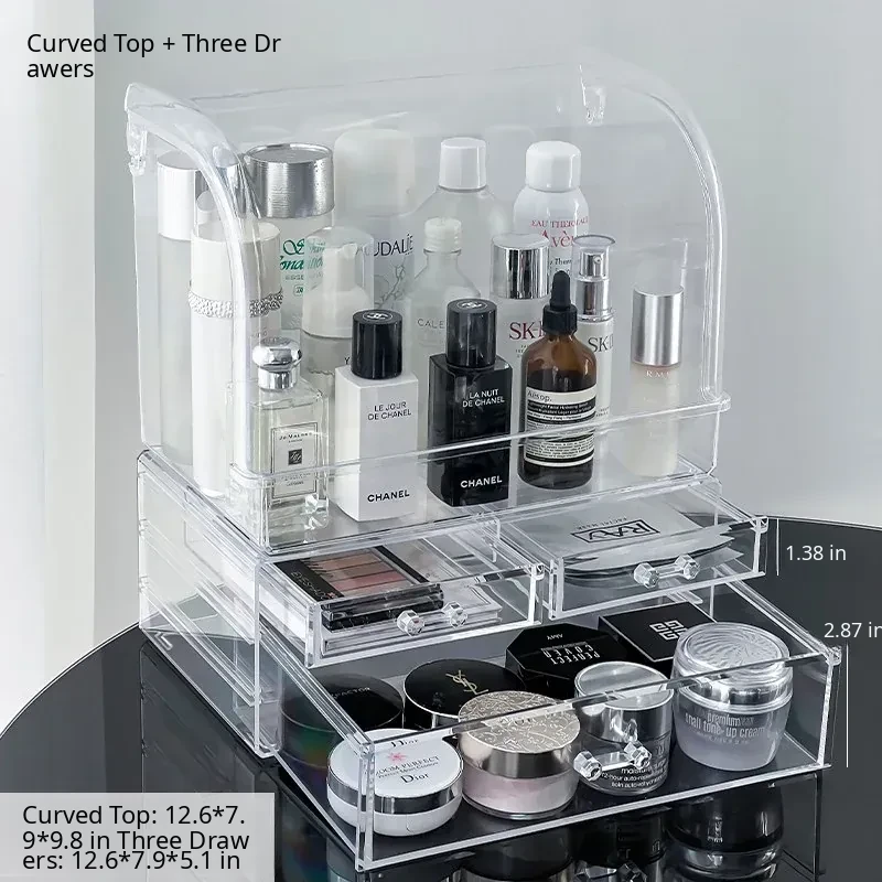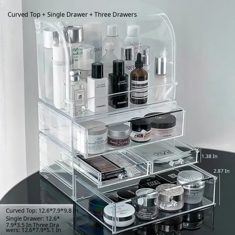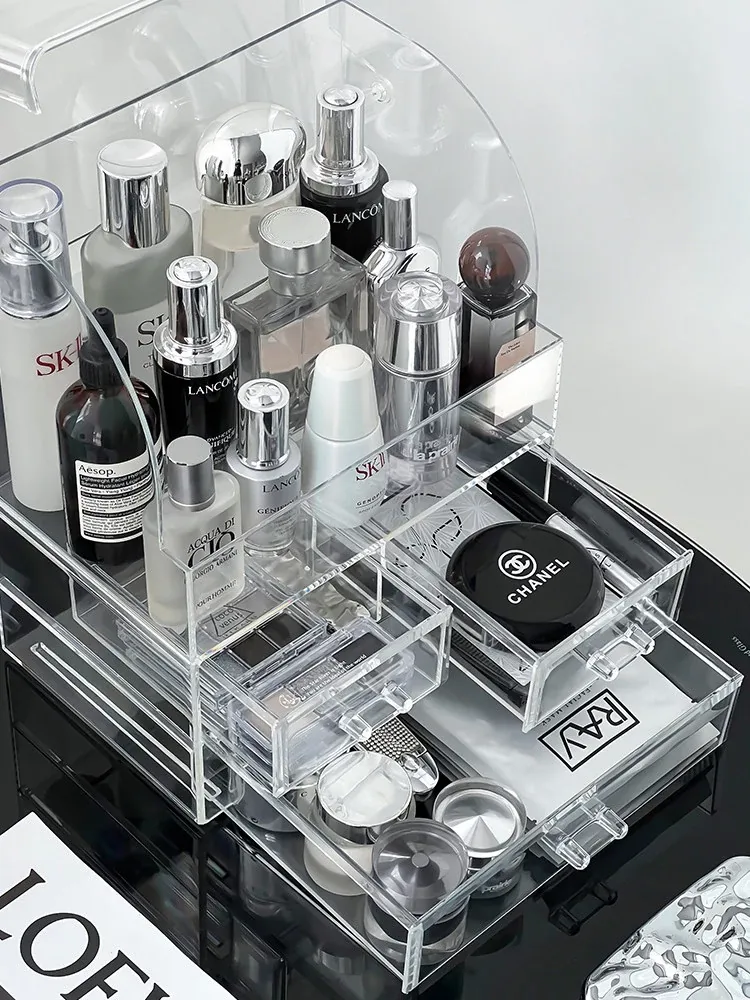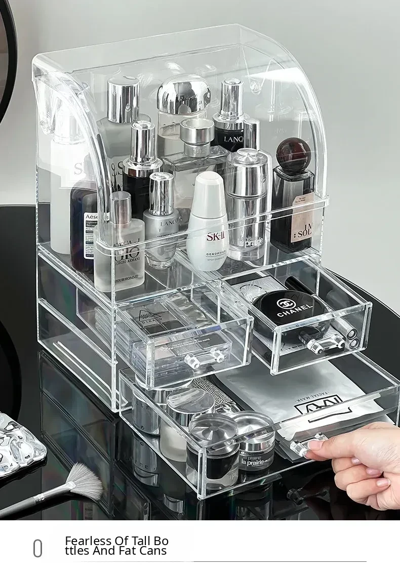 Acrylic Makeup Organizer Box - Transparent Cosmetic Storage with Dustproof Design for Vanity Table, Ideal for Skincare Products and Lipstick Drawer Storage