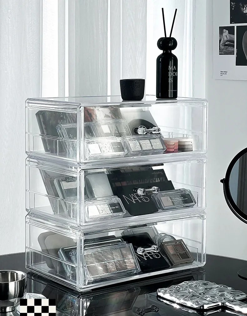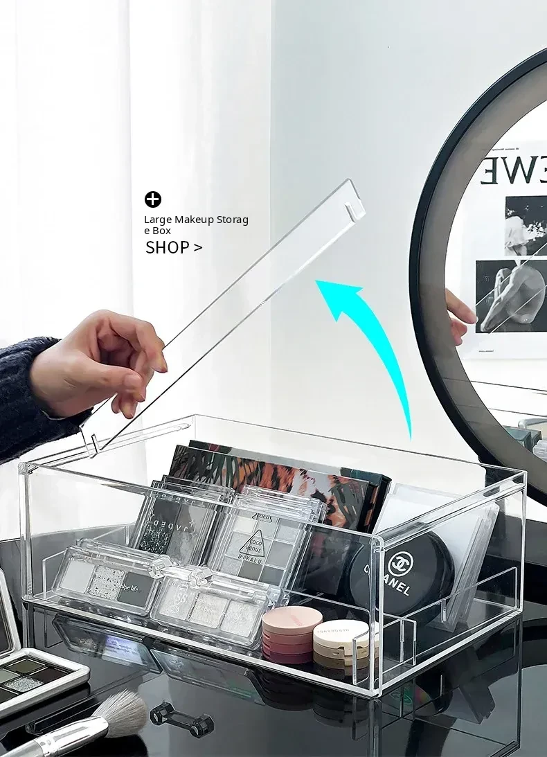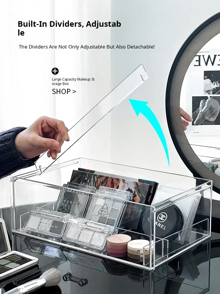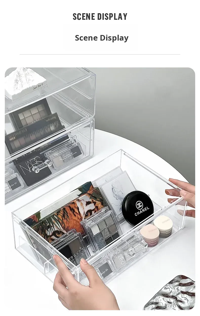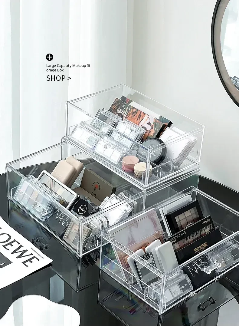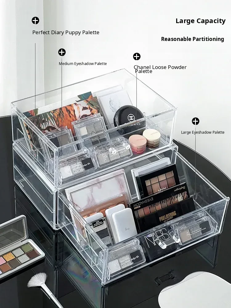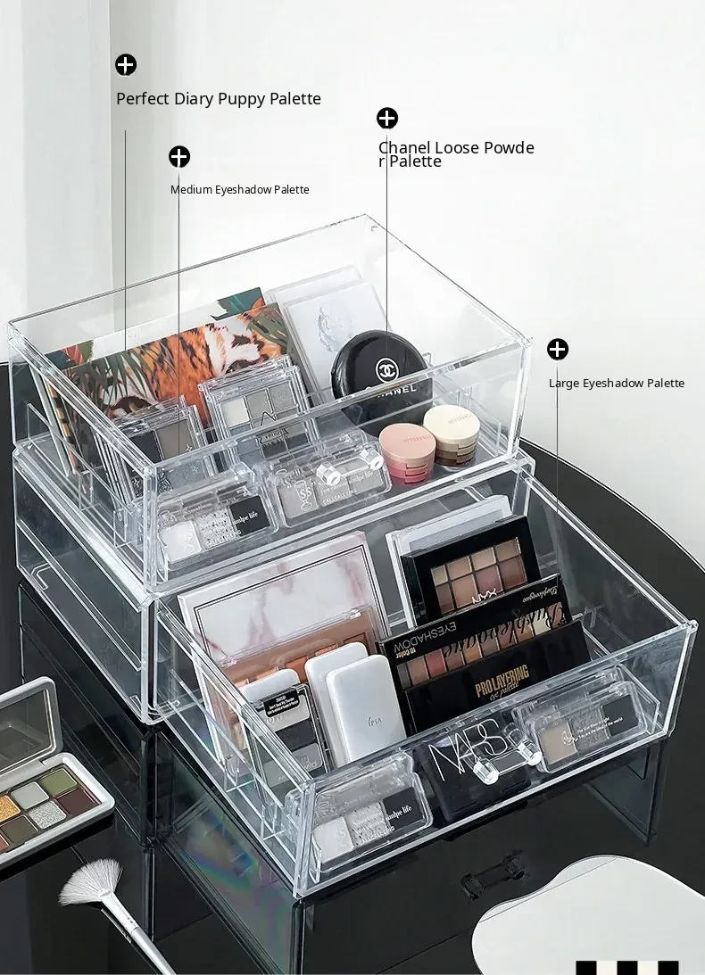Acrylic Makeup Organizer - Eyeshadow Palette Storage Box, Powder Compact Holder, Desktop Nail Polish and Lipstick Separator Drawer for Cosmetics