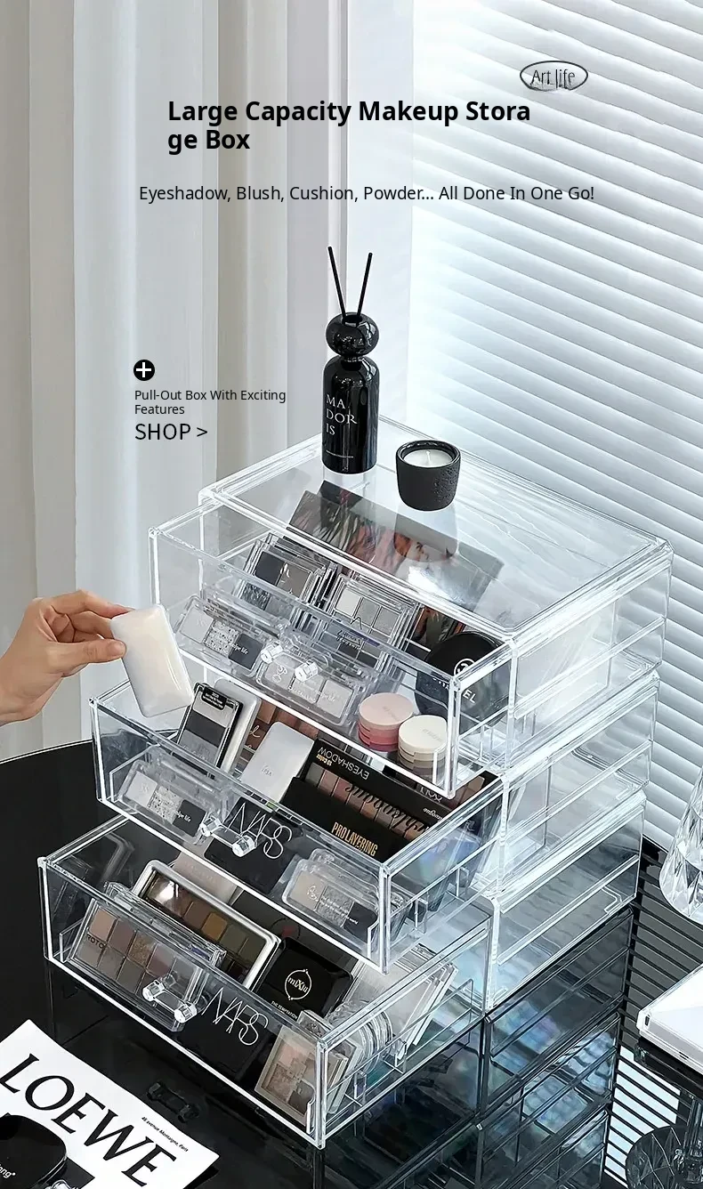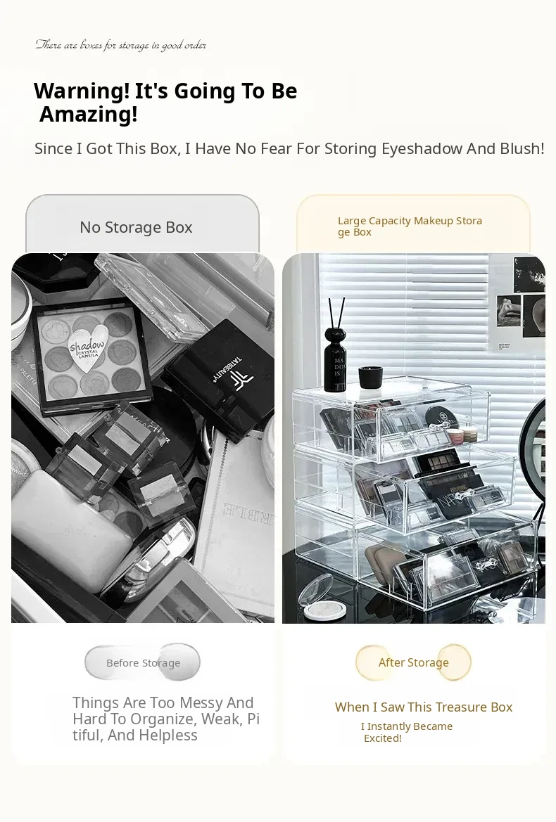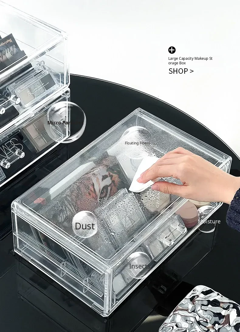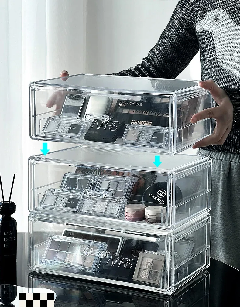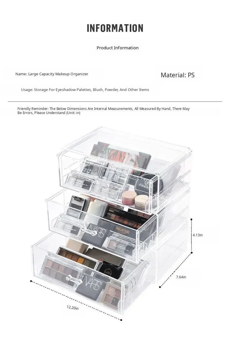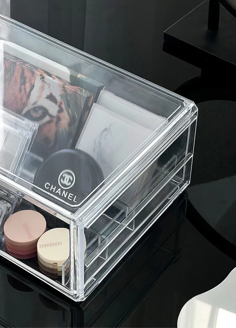 Acrylic Makeup Organizer - Eyeshadow Palette Storage Box, Powder Compact Holder, Desktop Nail Polish and Lipstick Separator Drawer for Cosmetics