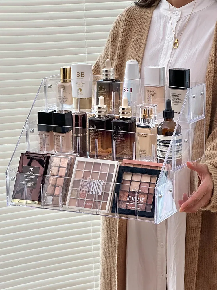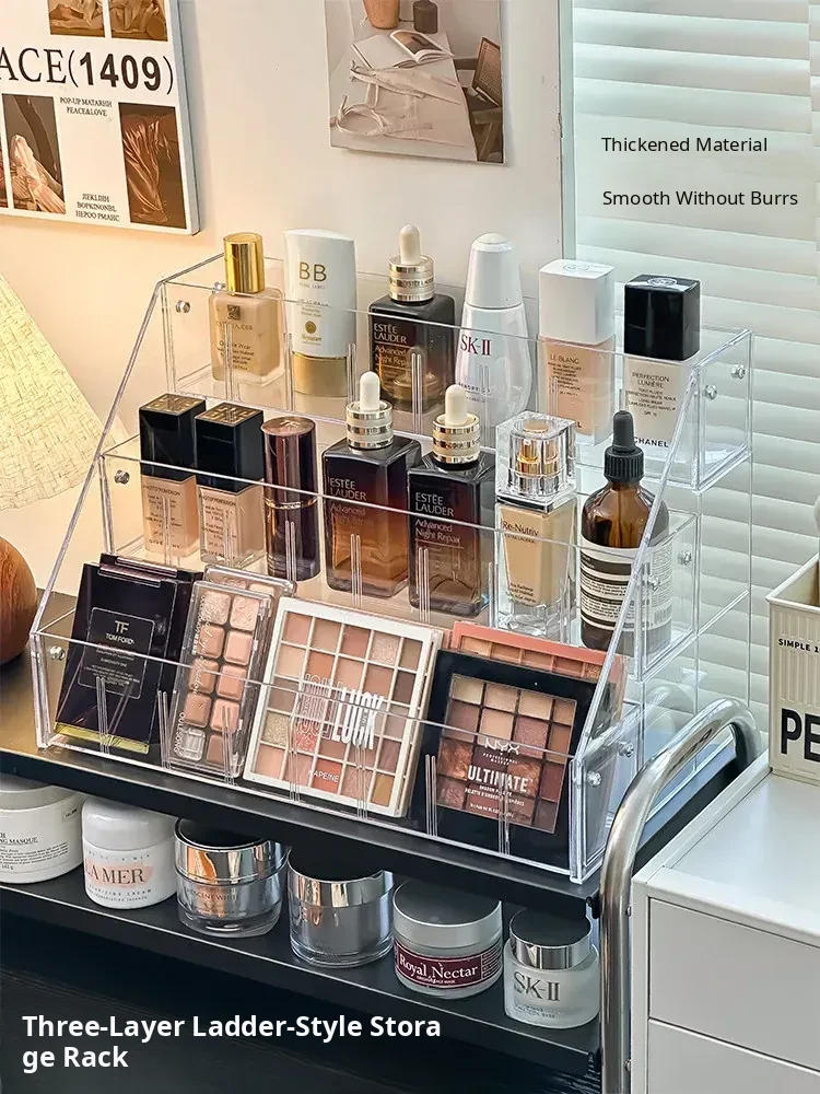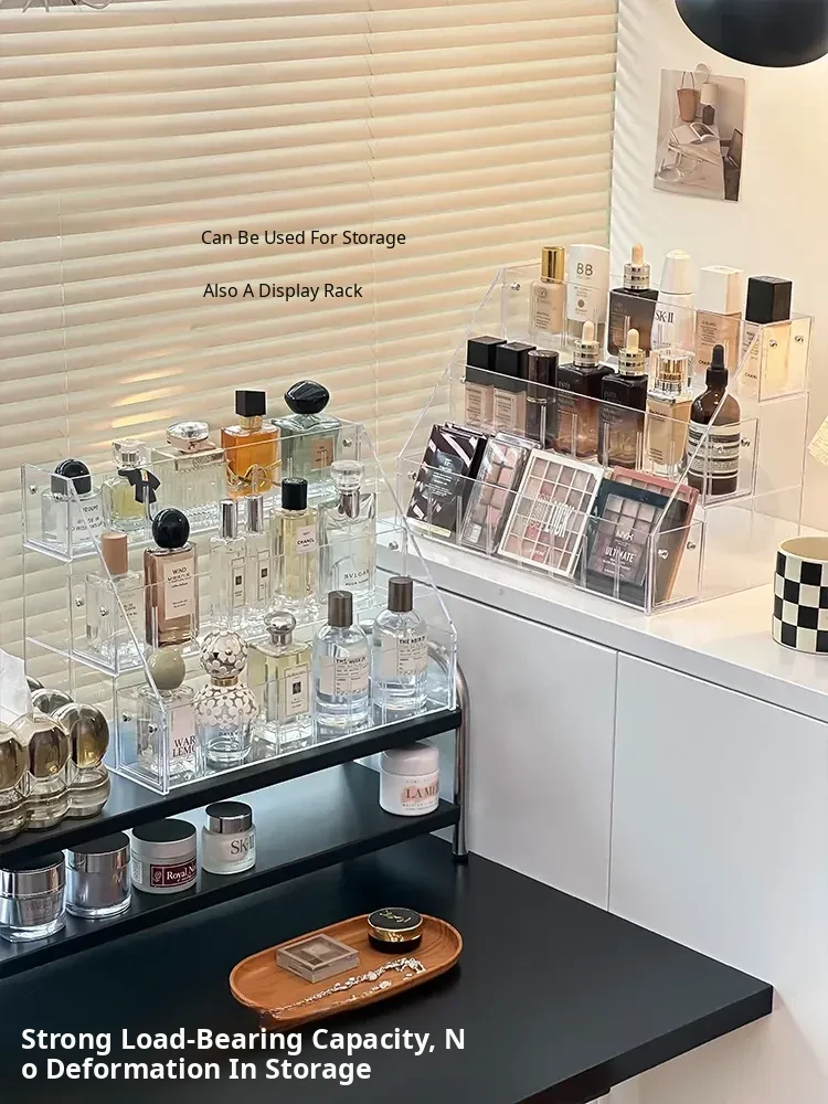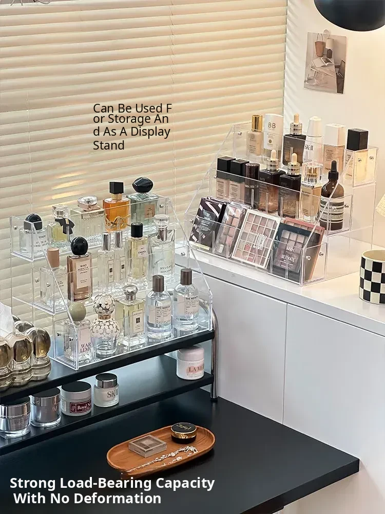 Acrylic Makeup Organizer Stand - Tiered Eyeshadow Palette Display Rack, Perfume Showcase, and Lipstick Storage Box for Your Vanity