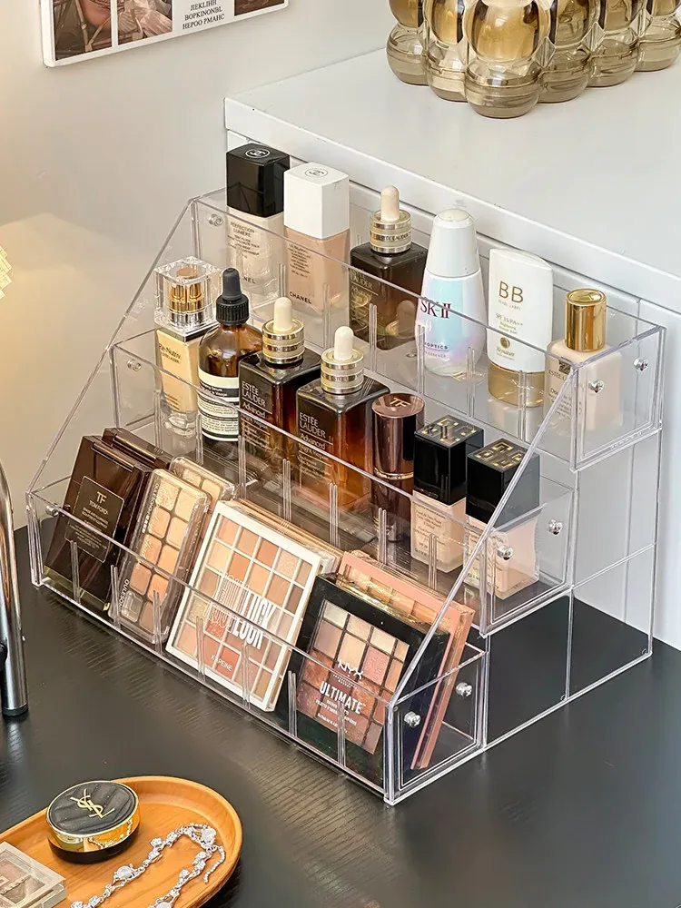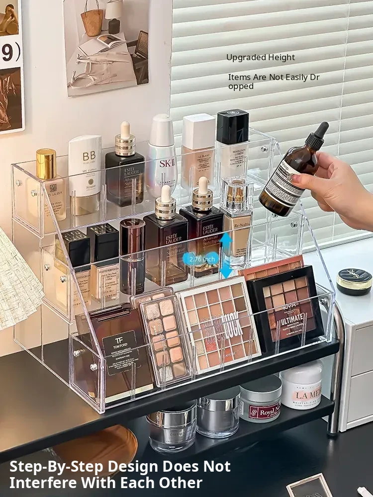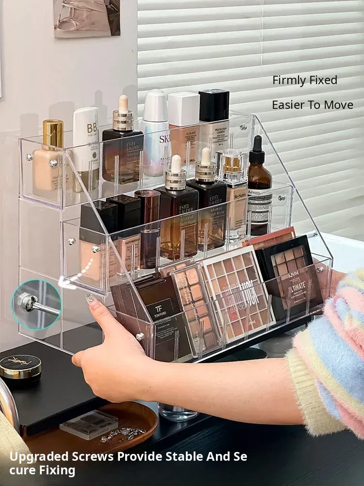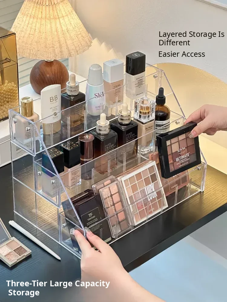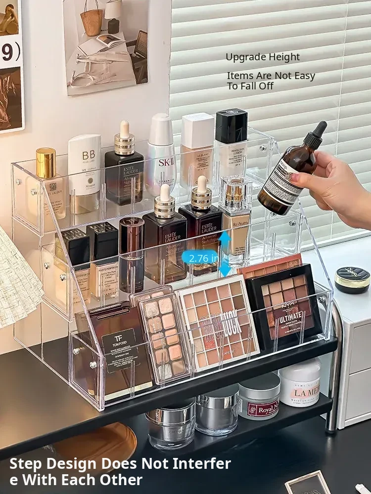 Acrylic Makeup Organizer Stand - Tiered Eyeshadow Palette Display Rack, Perfume Showcase, and Lipstick Storage Box for Your Vanity