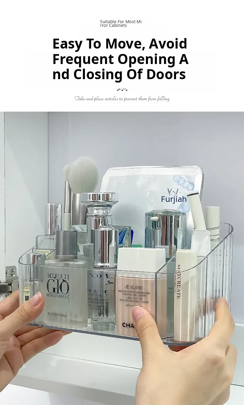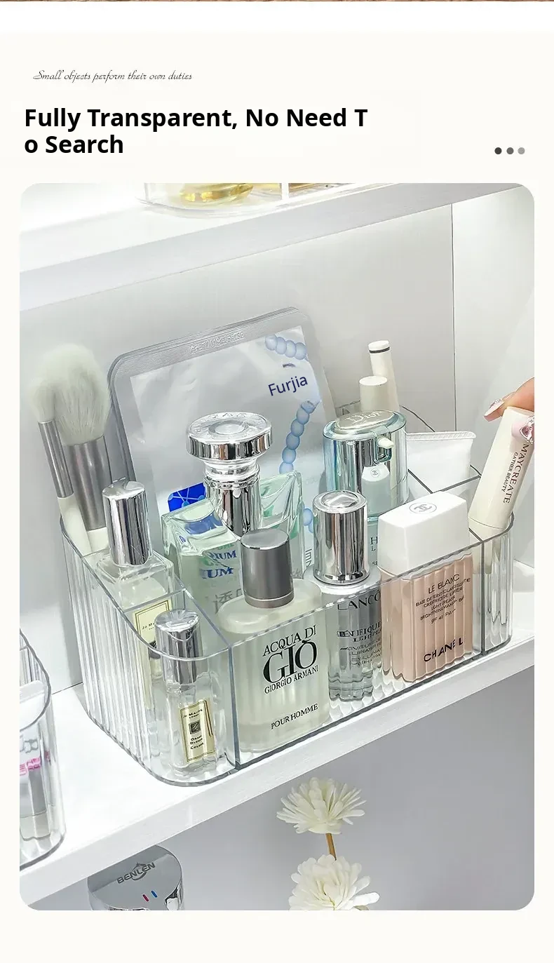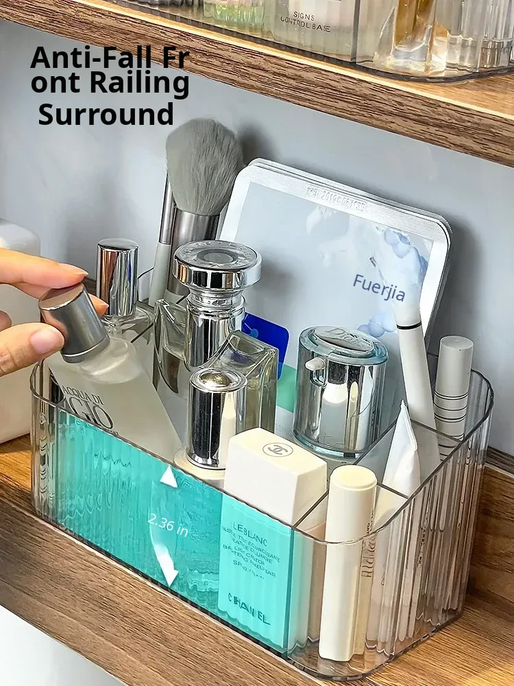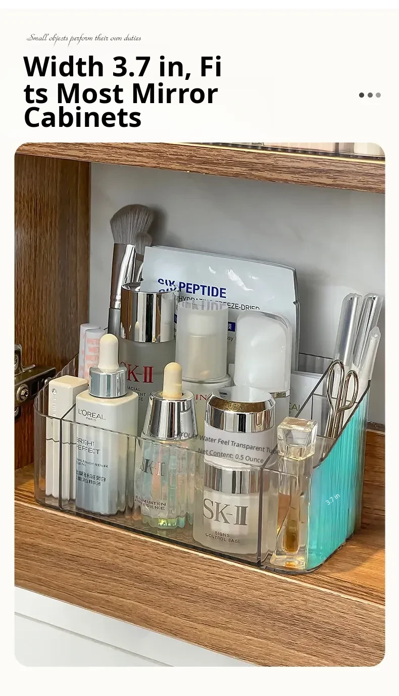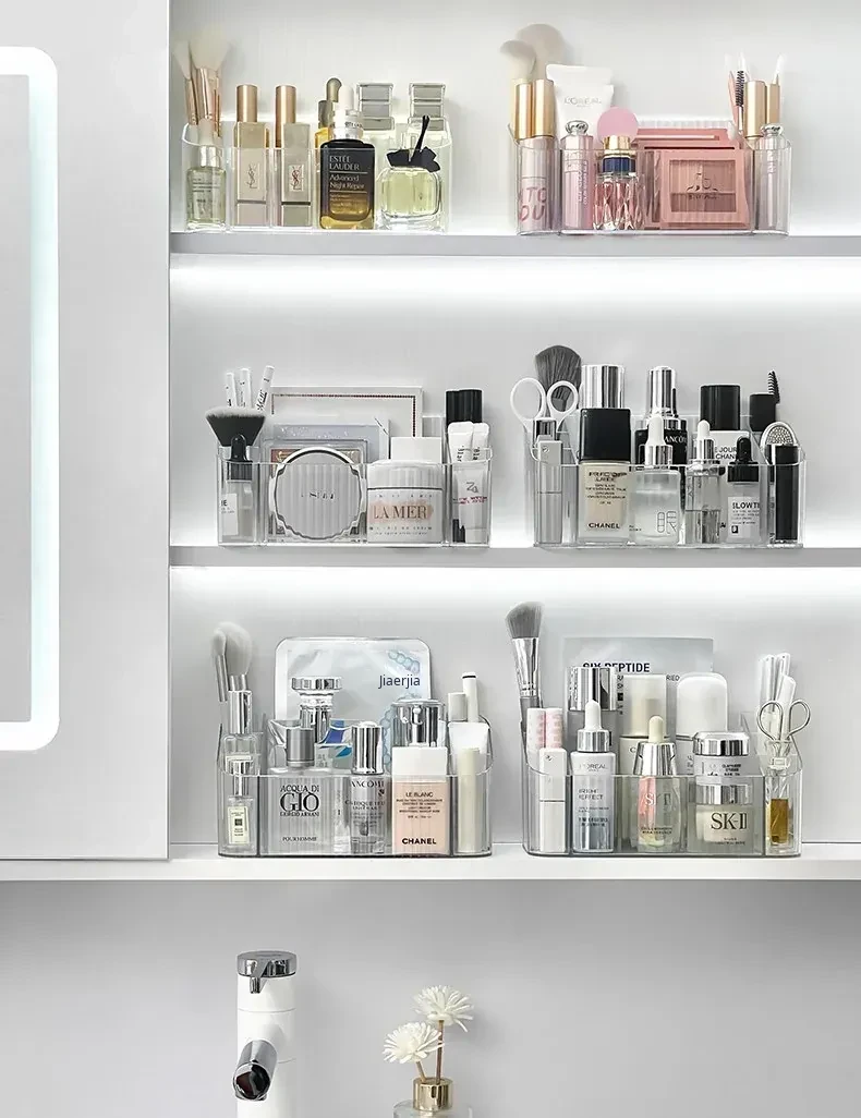 Acrylic Makeup Organizer with Transparent Dividers - Stylish Bathroom Mirror Cabinet Storage Box for Cosmetics, Brushes, and Lipsticks - Keep Your Beauty Essentials Neat and Accessible!