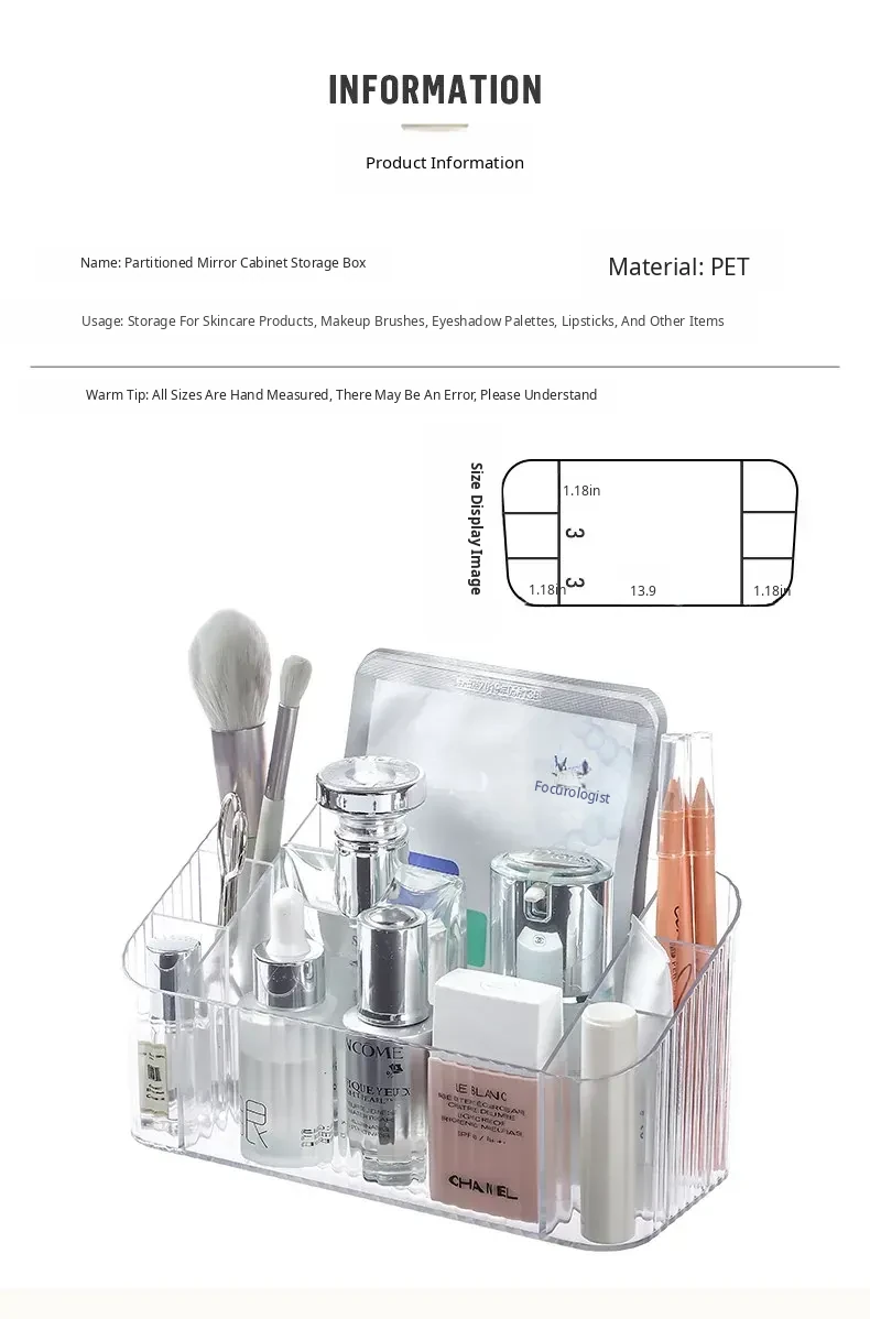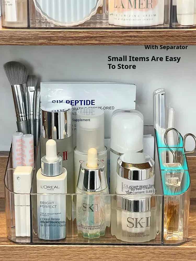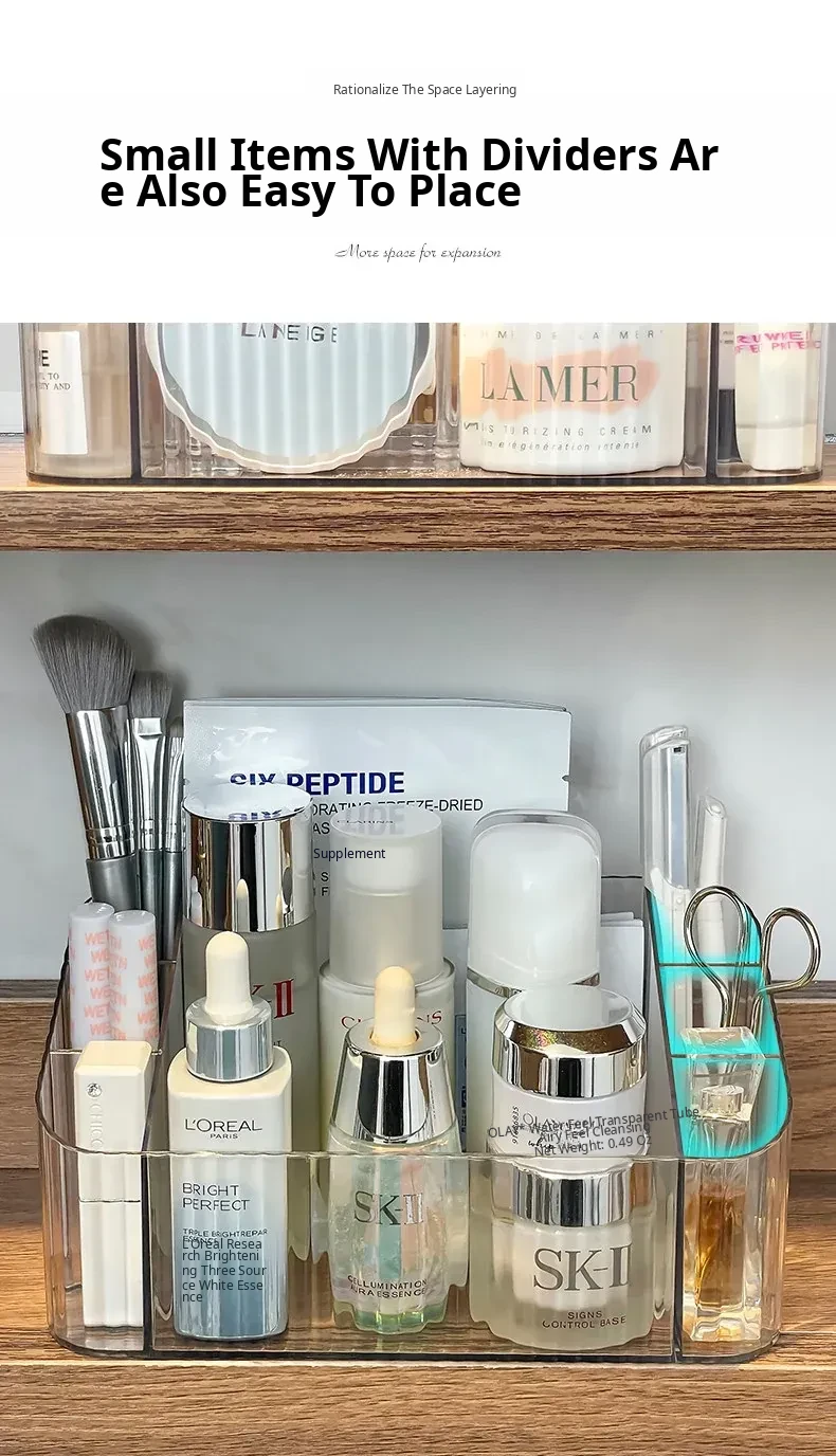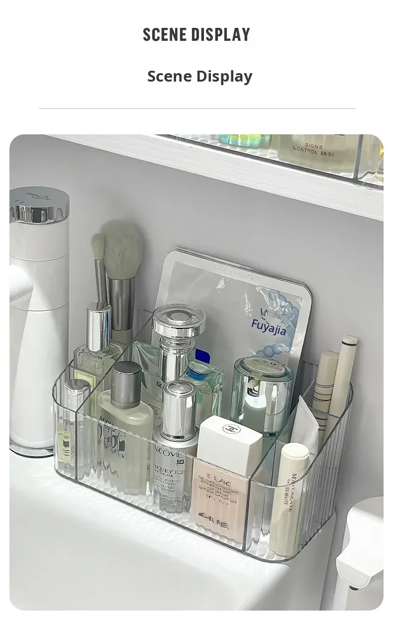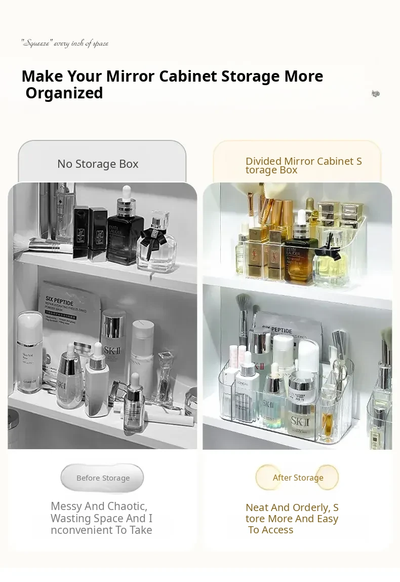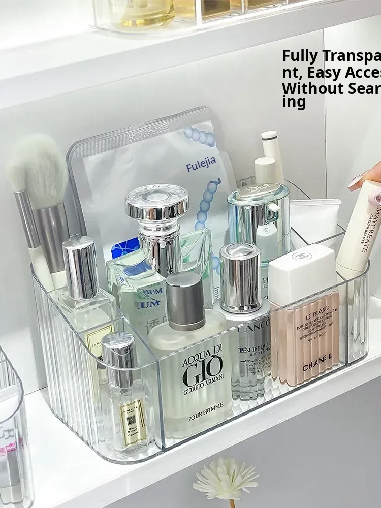 Acrylic Makeup Organizer with Transparent Dividers - Stylish Bathroom Mirror Cabinet Storage Box for Cosmetics, Brushes, and Lipsticks - Keep Your Beauty Essentials Neat and Accessible!