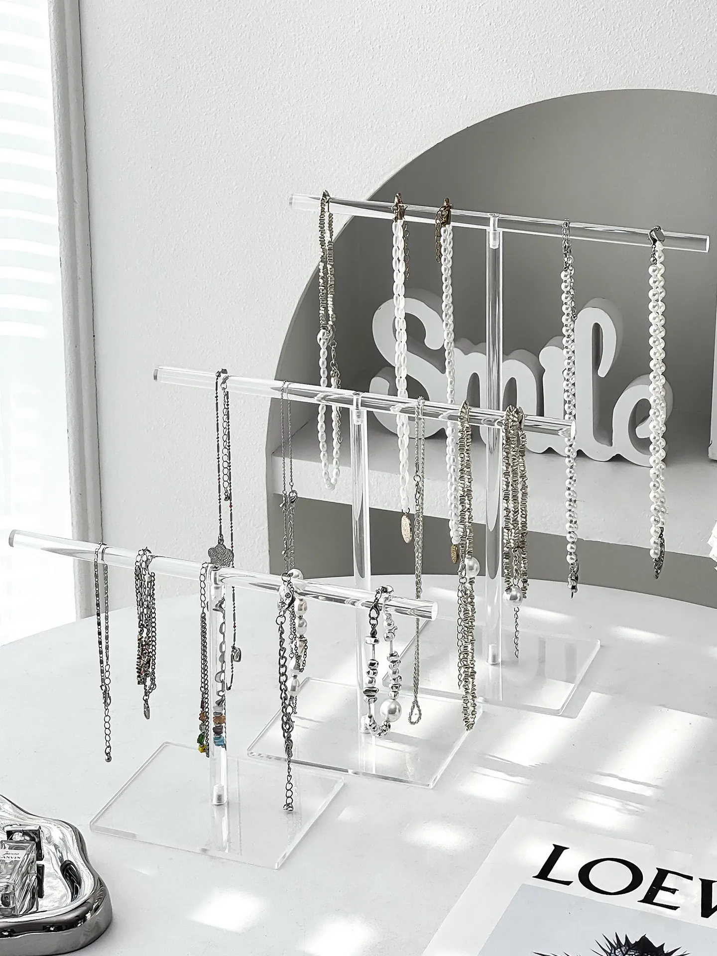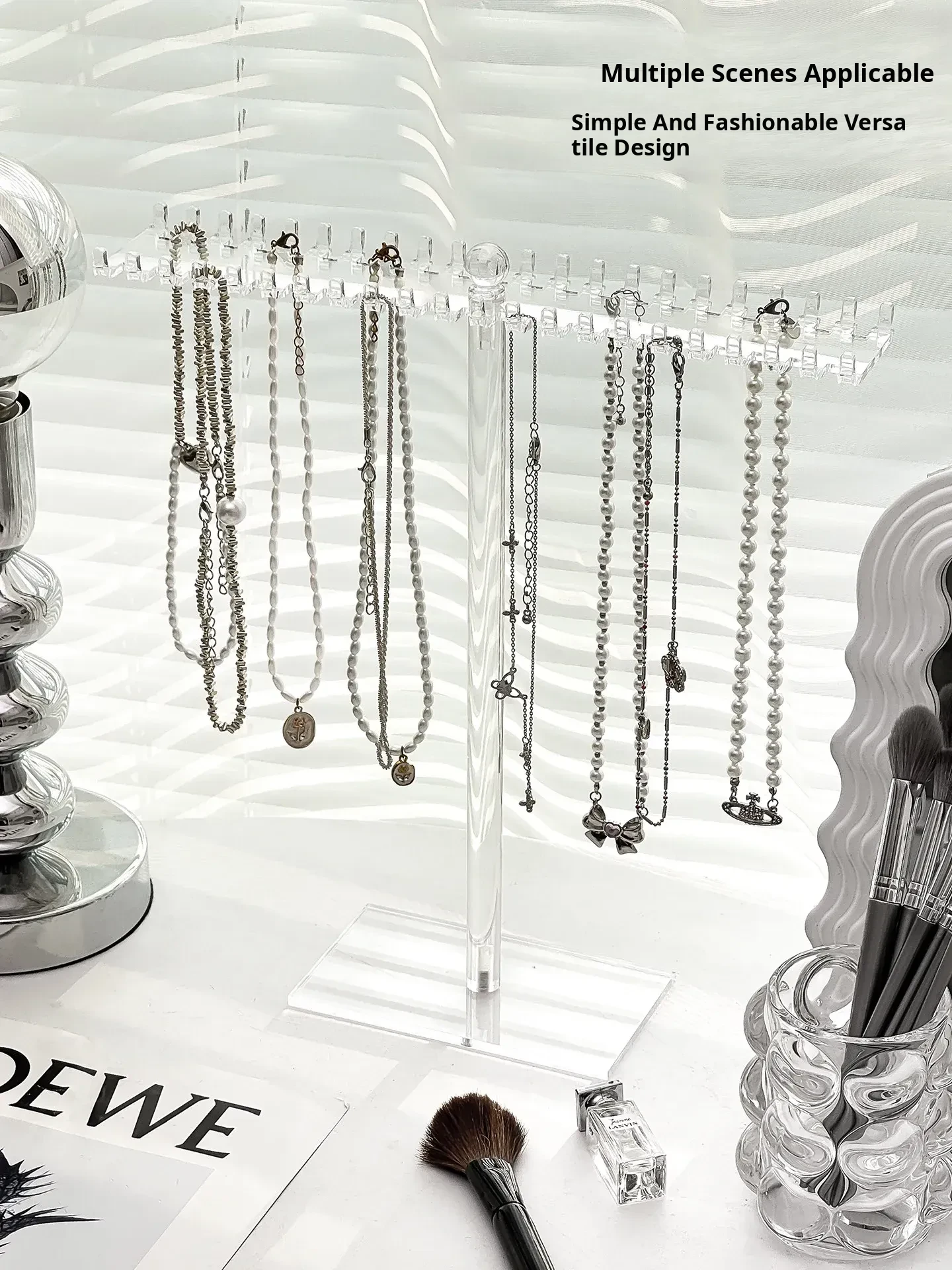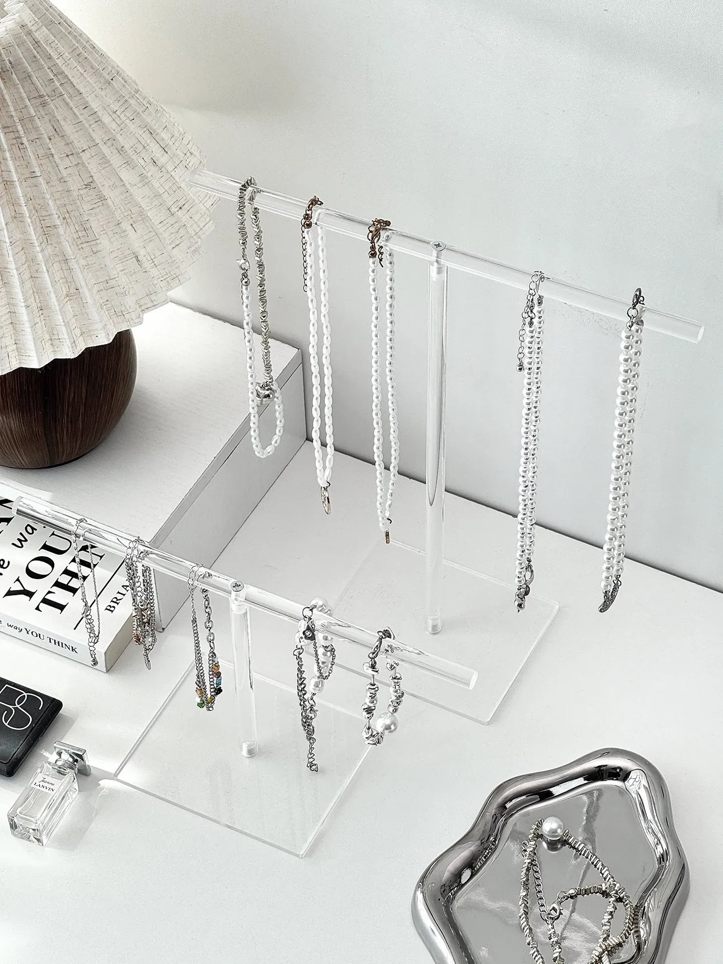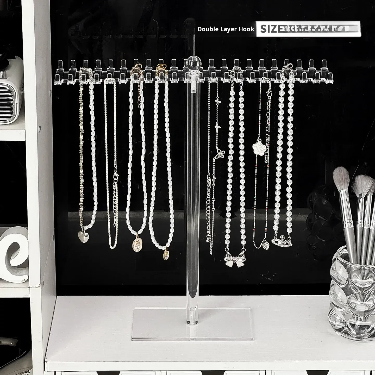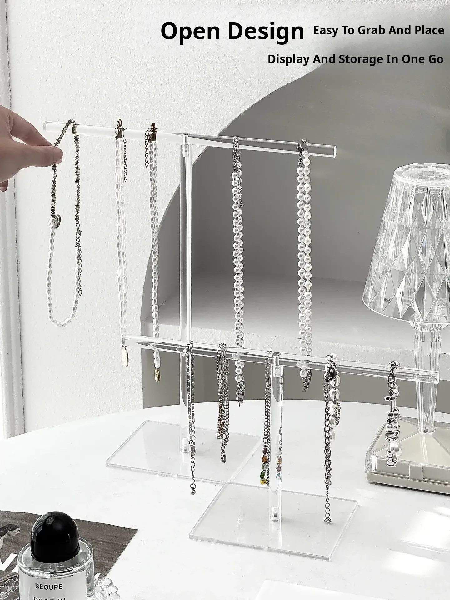 Acrylic Necklace Display Stand - Elegant Jewelry Organizer Box with Hooks for Bracelets, Pendants, and Decorative Beads - Perfect for Desktop Storage and Stylish Showcase