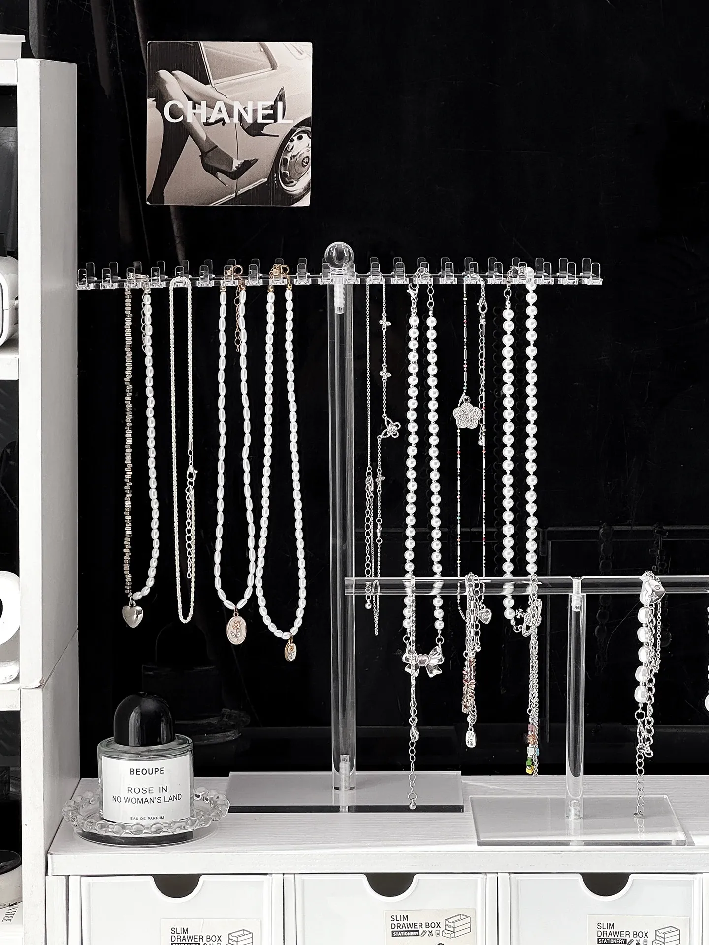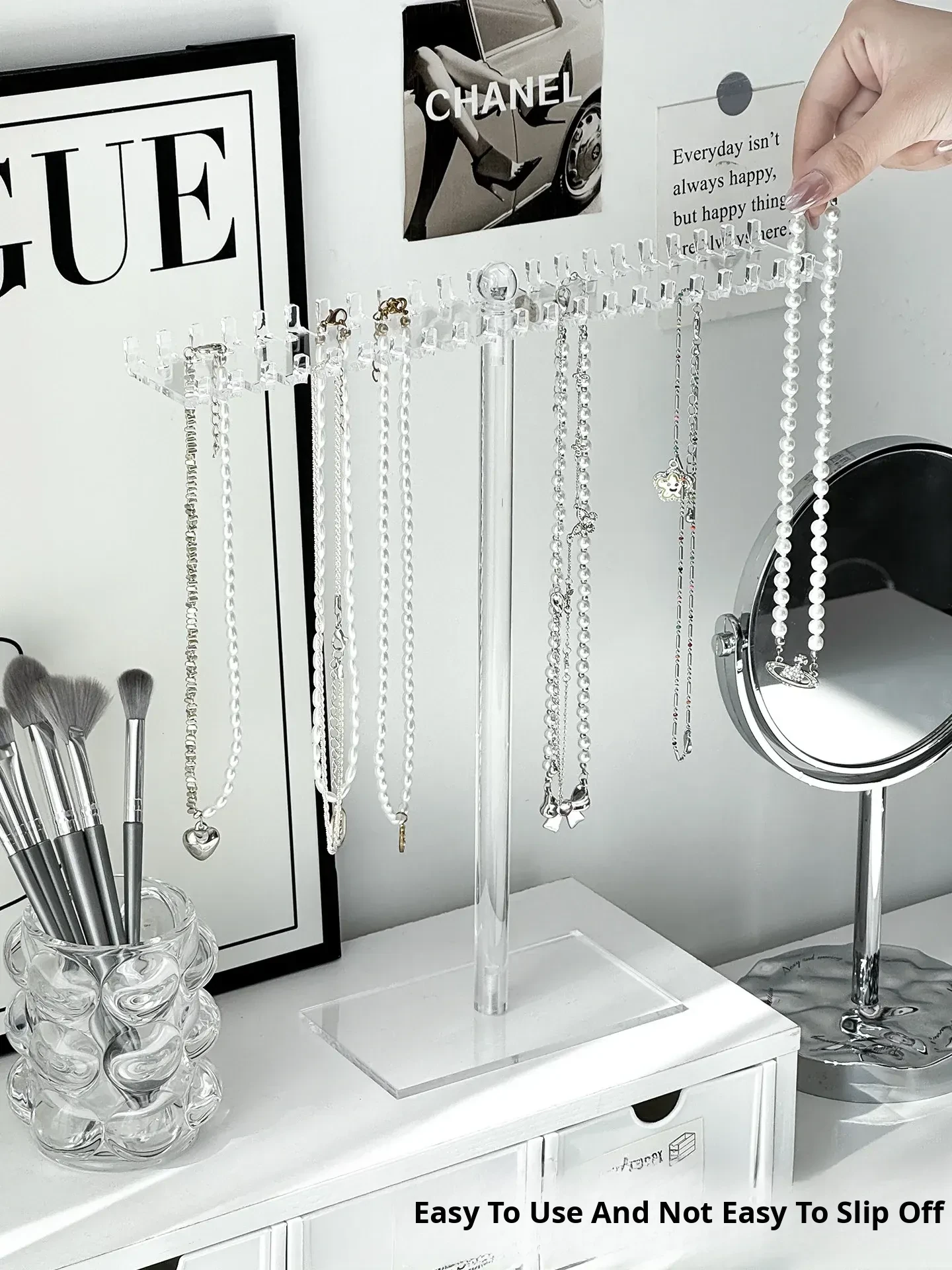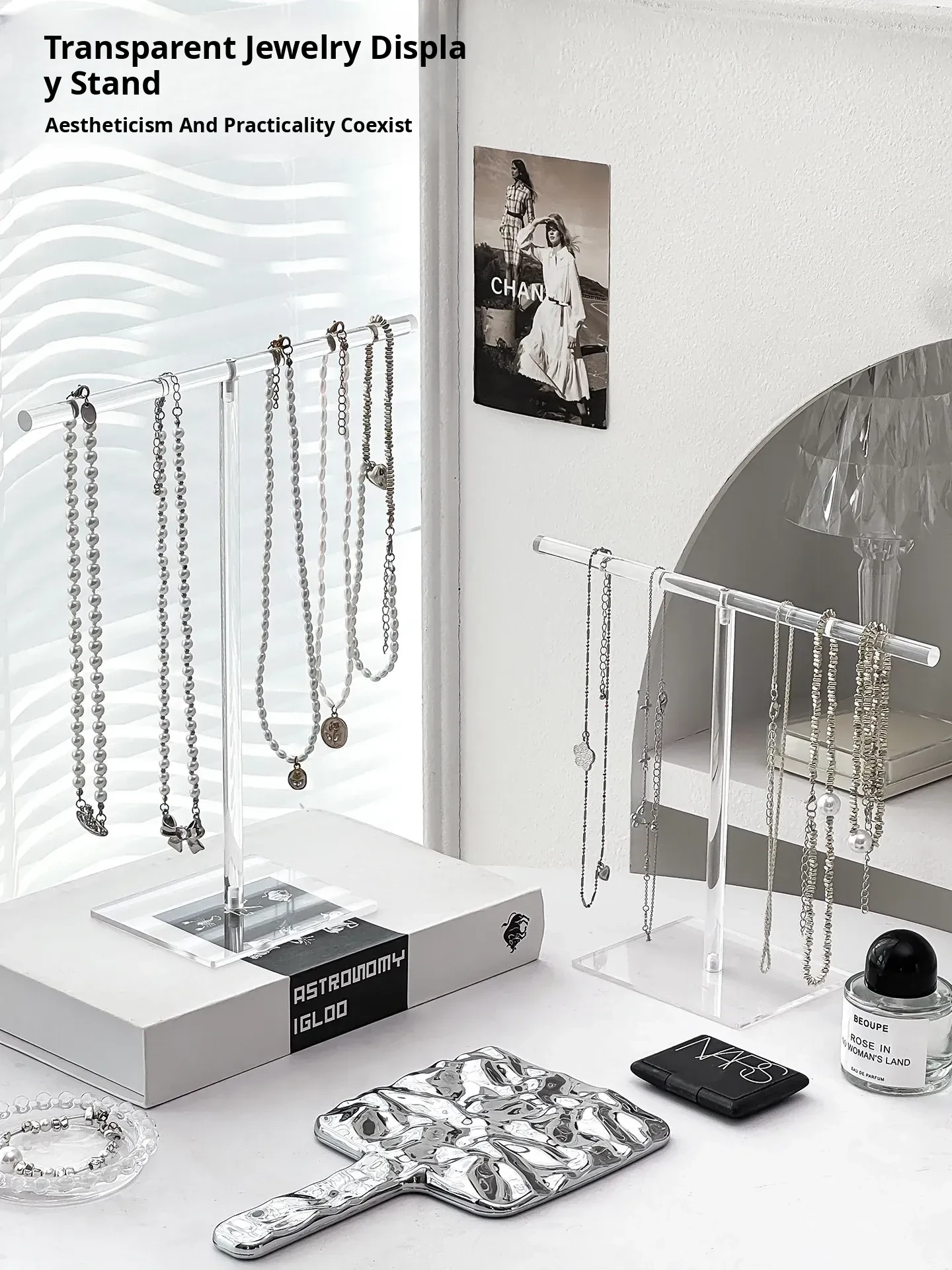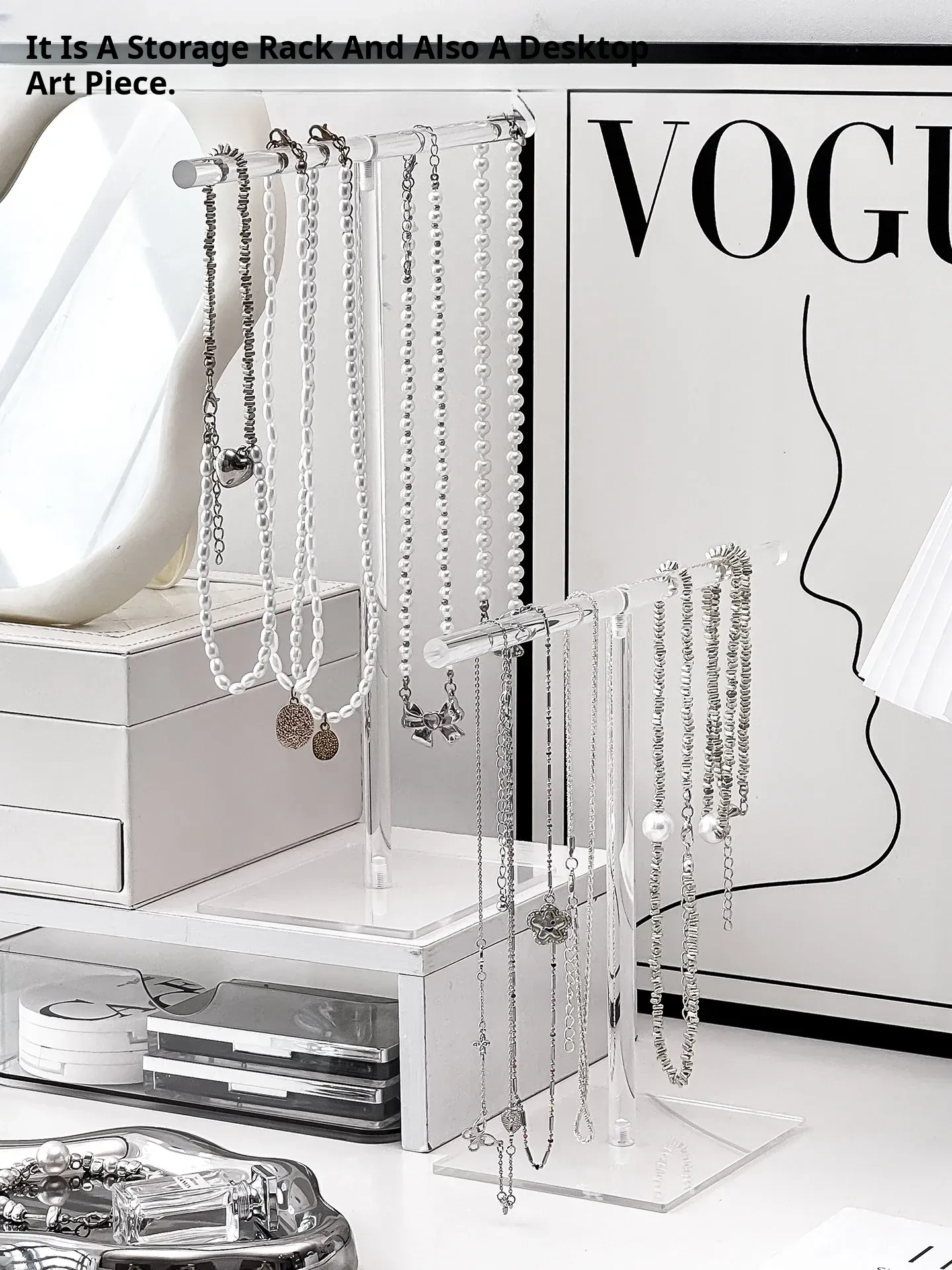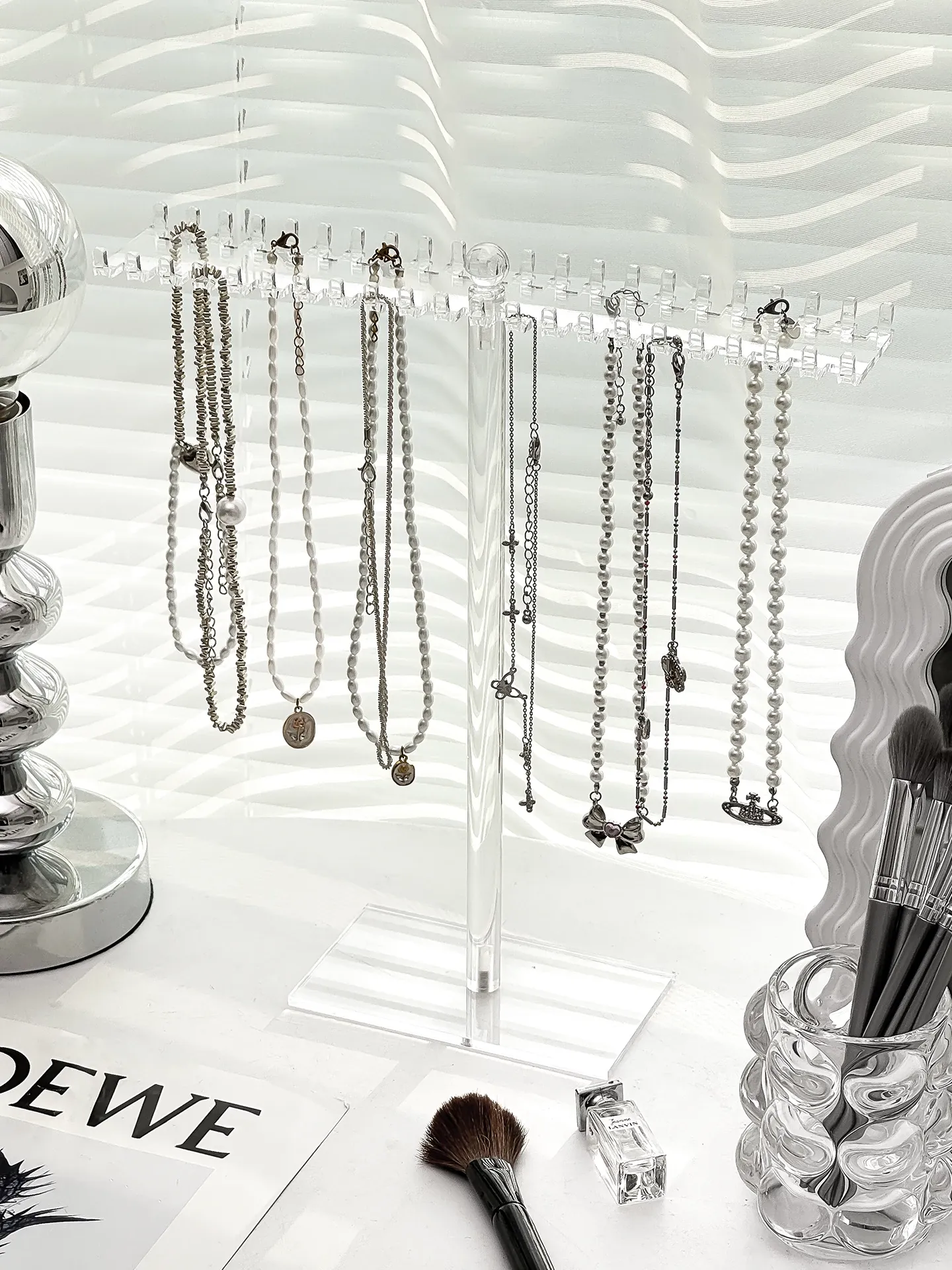 Acrylic Necklace Display Stand - Elegant Jewelry Organizer Box with Hooks for Bracelets, Pendants, and Decorative Beads - Perfect for Desktop Storage and Stylish Showcase