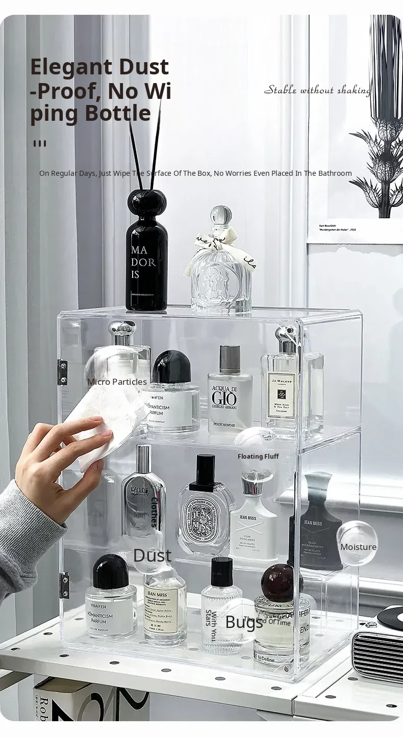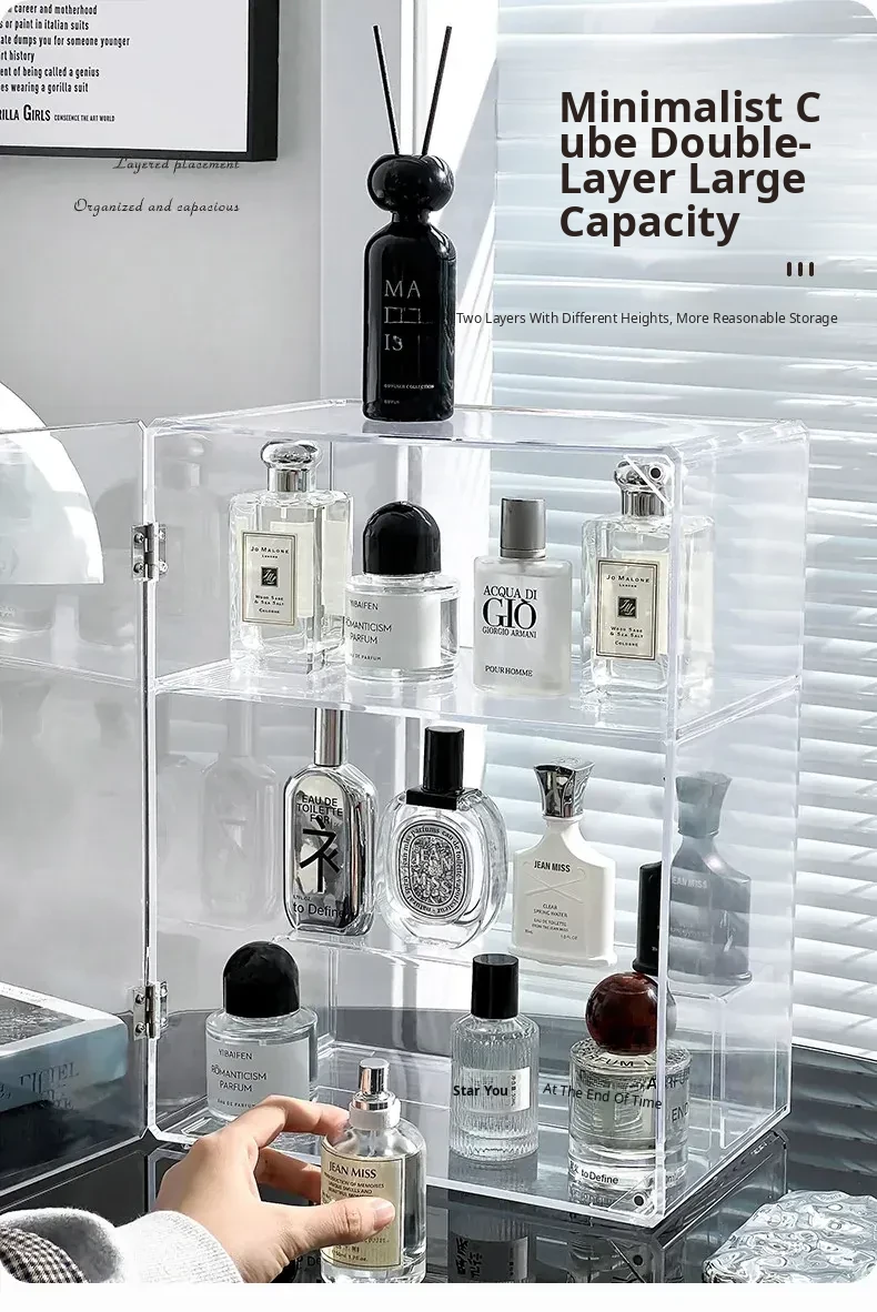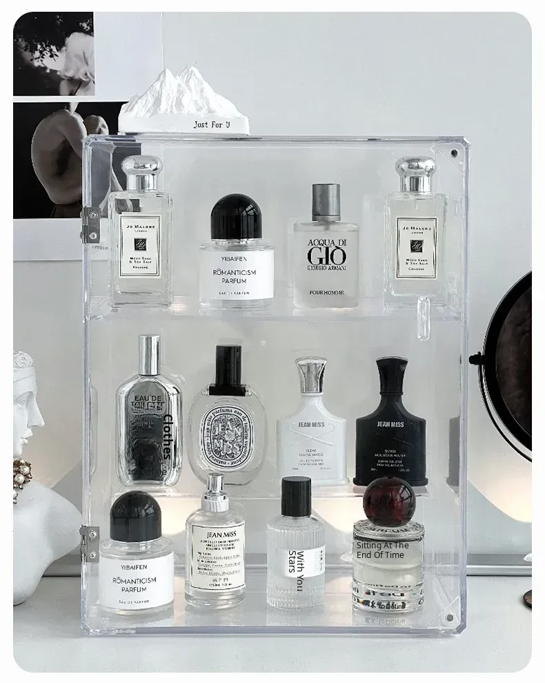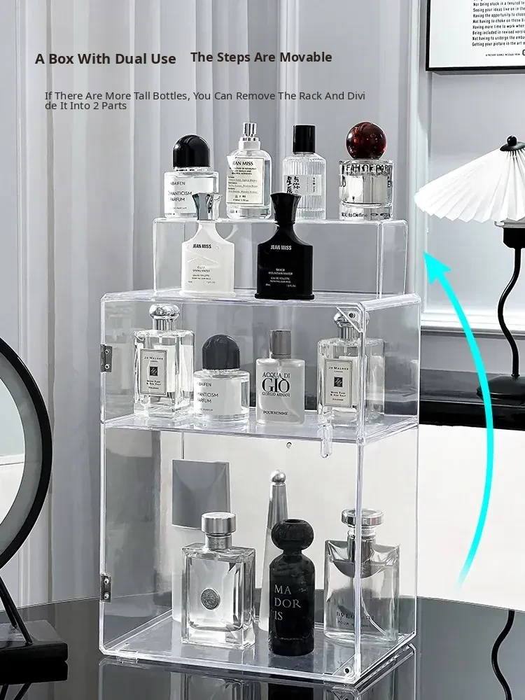 Acrylic Perfume Organizer - Large Transparent Makeup Storage Display Case for Vanity, Dustproof Cosmetic Collection Box, Perfect for Organizing and Showcasing Your Beauty Essentials