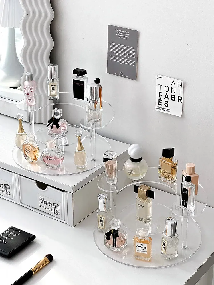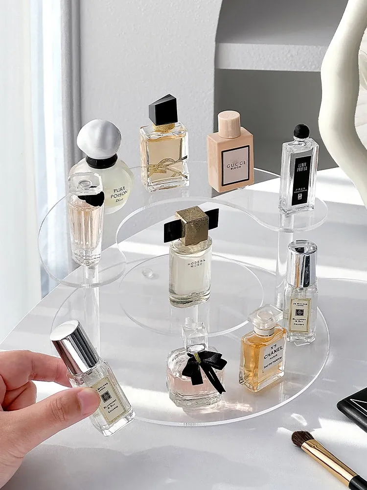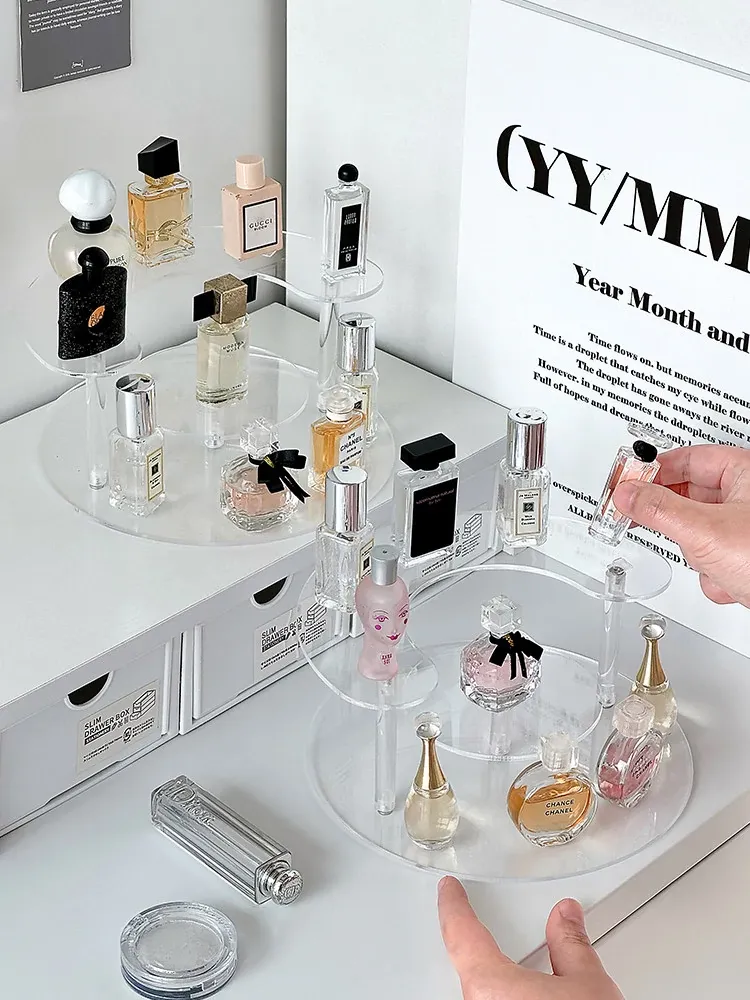 Acrylic Perfume Organizer Rack - Elegant Multi-Layer Makeup Display Stand for Samples and Lipsticks, Perfect for Your Vanity!