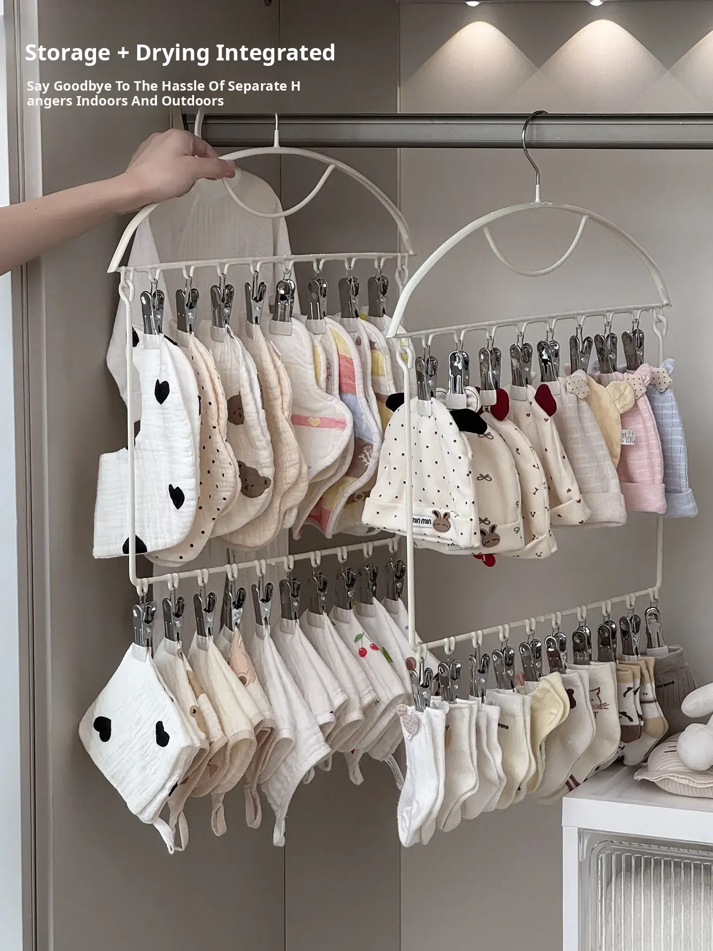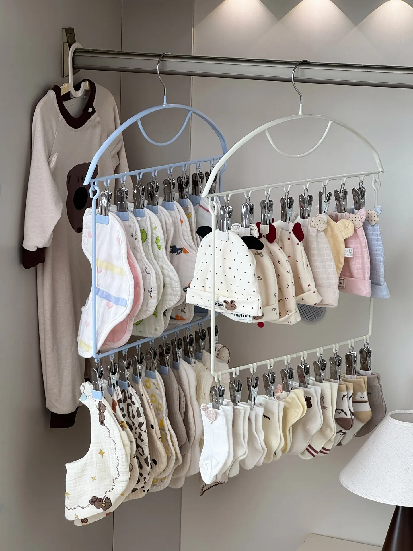 Baby Clothes Hangers with Multiple Clips - Windproof Drying Rack for Newborns, Perfect Storage Solution for Baby Socks and Bibs in the Nursery!