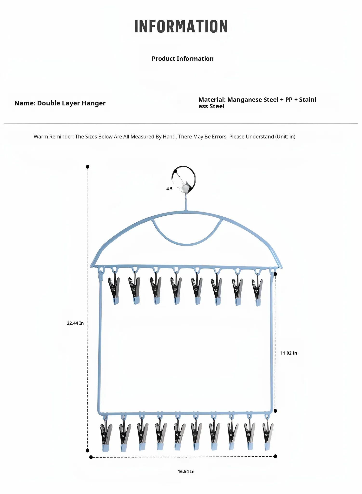 1 Pack [2 Layers/18 Clips in Total] Light Blue Clothes Hanger(Df–4694)