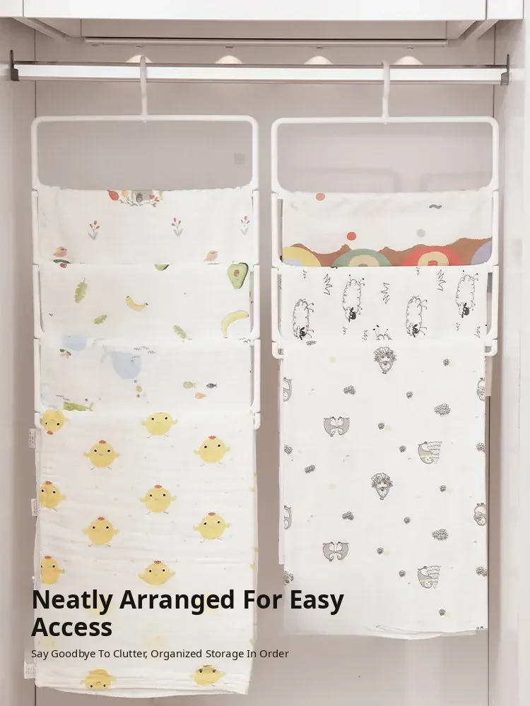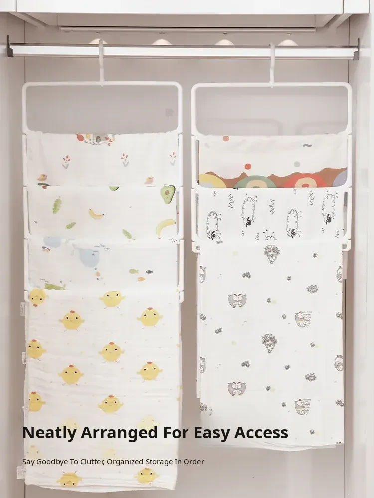 Baby Muslin Blanket Storage Organizer - Space-Saving Rack for Baby Towels, Bath Towels, and Children's Blankets - Perfect for Closet and Drying!