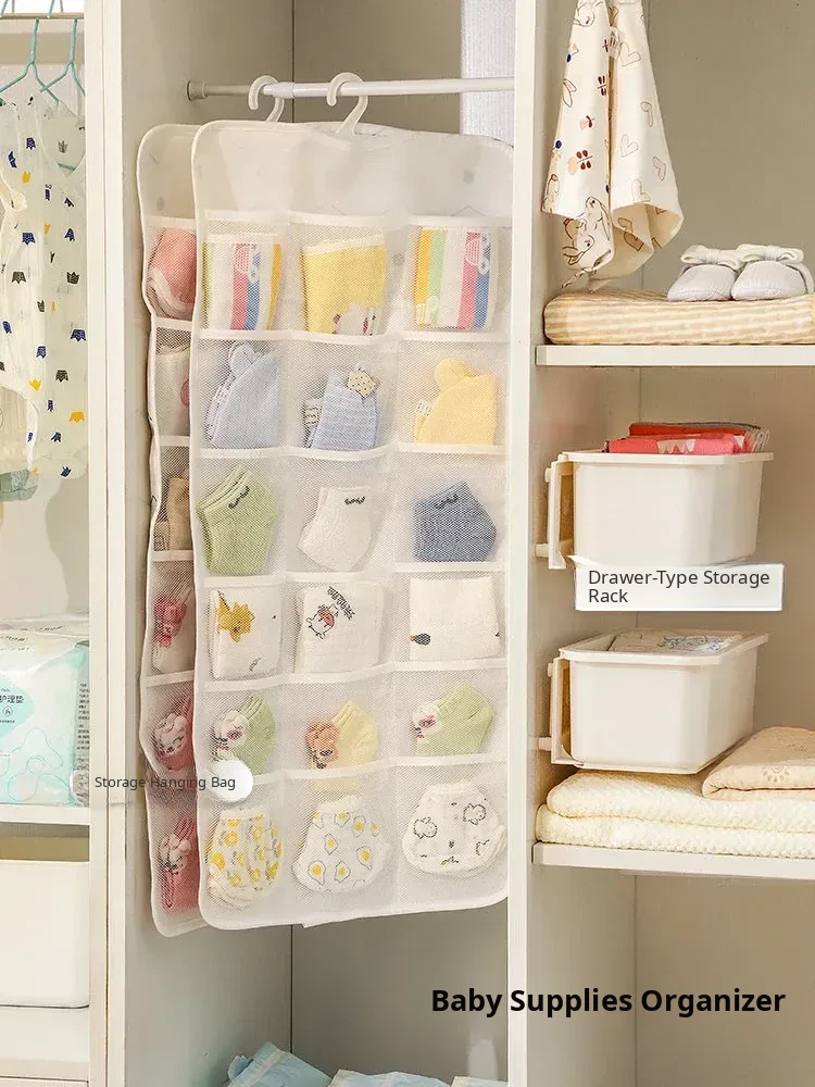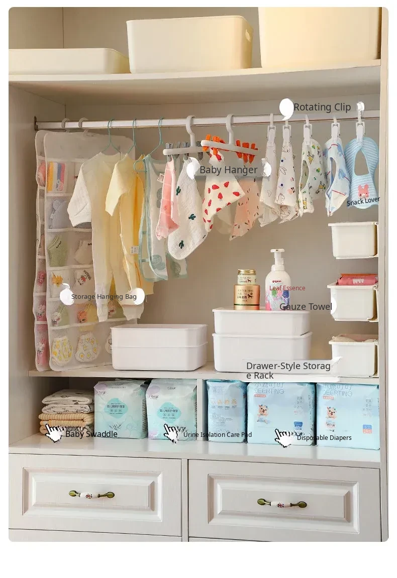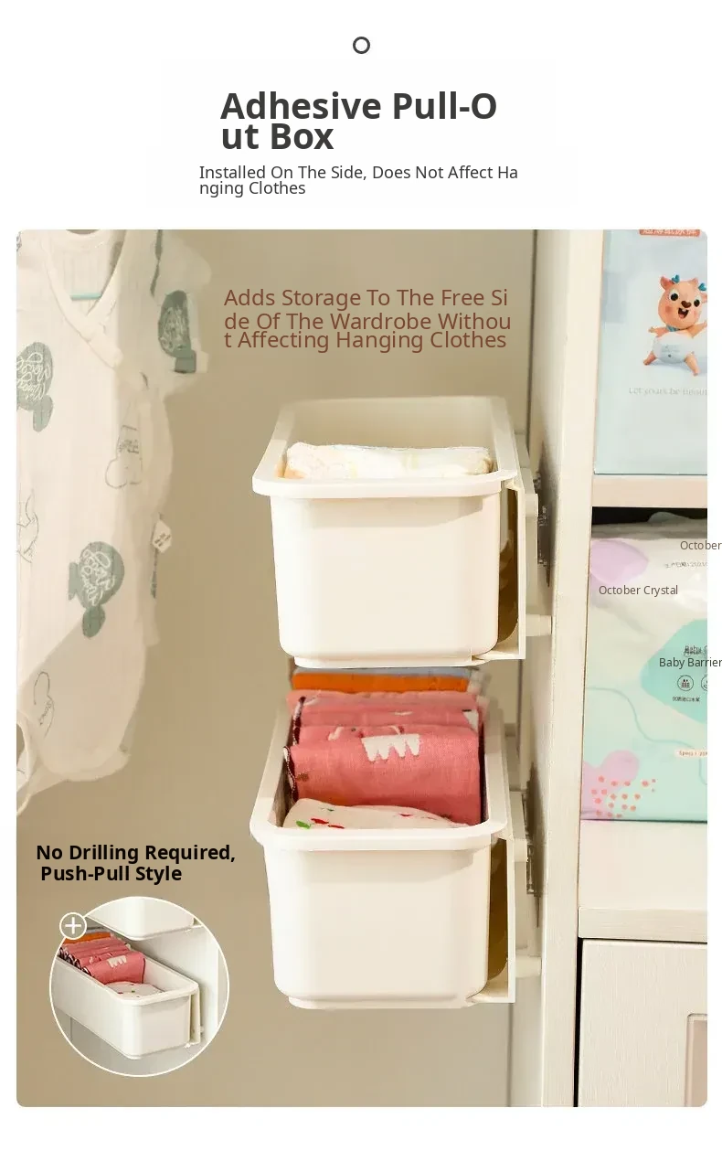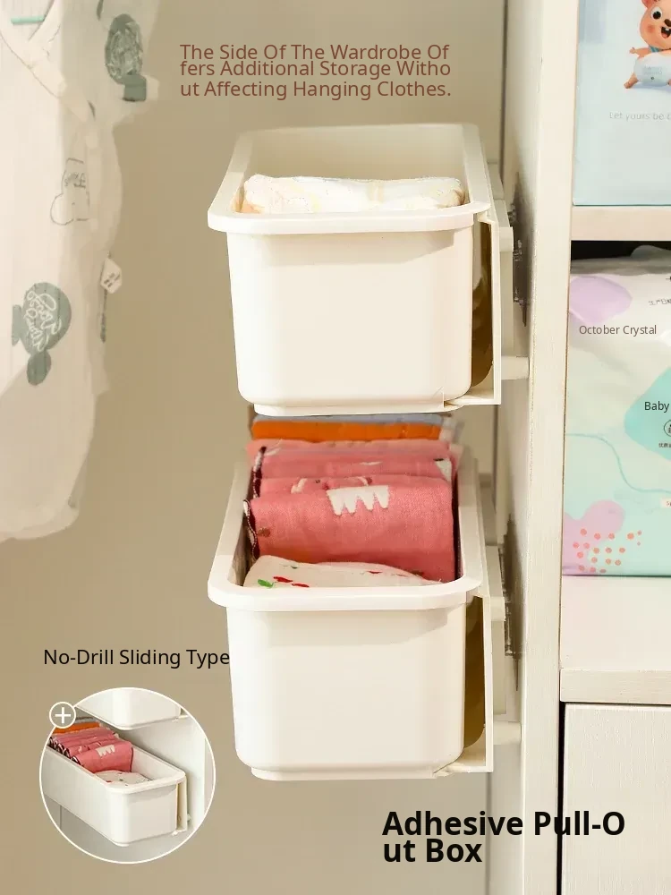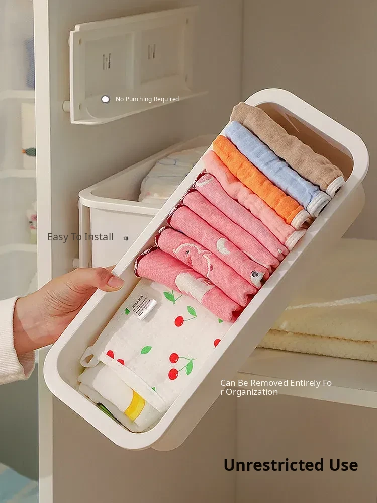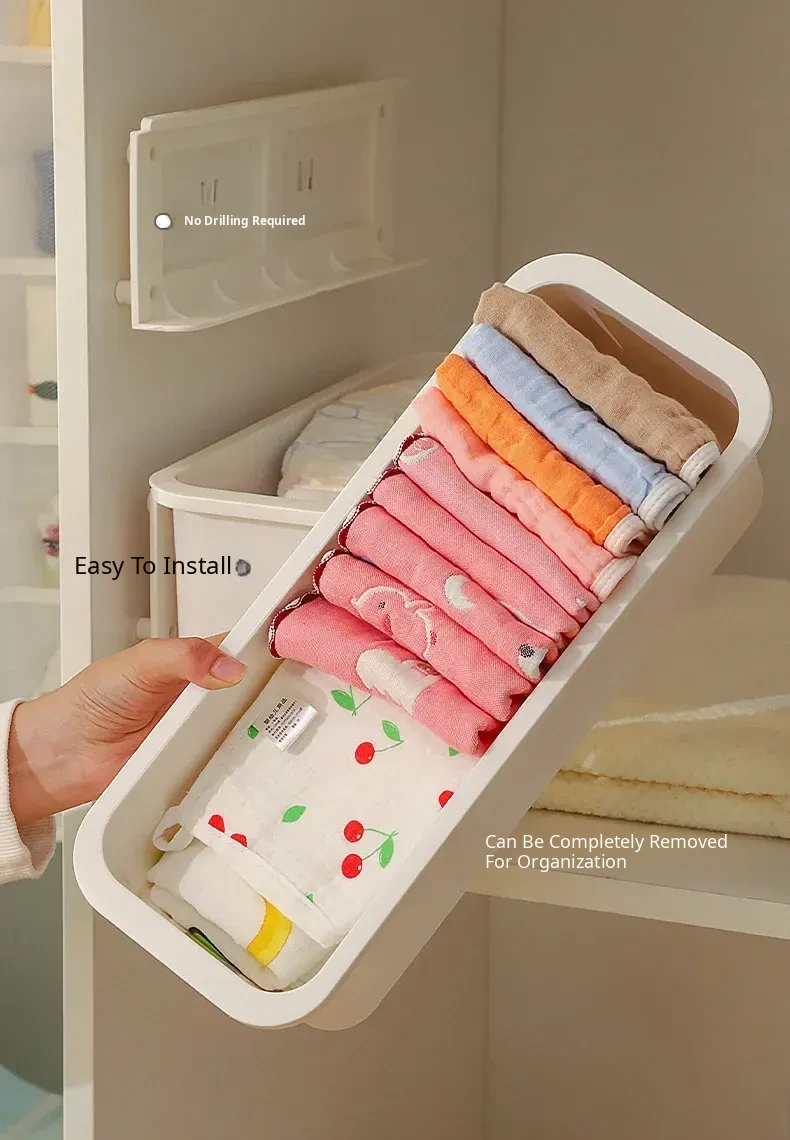 Baby Wardrobe Pull-Out Storage Box - Wall-Mounted Organizer for Kids' Bibs, Socks, and More - No Drilling Required, Perfect for Efficient Baby Room Organization!