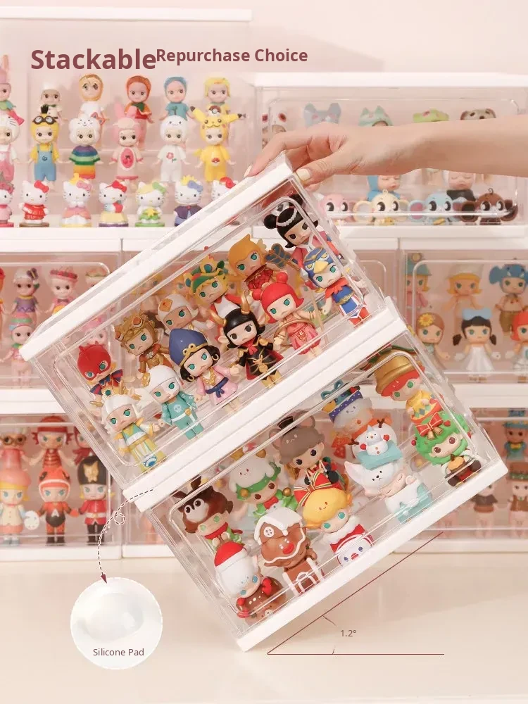 Bubble Mart Blind Box Storage Box - Acrylic Transparent Dustproof Stacking Display Stand for Collectible Figures and Toys