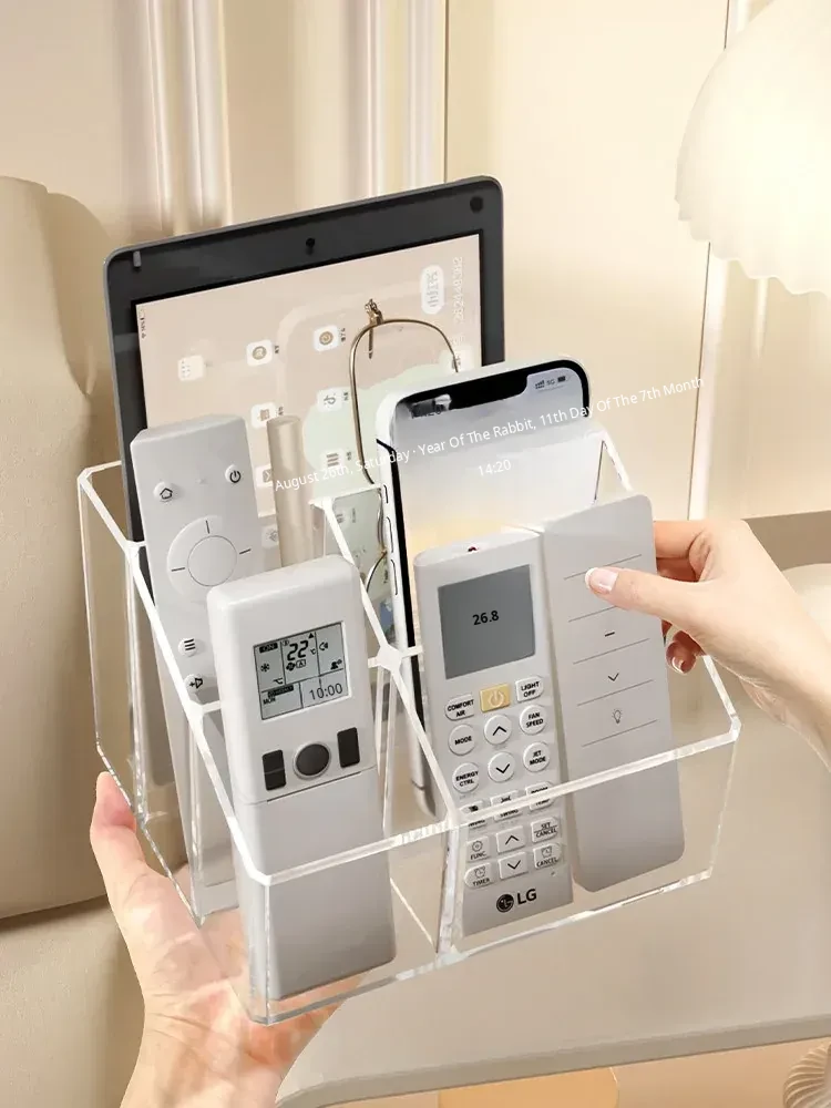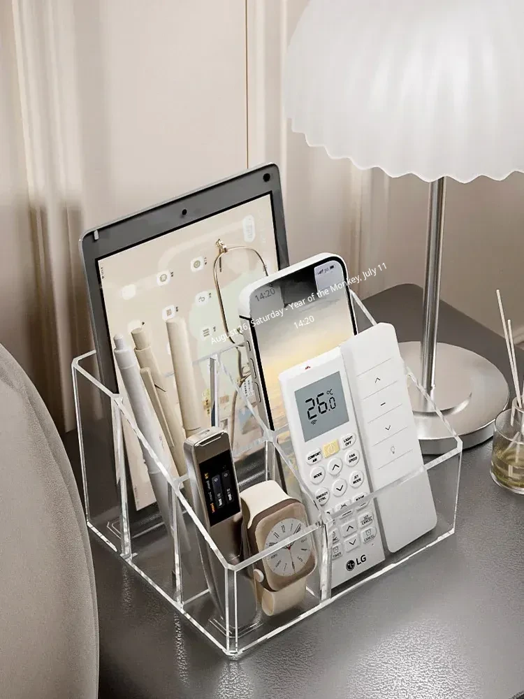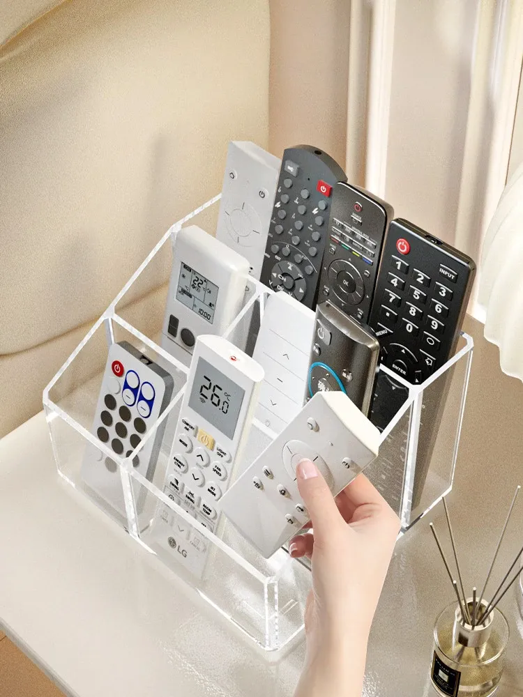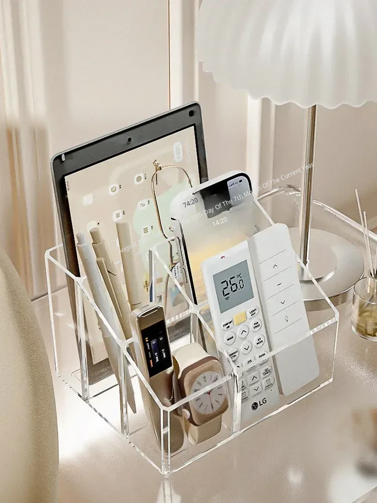 Creative Acrylic TV Remote Control Storage Box with Dividers - Multifunctional Transparent Organizer for Living Room Coffee Table