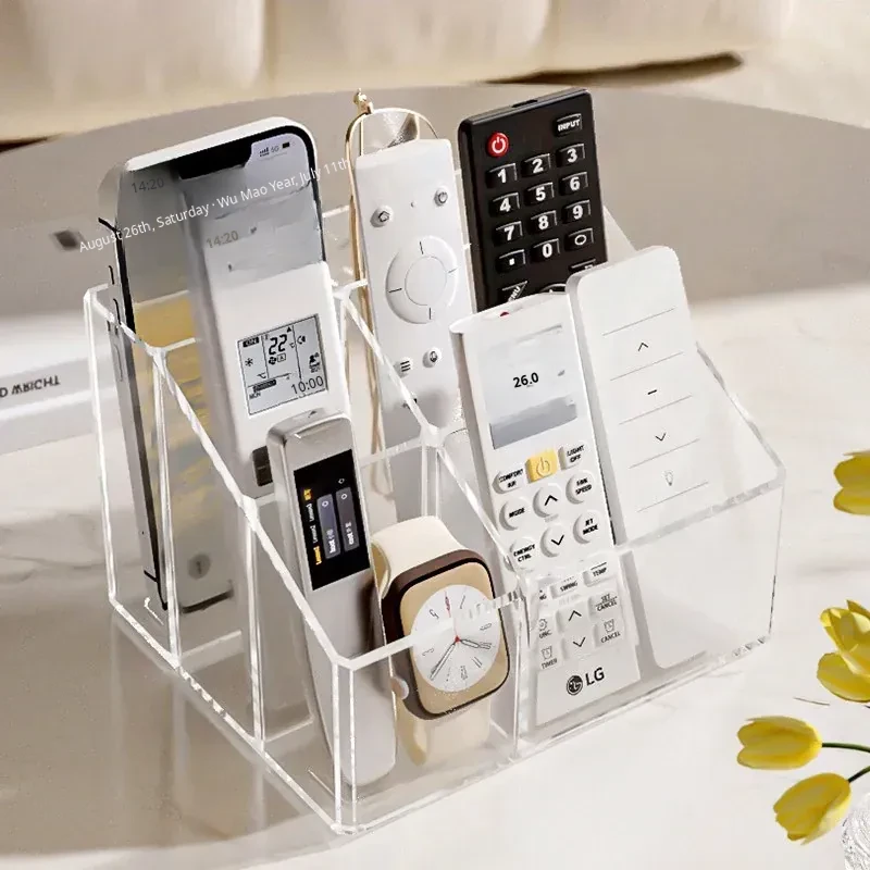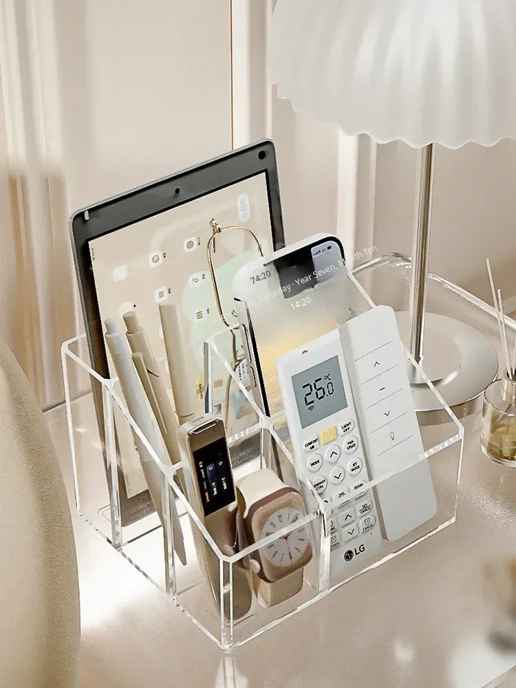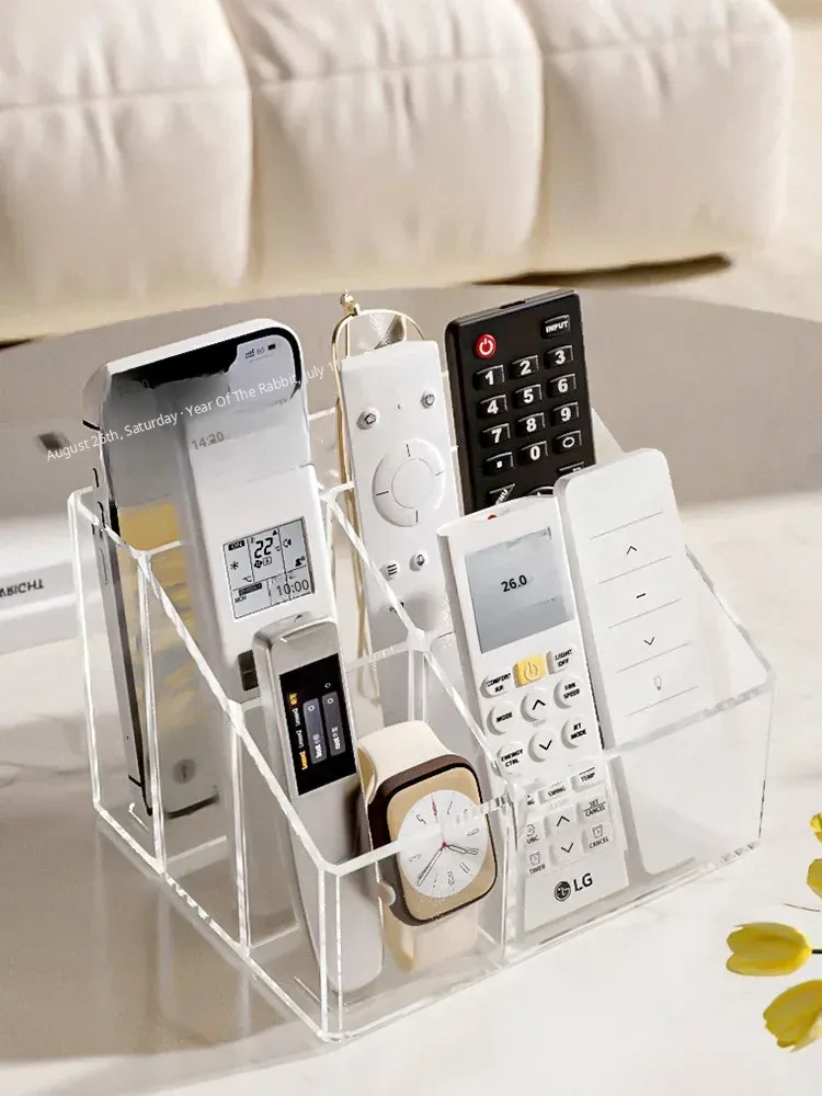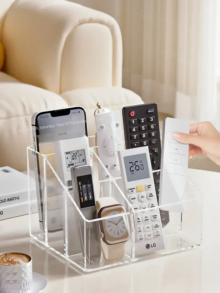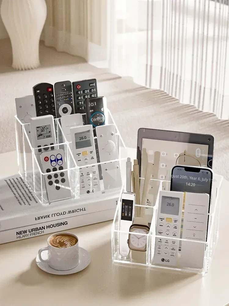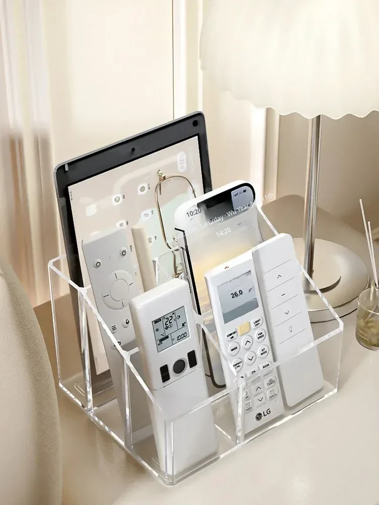 Creative Remote Control Storage Box with Dividers for Living Room – Multi-functional TV & Air Conditioner Remote Organizer, Perfect for Nightstand or Any Space