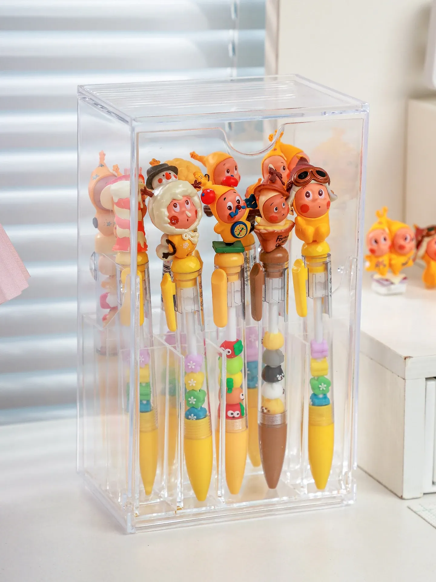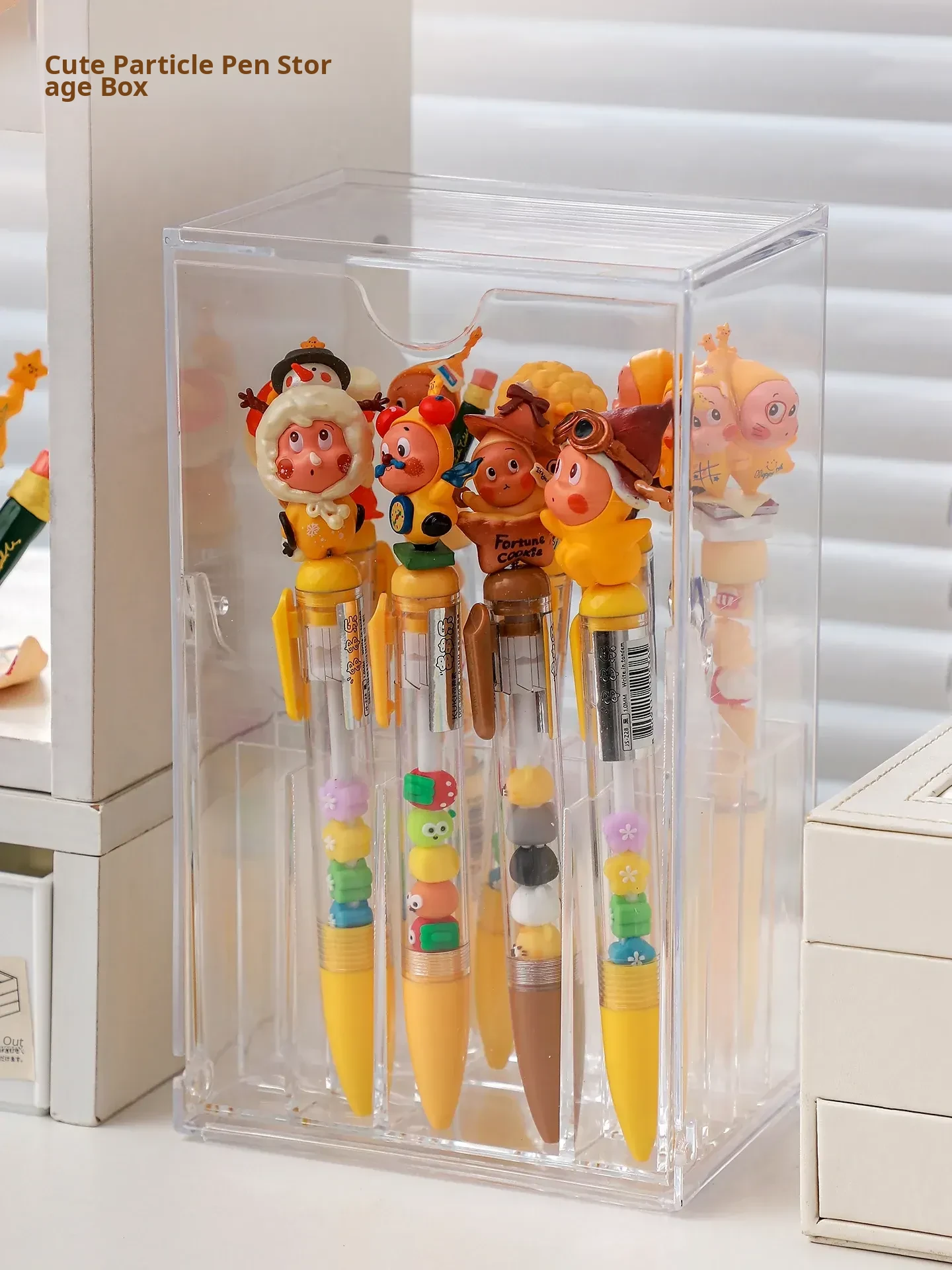 Cute Cartoon Starry Pencil Case - Large Capacity Transparent Storage for Students, Creative and Adorable Pen Holder Display Stand