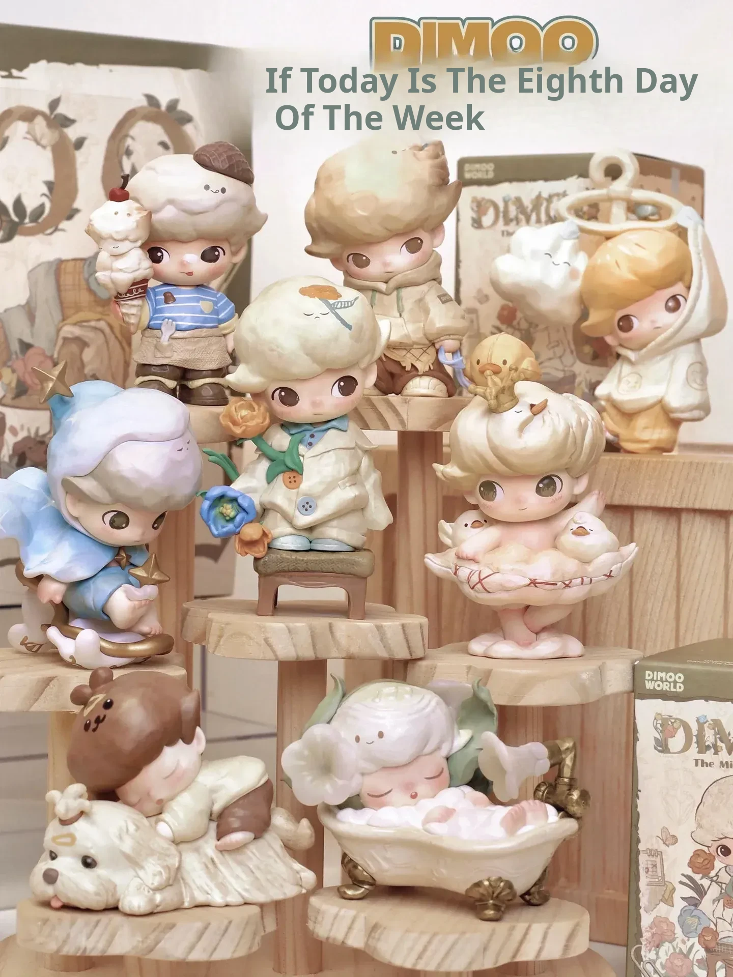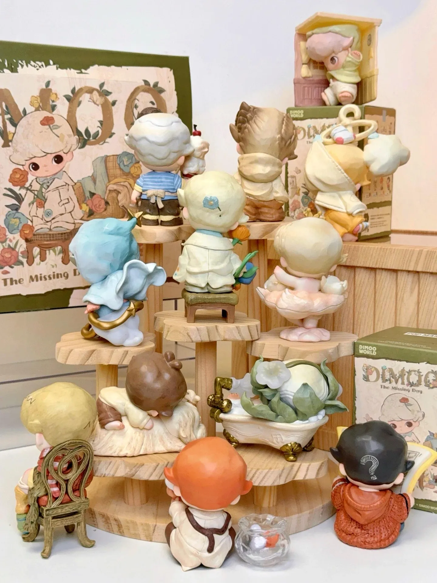 DIMOO Collectible Toy Display Stand - Wooden Tiered Storage Rack for Blind Box Figures, Perfect for Showcasing Your Trendy Figurines and Collectibles!