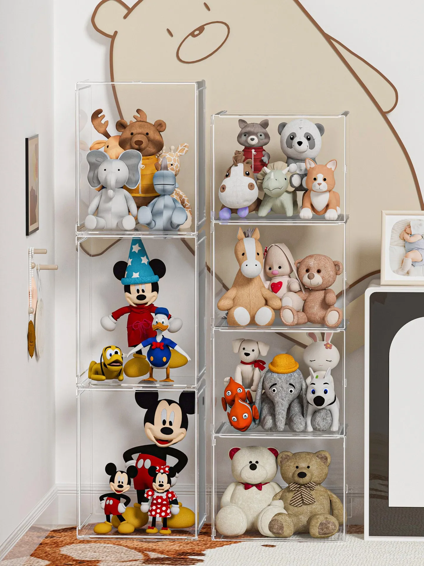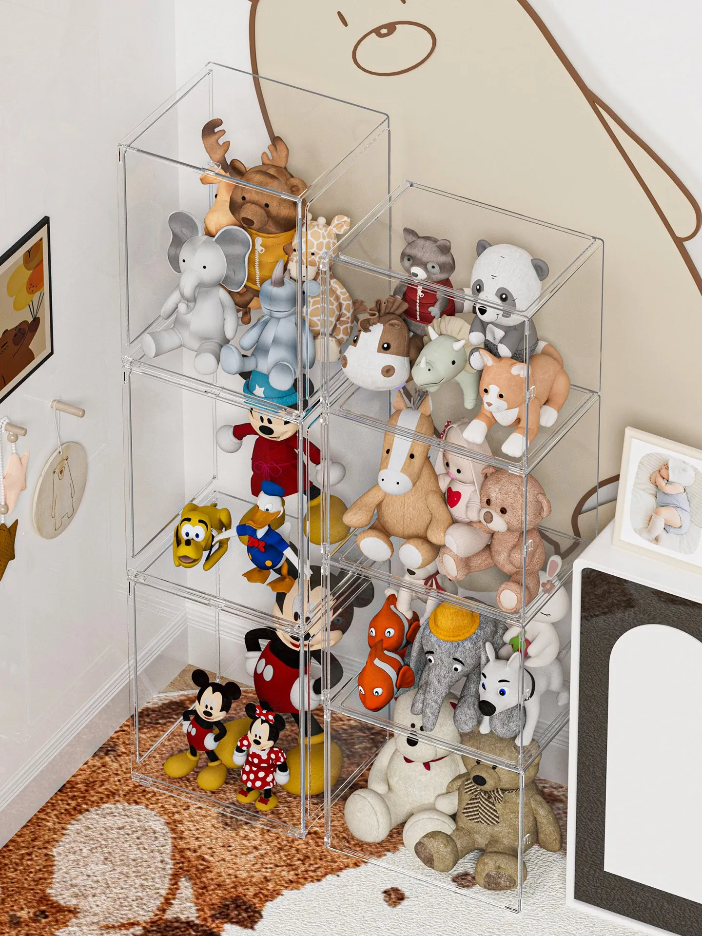 Disney Plush Toy Storage Box - Acrylic Display Stand for Lina Bell Dolls, Large Capacity Showcase for Stuffed Animals and Collectibles