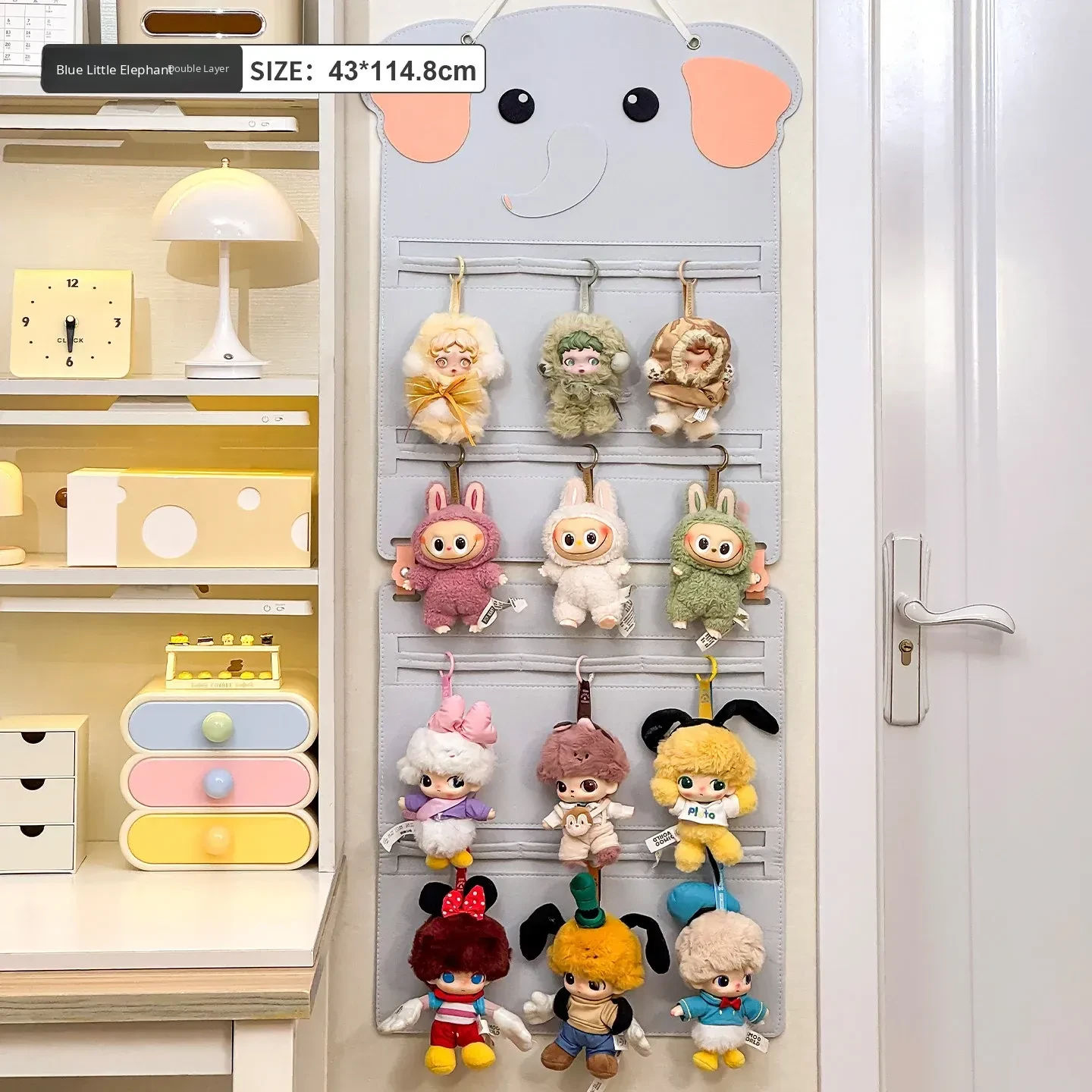 [Blue Elephant/2 Layers] (2 Hooks Included) Storage Hanging Bag