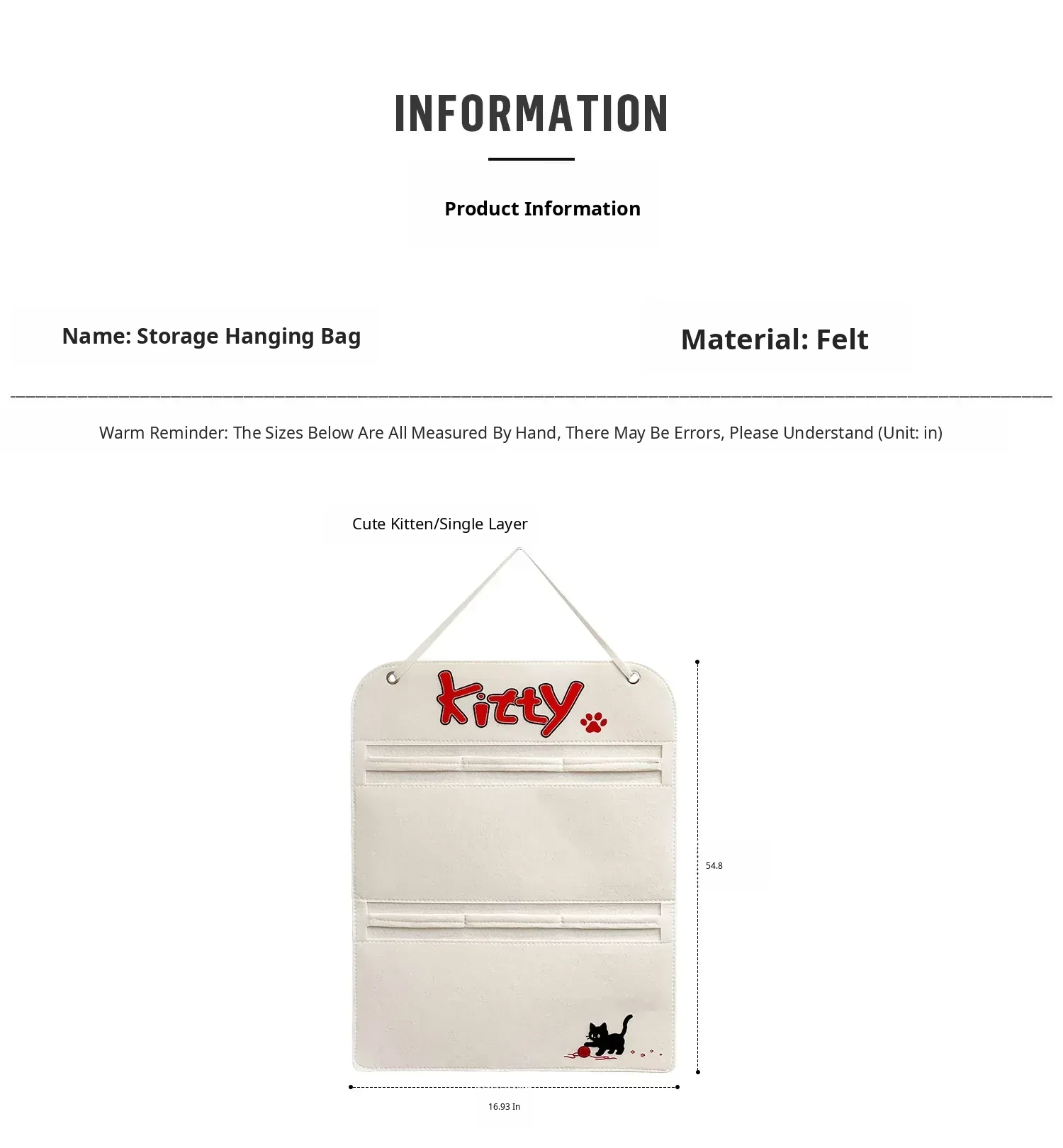 [Cute Cat/1 Layer] (Free 2 Hooks) Storage Hanging Bag