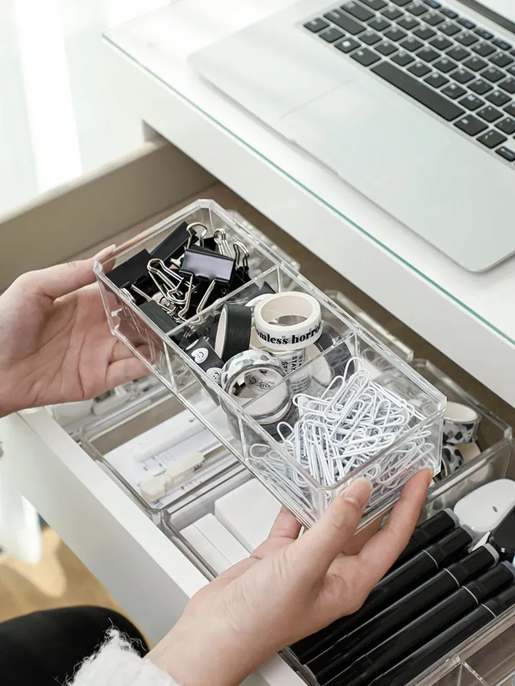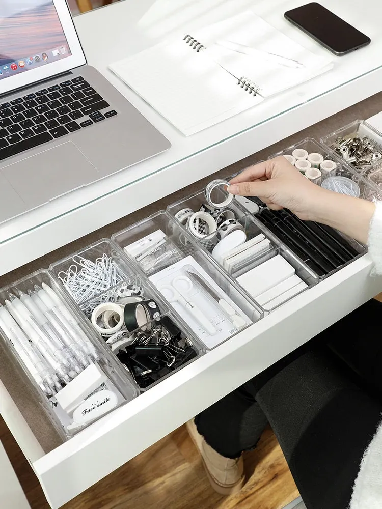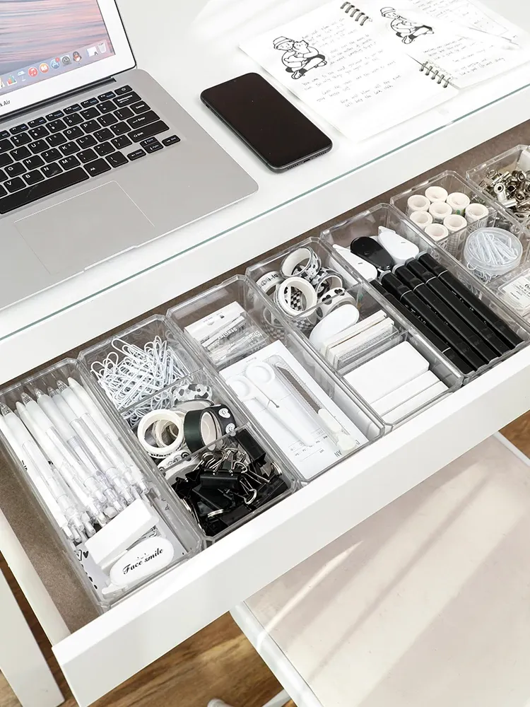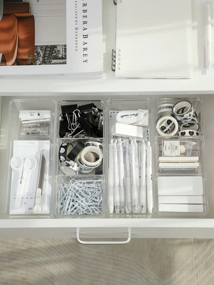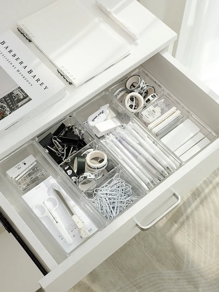 Drawer Organizer Stationery Storage Box with Built-in Dividers - Perfect for Students, Desks, and Office Clutter Management! Keep Your Workspace Neat and Tidy!