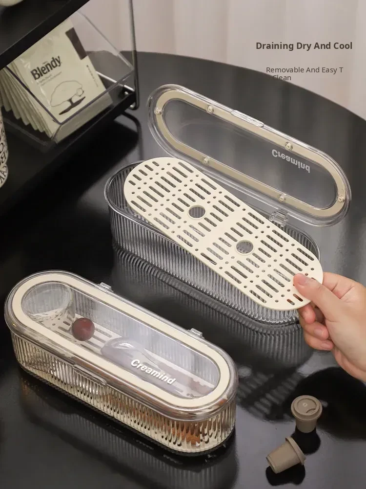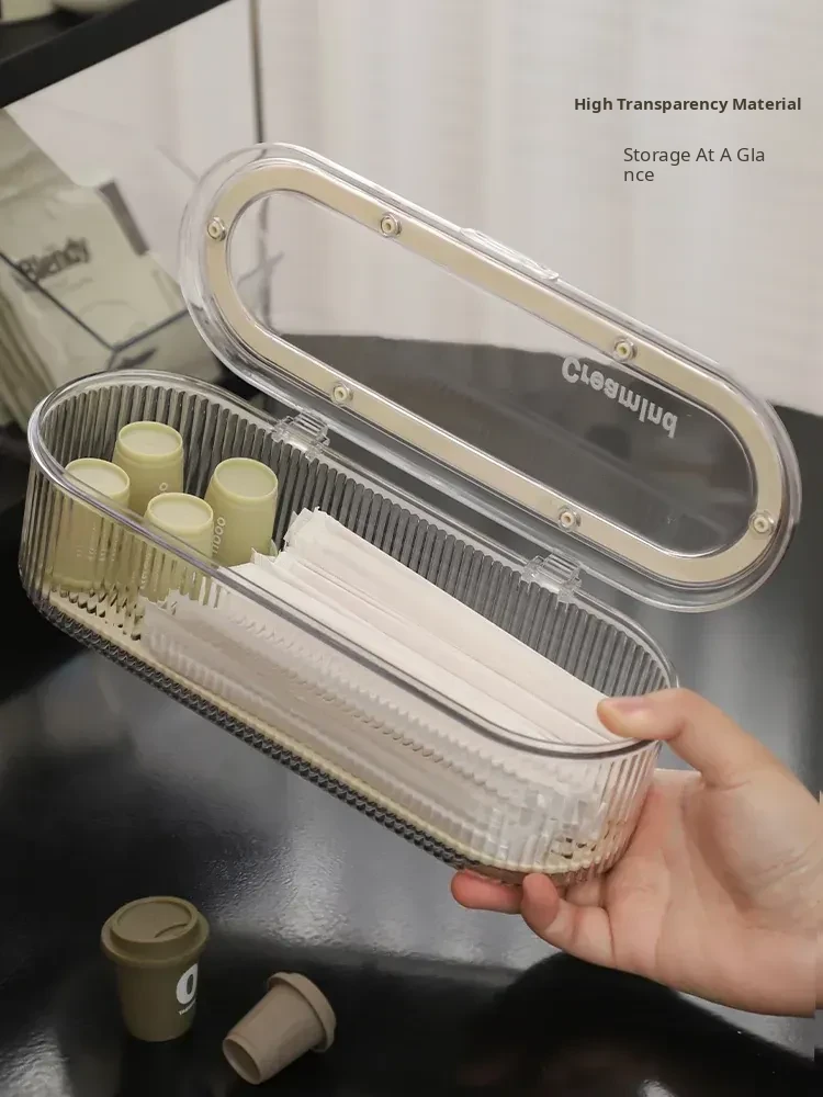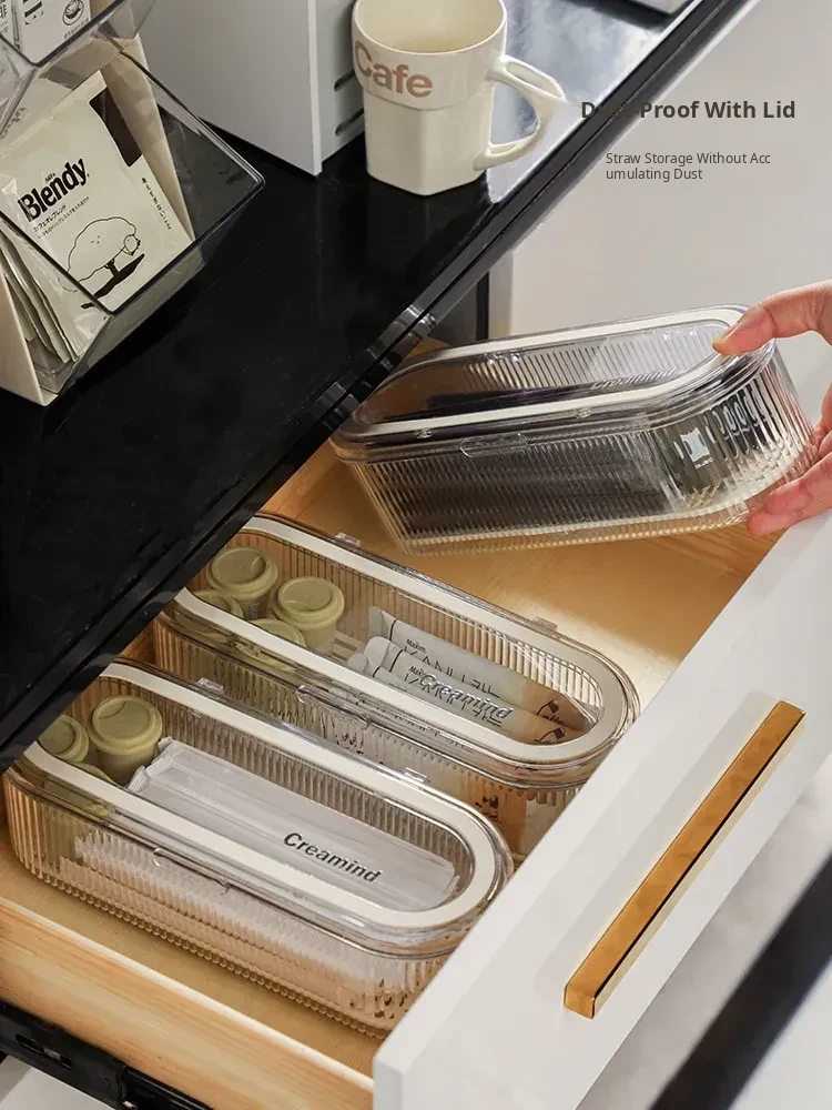 Dustproof Storage Box for Disposable Straws and Spoons - Ideal for Office Tea Rooms, Bars, and Coffee Stations - Keep Your Workspace Organized and Stylish!