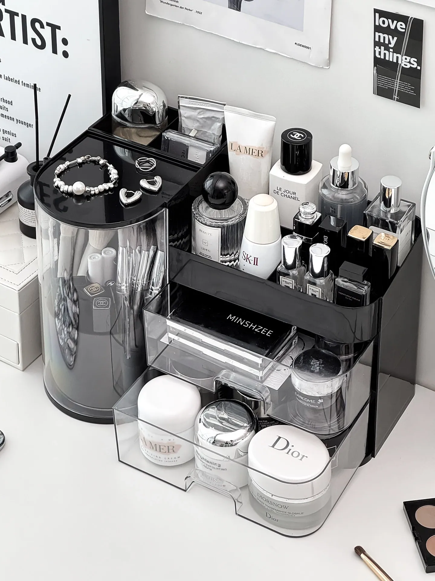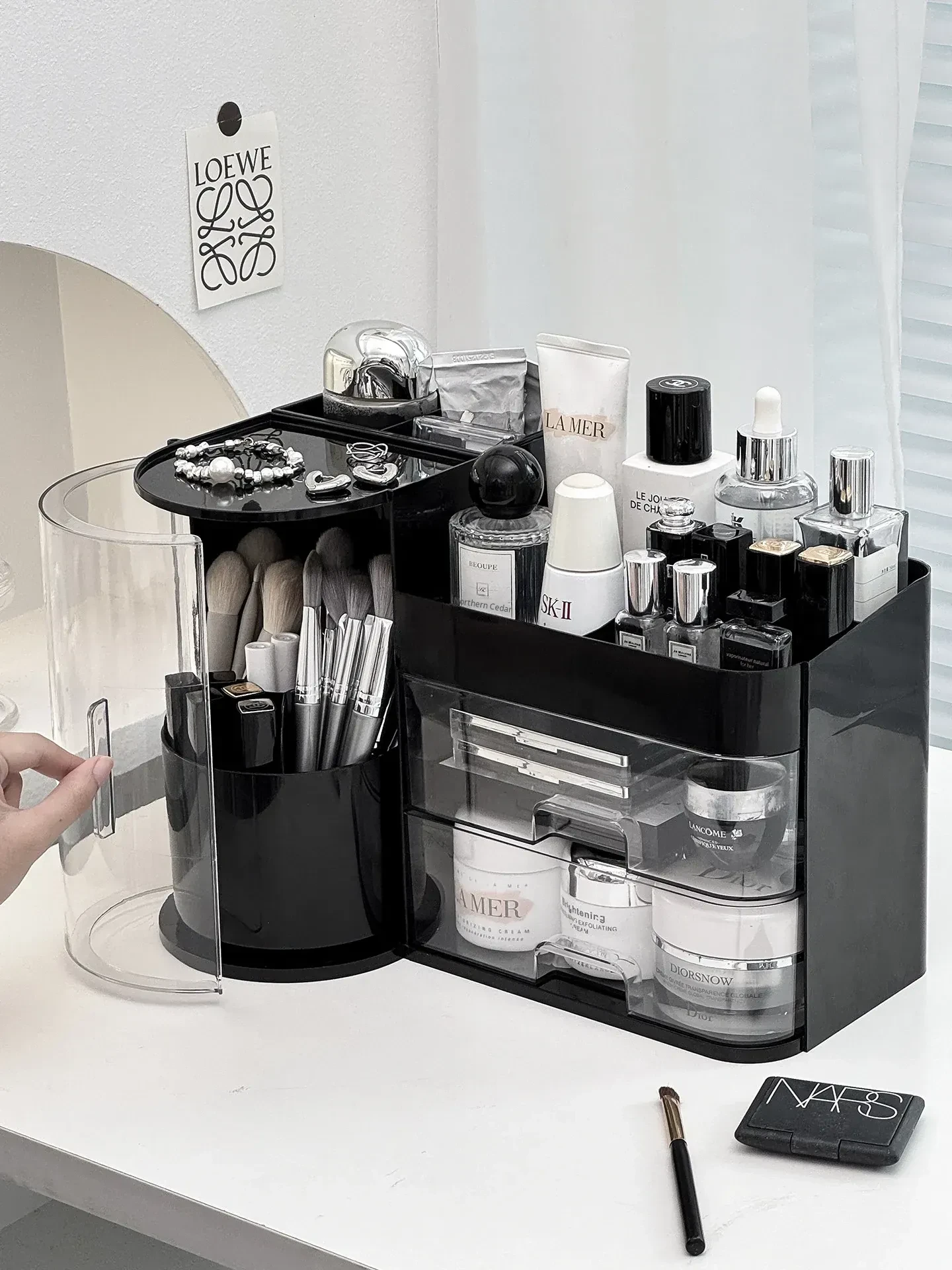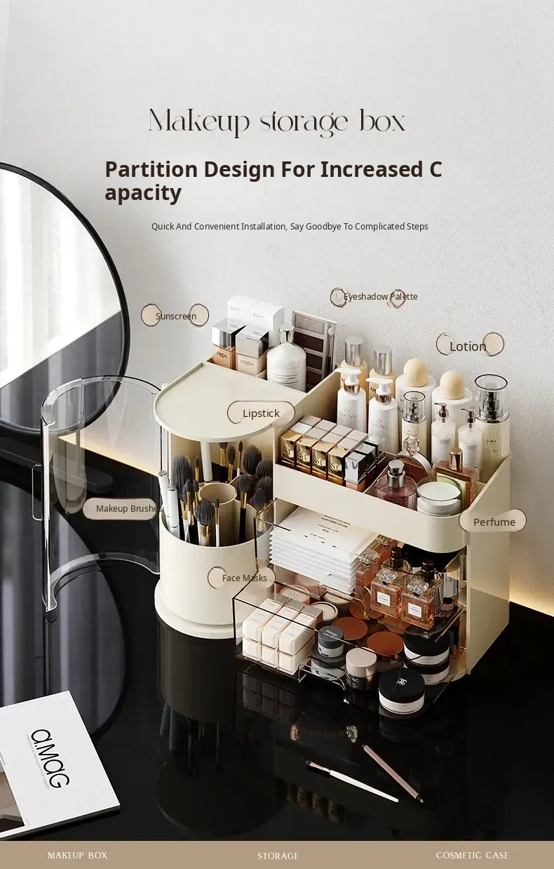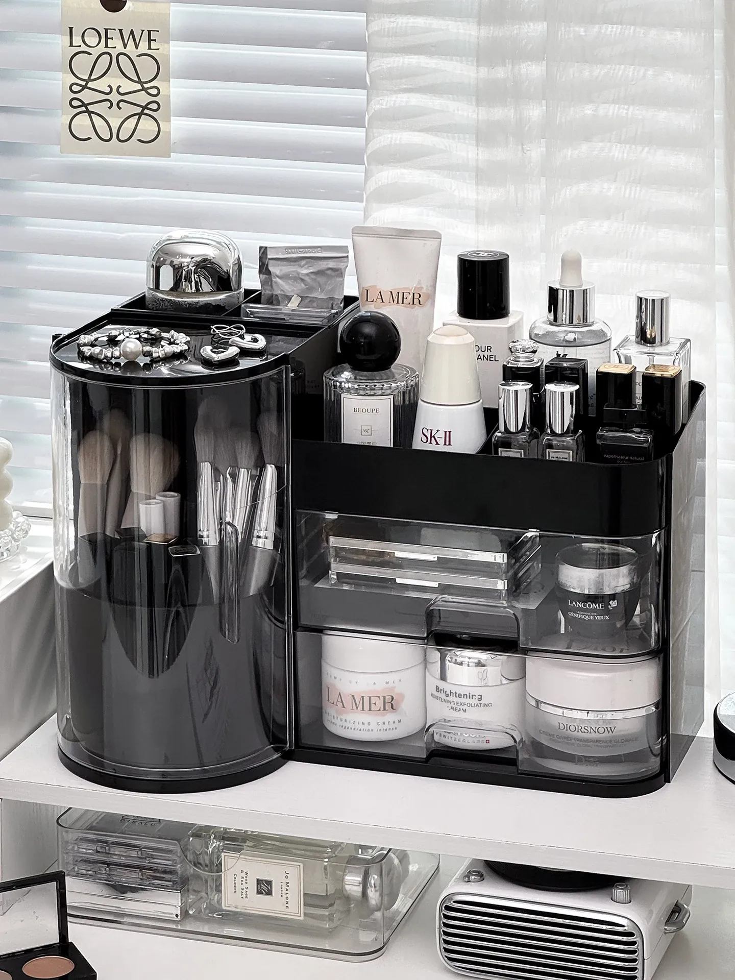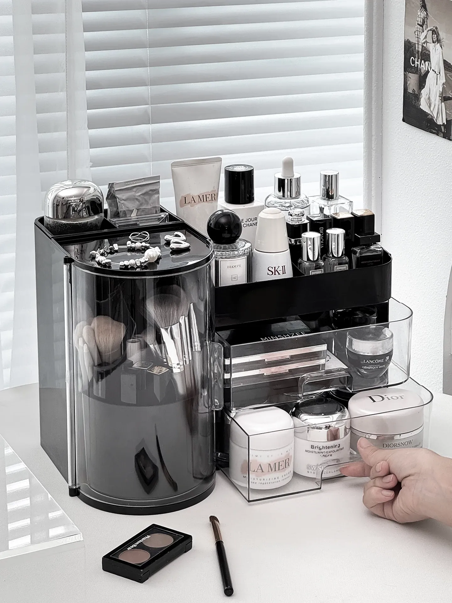 Elegant 360° Rotating Makeup Organizer - Multifunctional Cosmetic Brush Holder & Perfume/ Lipstick Storage Solution for Your Vanity
