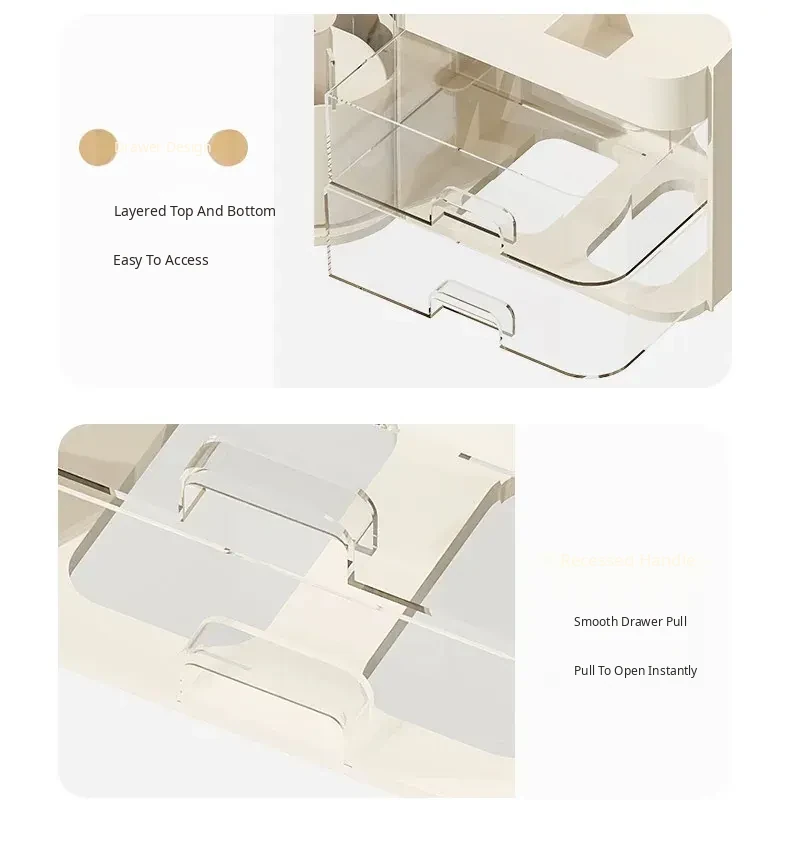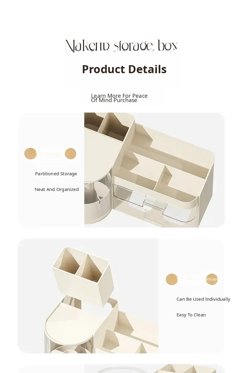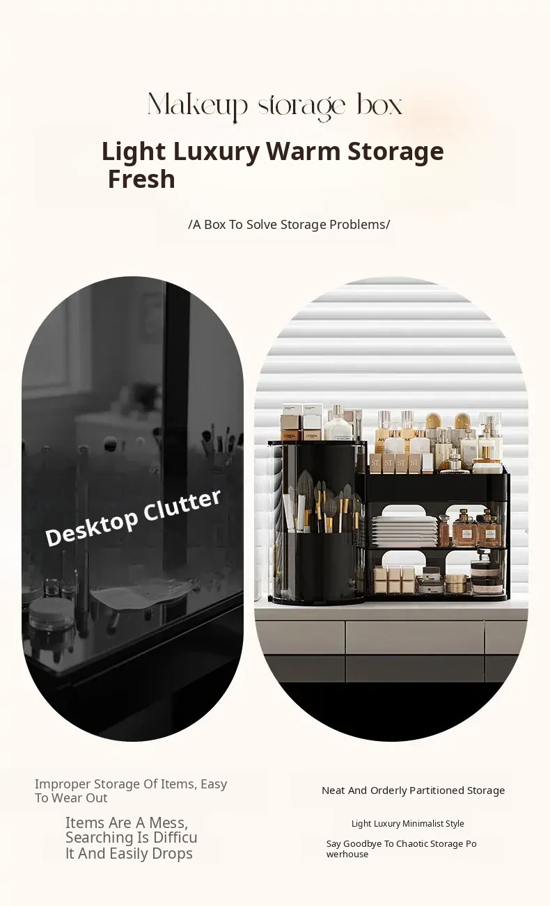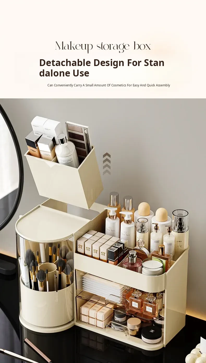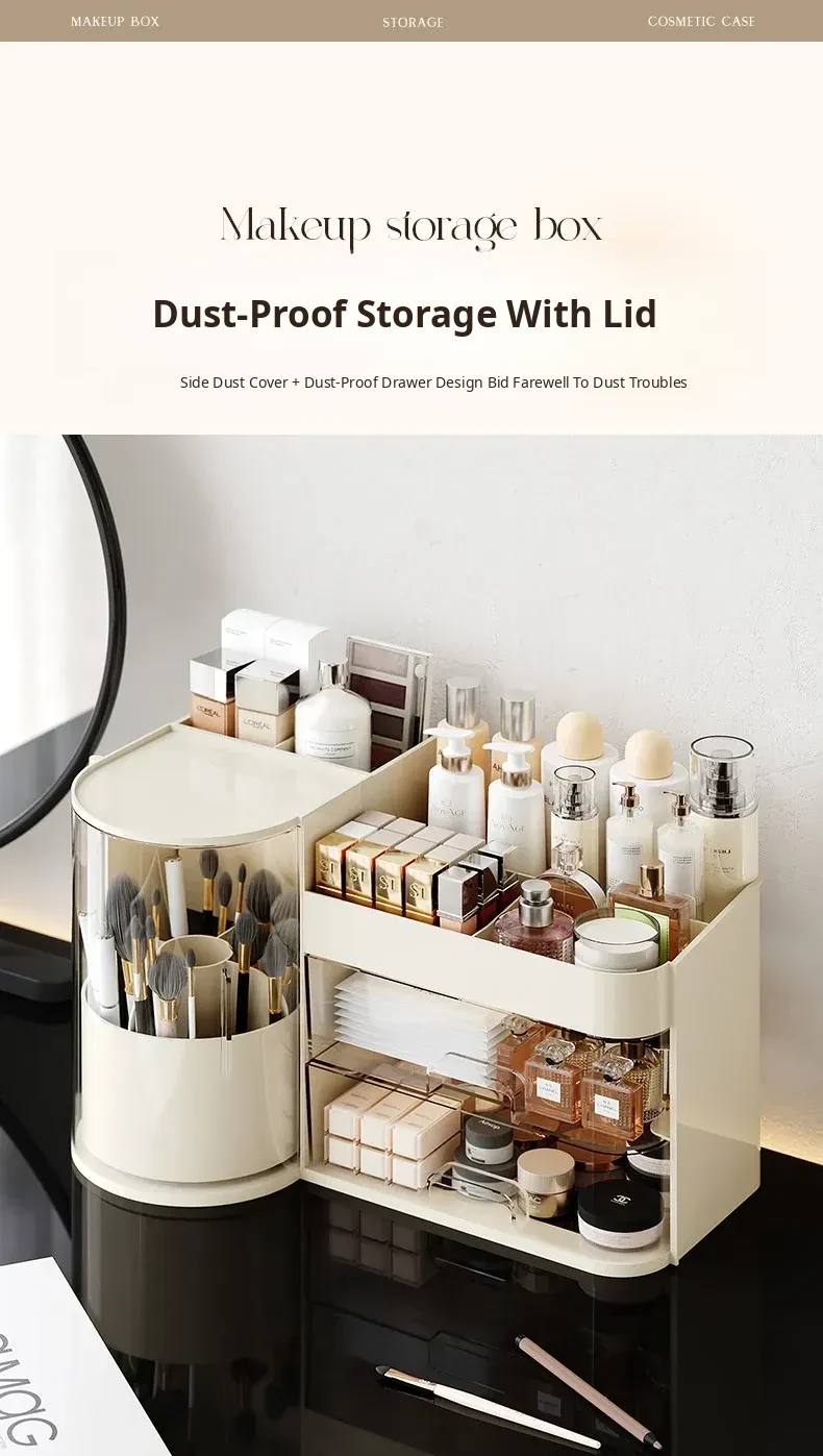 [Cream Color-Rotating Dustproof Brush Barrel] 2-in-1 Cosmetic Case(Df–0578–2)