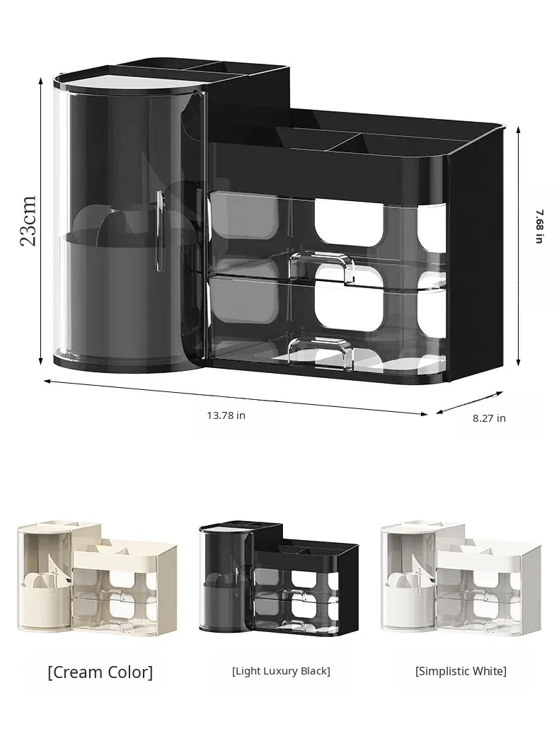 [Luxury Black-Rotating Dustproof Brush Barrel] 2-in-1 Cosmetic Case(Df–0578–3)