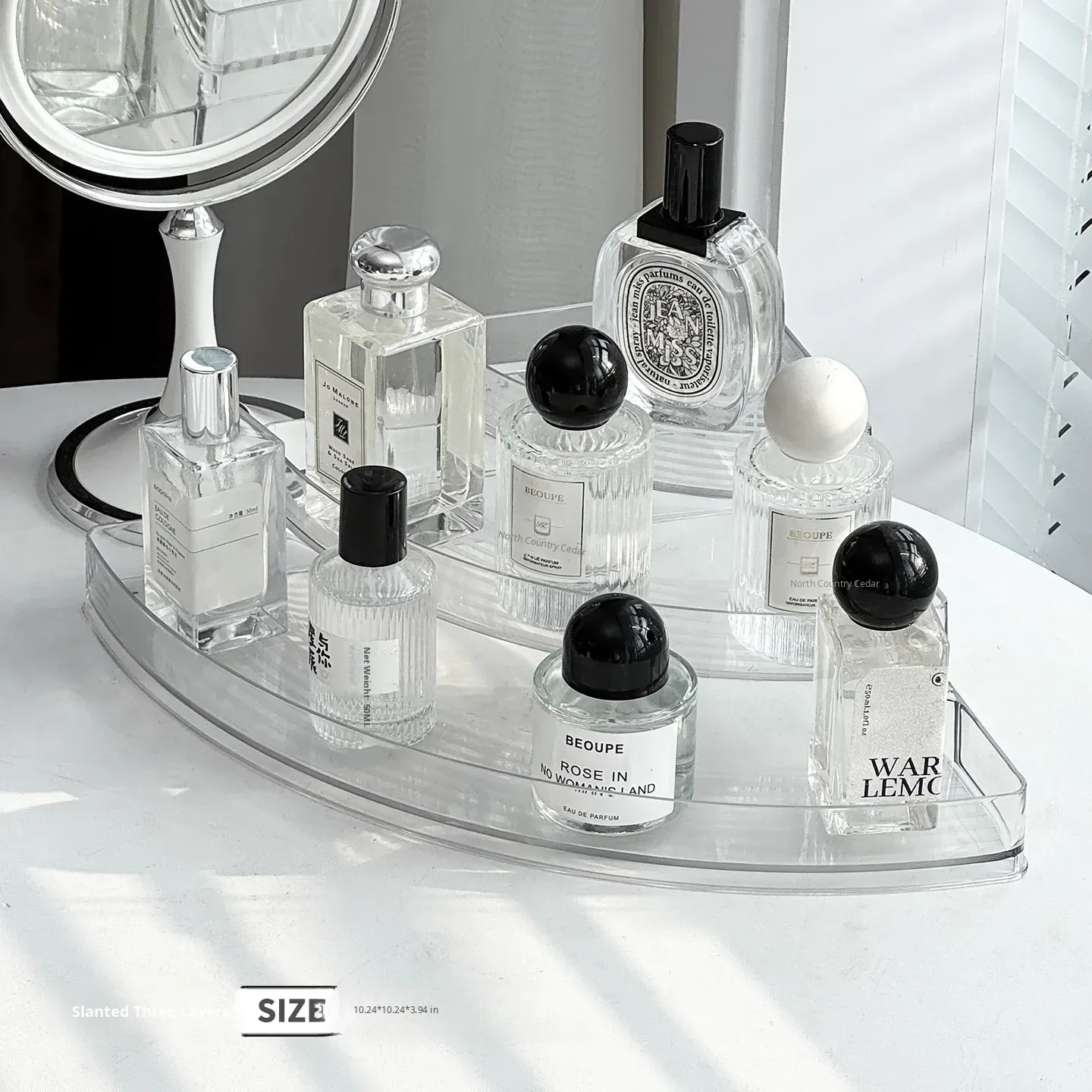 Elegant Corner Tiered Perfume Display Stand - Multi-Layered Desktop Cosmetics Organizer and Showcase for Entryway - Perfect for Stylish Storage and Presentation