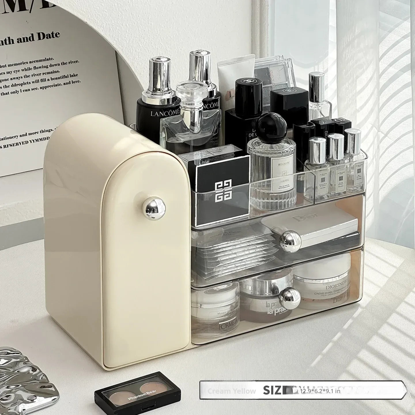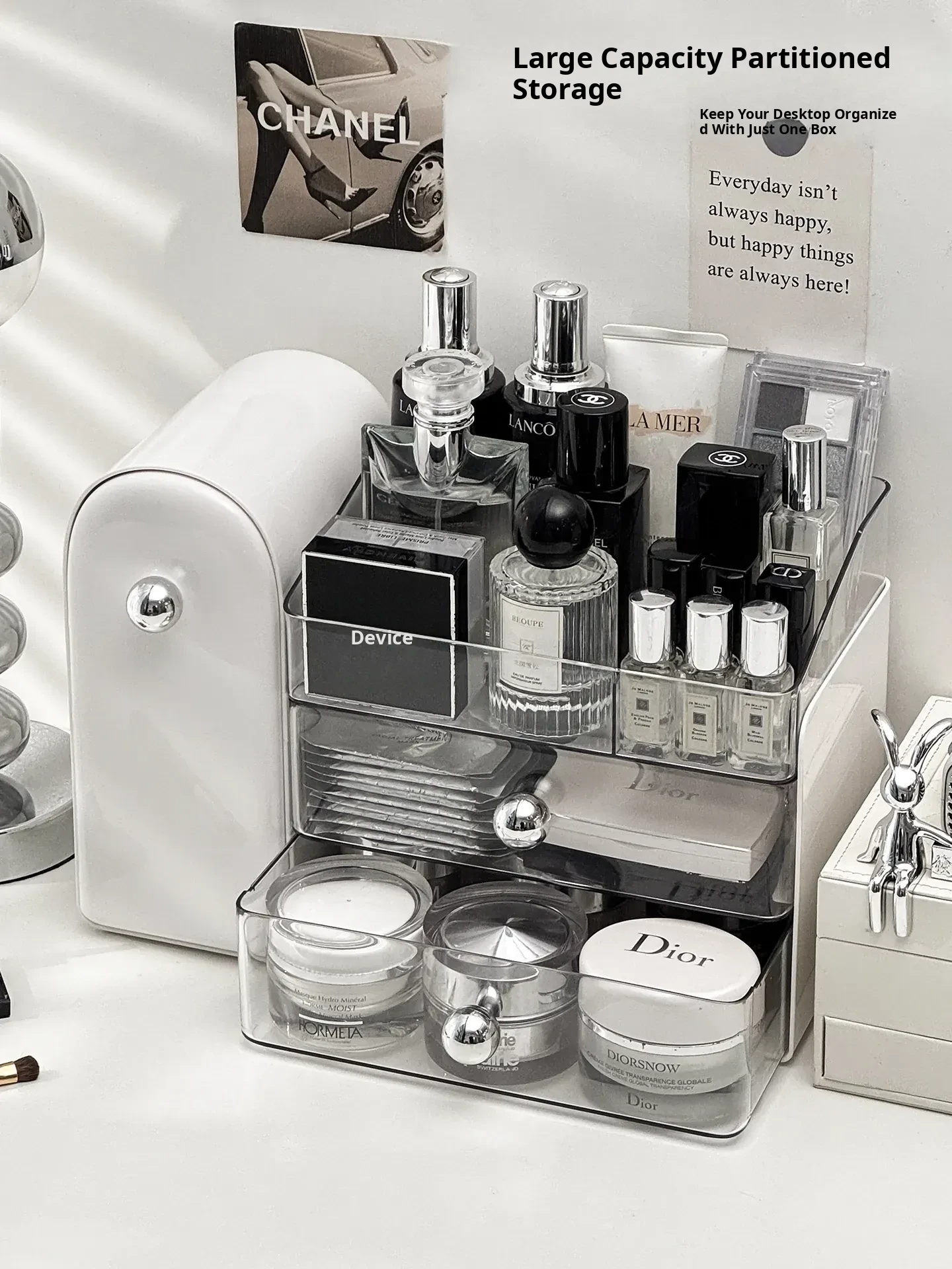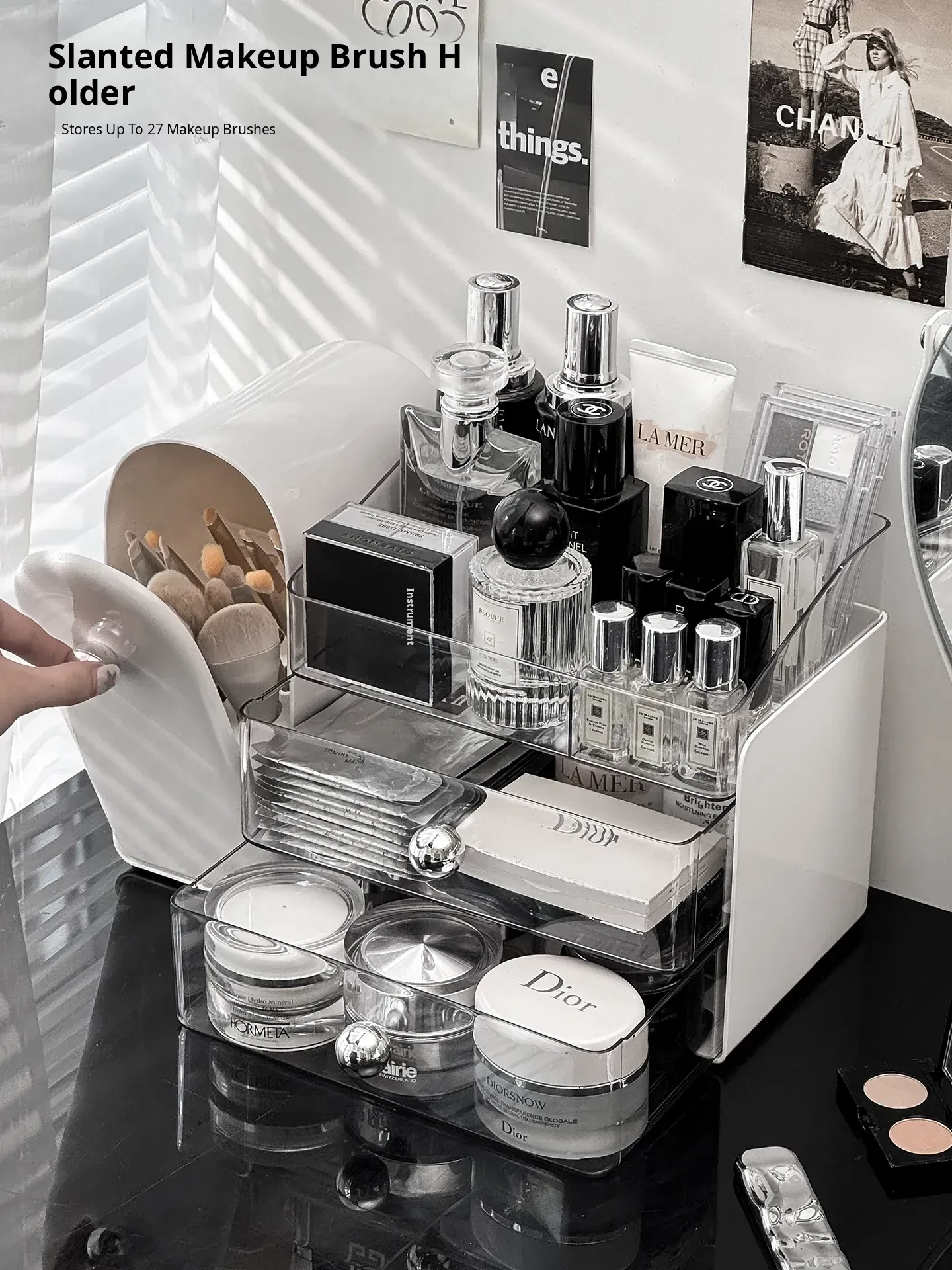 Elegant Cosmetic Organizer: Premium Skincare Storage Rack for Vanity, Dustproof Makeup Brush Holder & Lipstick Organizer Box - Keep Your Beauty Essentials Neat and Chic!