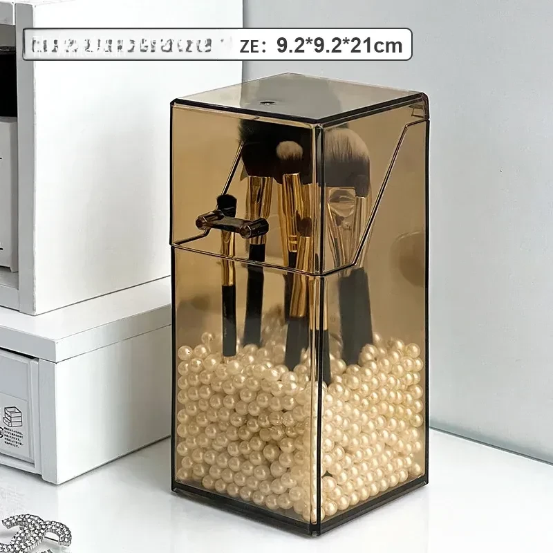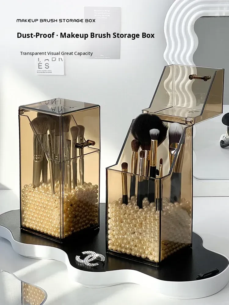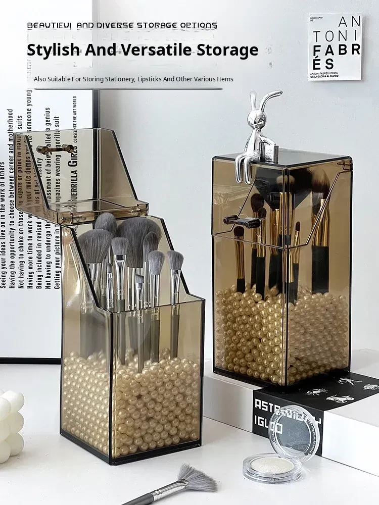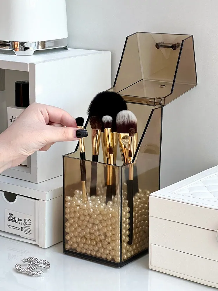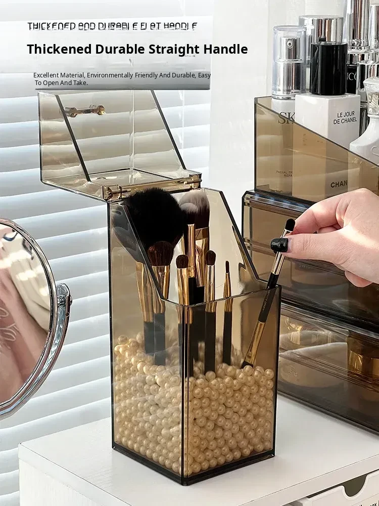 Elegant Desktop Brush Holder - Premium Cosmetic Organizer Box with Lid, Dustproof Makeup Storage for Lipsticks, Lip Glaze, and Eyebrow Pencils - Perfect Vanity Accessory!